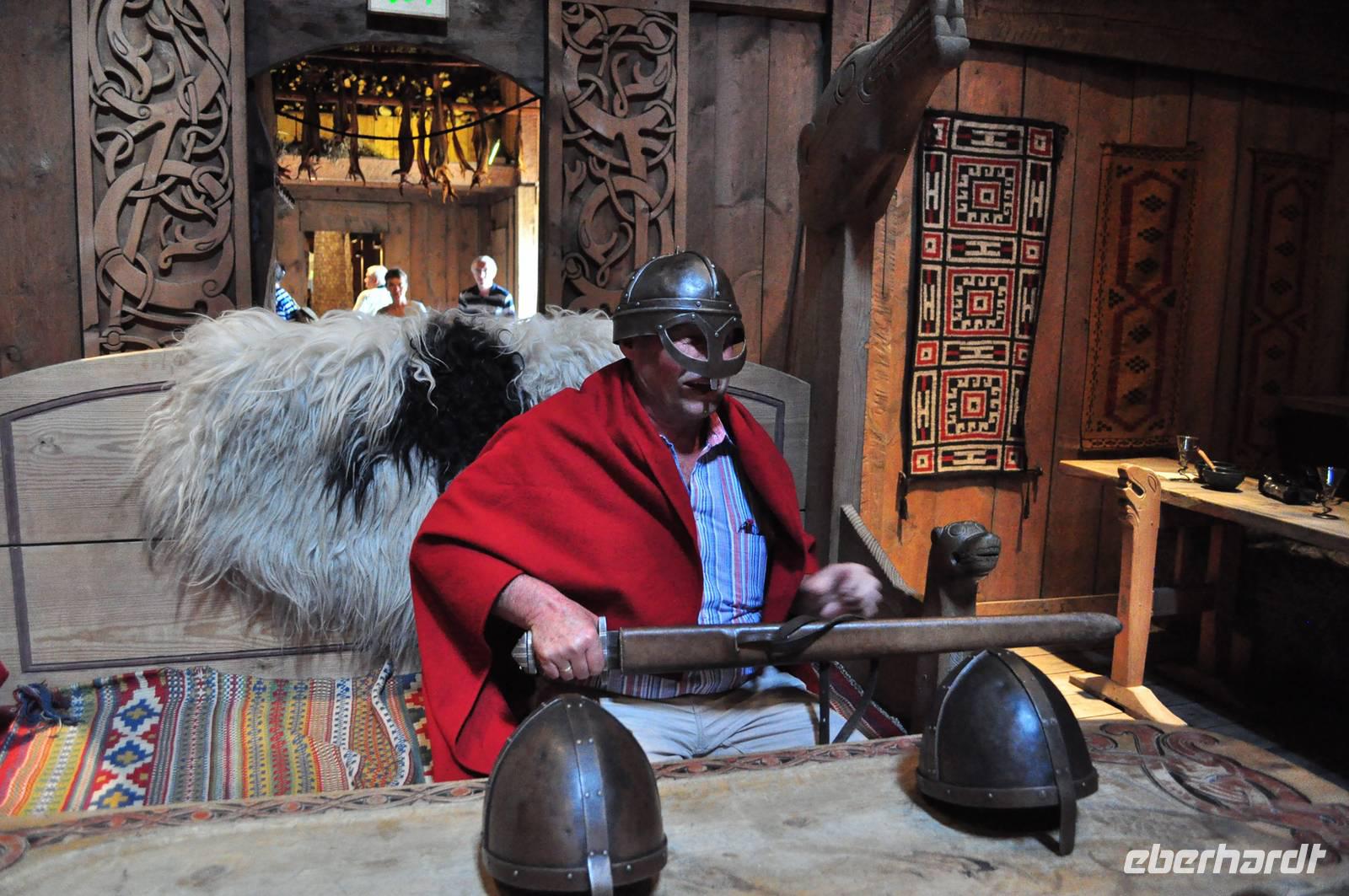 Von hier geht es nach Borg. Hier liegt eines der bekanntesten Wikinger-Museen Norwegens. Zunächst erhalten wir moderne Audioguides mit Kopfhörern, die uns jedes Ausstellungsstück auf Deutsch erklären.
