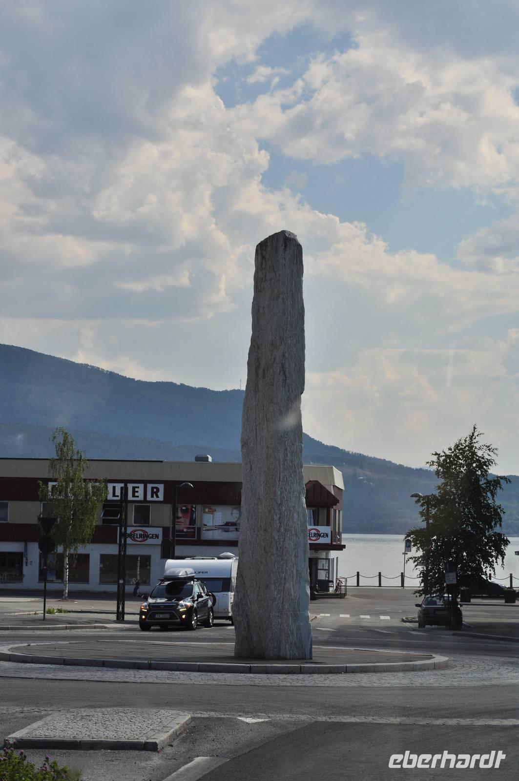 Die E6 führt vorbei an dem Wikingerschiff von Hamar (die olympische Eishalle).