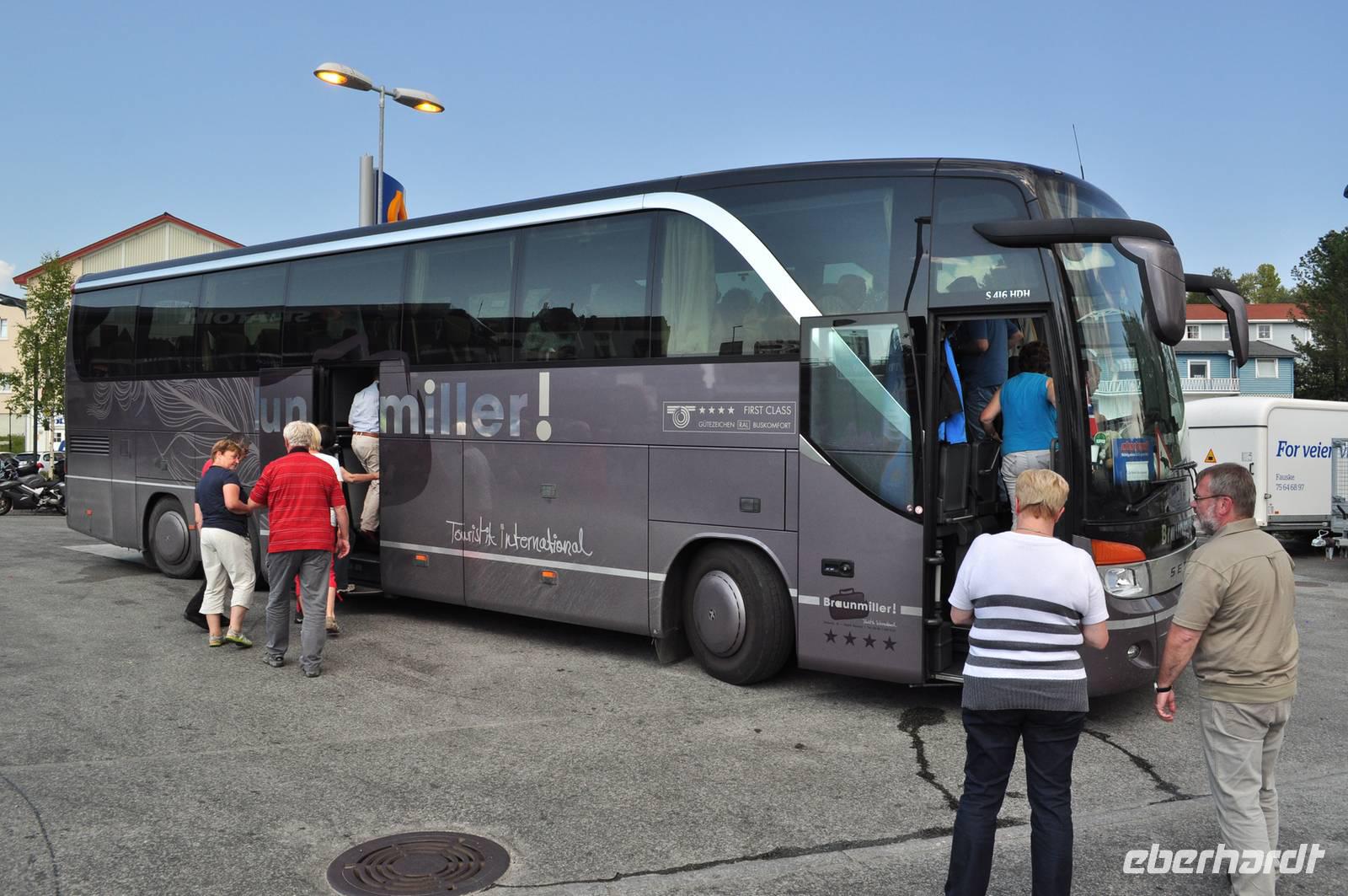 Wir verabschieden uns offiziell von den Fluggästen, die am Morgen von uns zum Flughafen gebracht werden. Anschließend geht es weiter nach Oslo zu unserer Stadtführung.