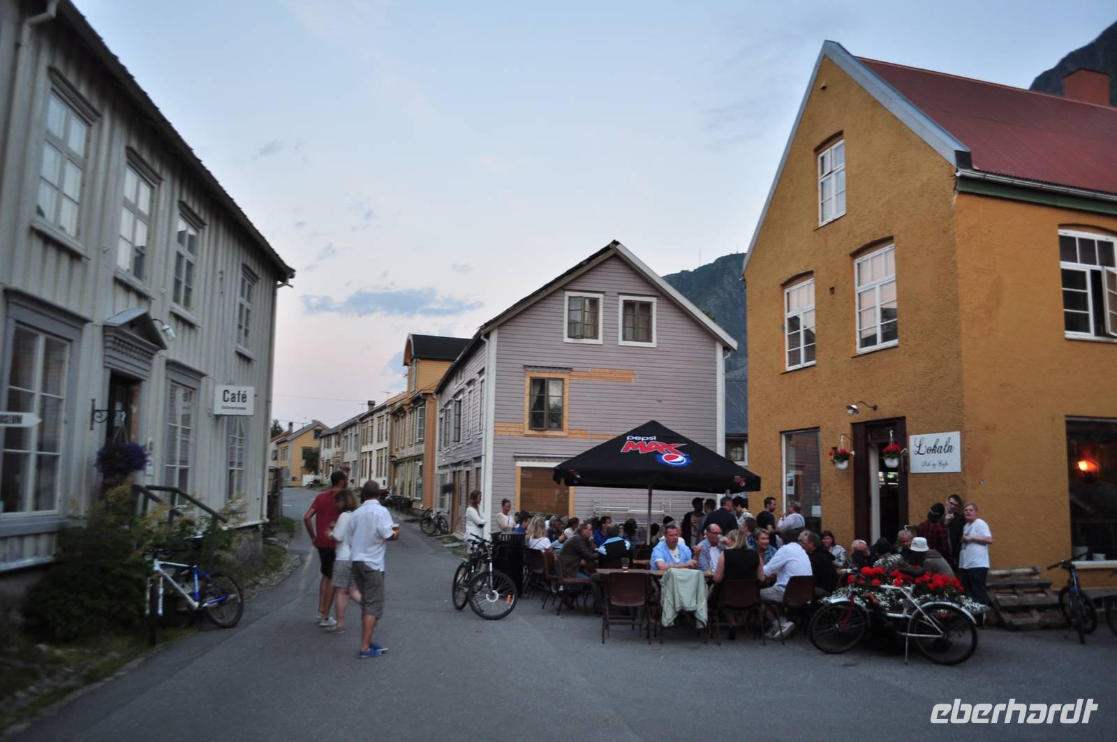 Nach einer halben Stunde Wartezeit fahren wir weiter in Richtung Bergbaustadt Mo i Rana und schließlich bis zu unserem Hotel in Mosjøen. Ein historisches Hotel aus dem 19. Jh. unweit der Altstadt, der Sjøgata mit traditionellen Holzhäusern.