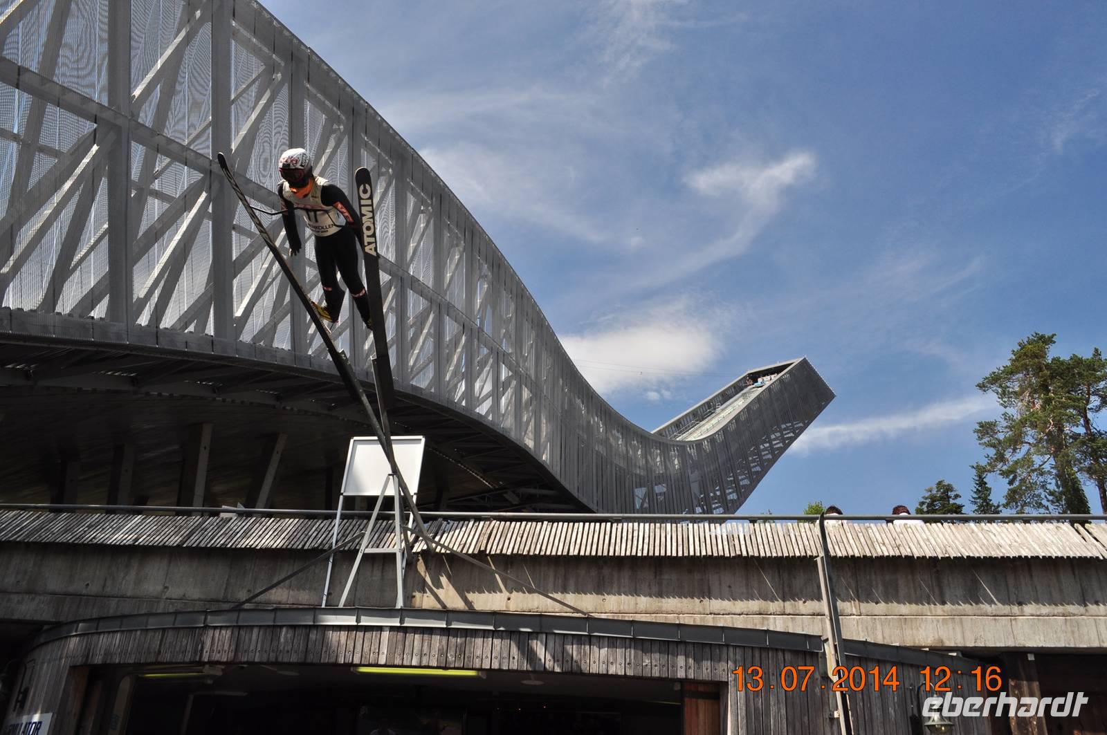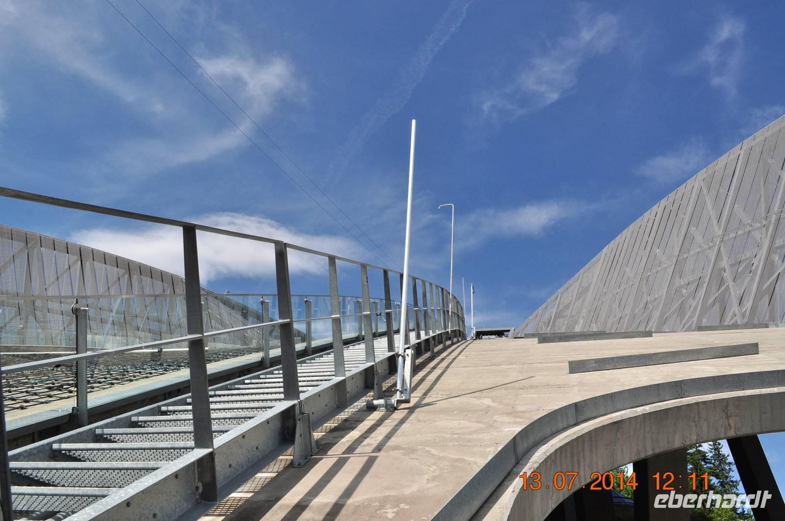 Bei schönstem Wetter besteht die Möglichkeit die gesamte Schanzenanlage von oben nach unten zu erleben, entweder per Sprung, über die Treppen oder über den Sessellift.