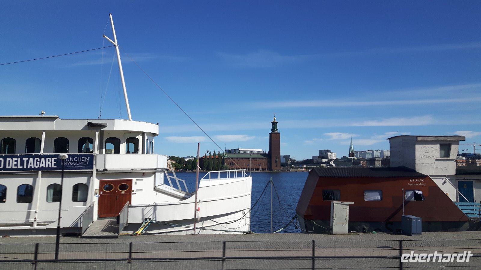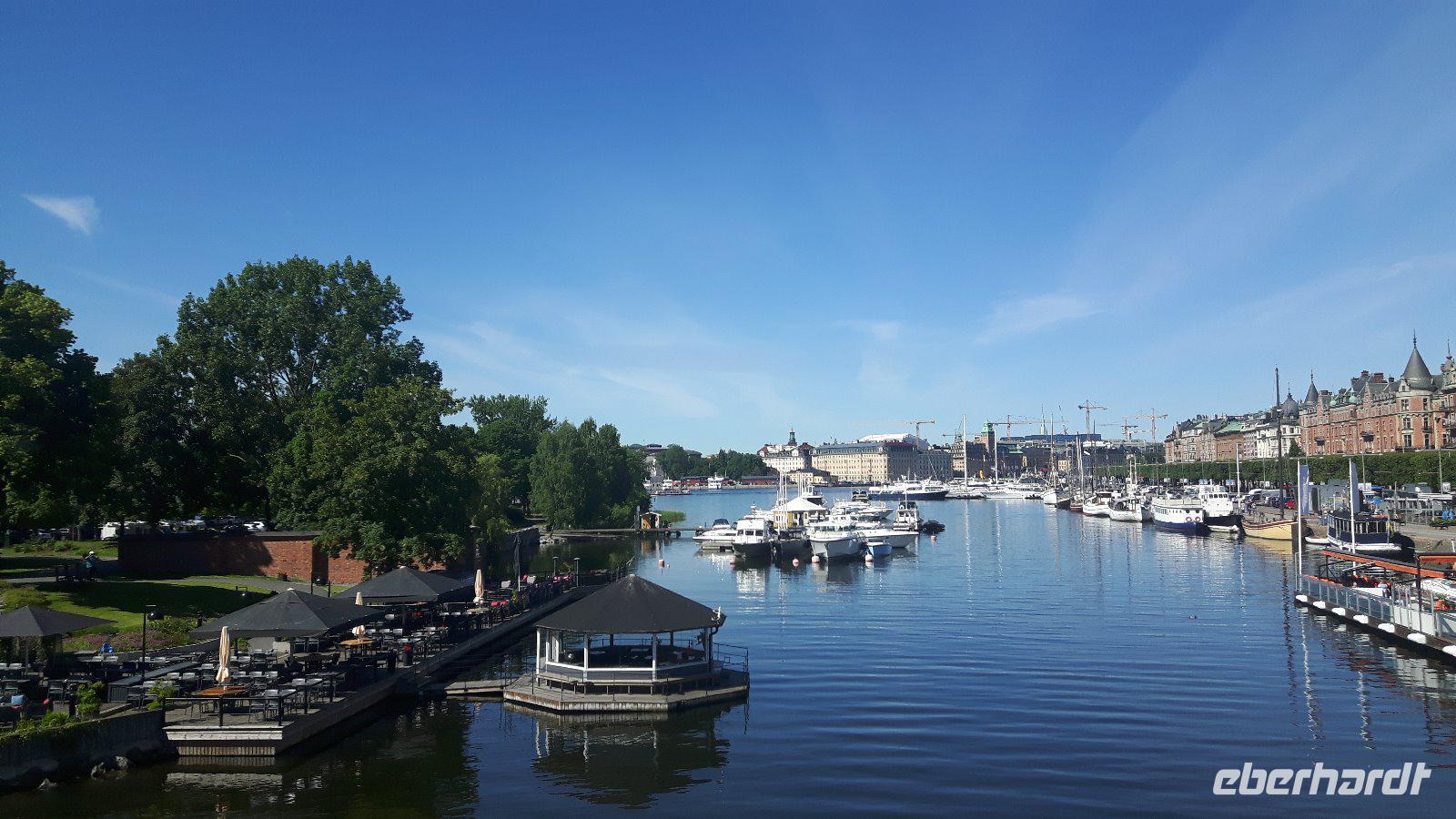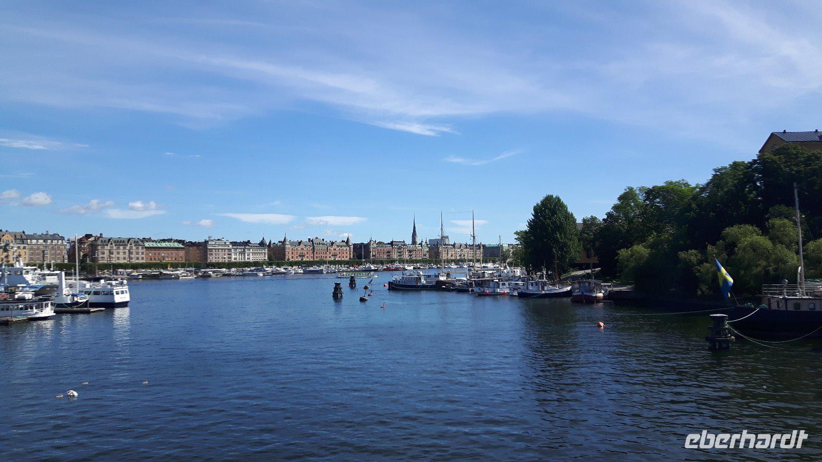 Am nächsten Morgen erfreuten wir uns an der Einfahrt durch die Schären vor Göteborg! Weiter geht es dann mit unserem Bus - quer durch Göteborg und hinaus in die Landschaft des sommerlichen Südschwedens. Der Wettergott meinte es sehr gut mit uns und die Sonne lachte. Natürlich legten wir auf unserer Route interessante Pausen ein - so z. B. in der Nähe von Gränna am Vätternsee, bekannt für seine Zuckerstangen - in Schweden heißen diese „Polkagris". Amalie Erikson eröffnete hier 1859 die erste Zuckerstangenbäckerei. Anschließend ging es weiter in Richtung Linköping und von hier aus führte uns ein zusätzlicher Abstecher in das benachbarte Berg, am westlichen Ufer des Roxen-Sees an der Mündung des Göta-Kanals in diesen See, gelegen. Bekannt ist der Ort vor allem wegen seiner Schleusen (Bergs slussar). Die Schleusen des Göta-Kanals sind beliebte Ausflugsziele und jede Schleusung ist ein sehenswertes Schauspiel! Die hiesige Anlage umfasst sieben Schleusen und danach zwei weitere Doppelschleusen - echt sehenswert, wie die Schiffe den Höhenunterschied von 18,8 Metern überwinden! Von hier waren es nun nur noch knapp 200 Kilometer bis in die schwedische Hauptstadt Stockholm! Am frühen Abend erreichten wir schließlich unser Hotel in der Nähe des Stockholmer Messegeländes. Hier begrüßen wir nunmehr auch unsere 14 Fluggäste, die fortan unsere Reisegruppe komplettierten.