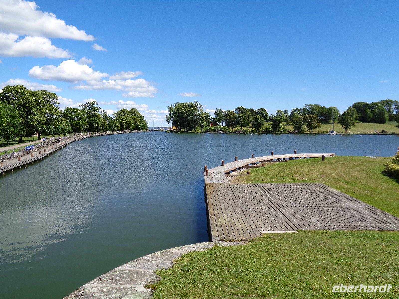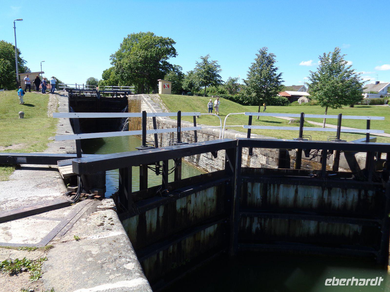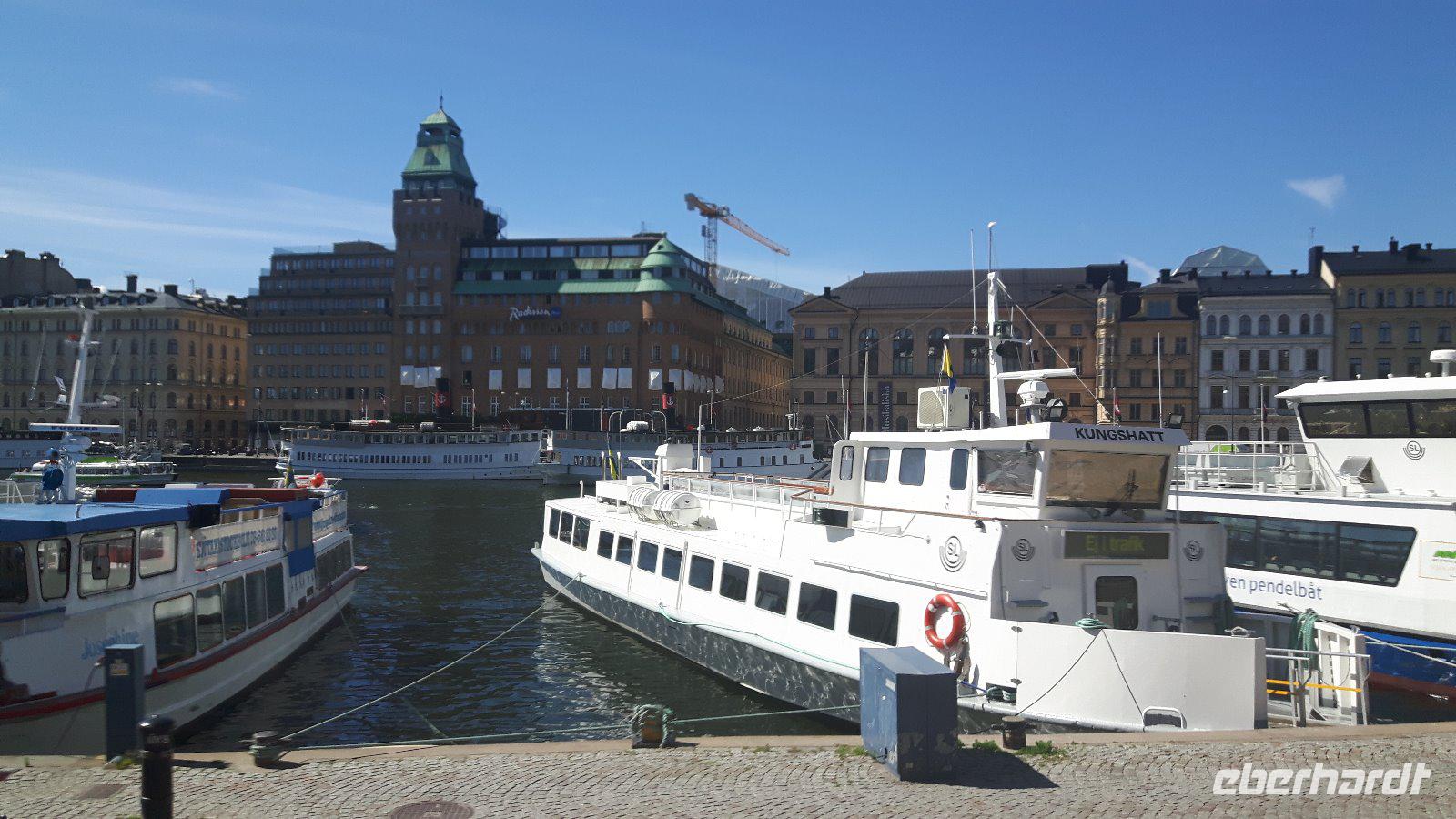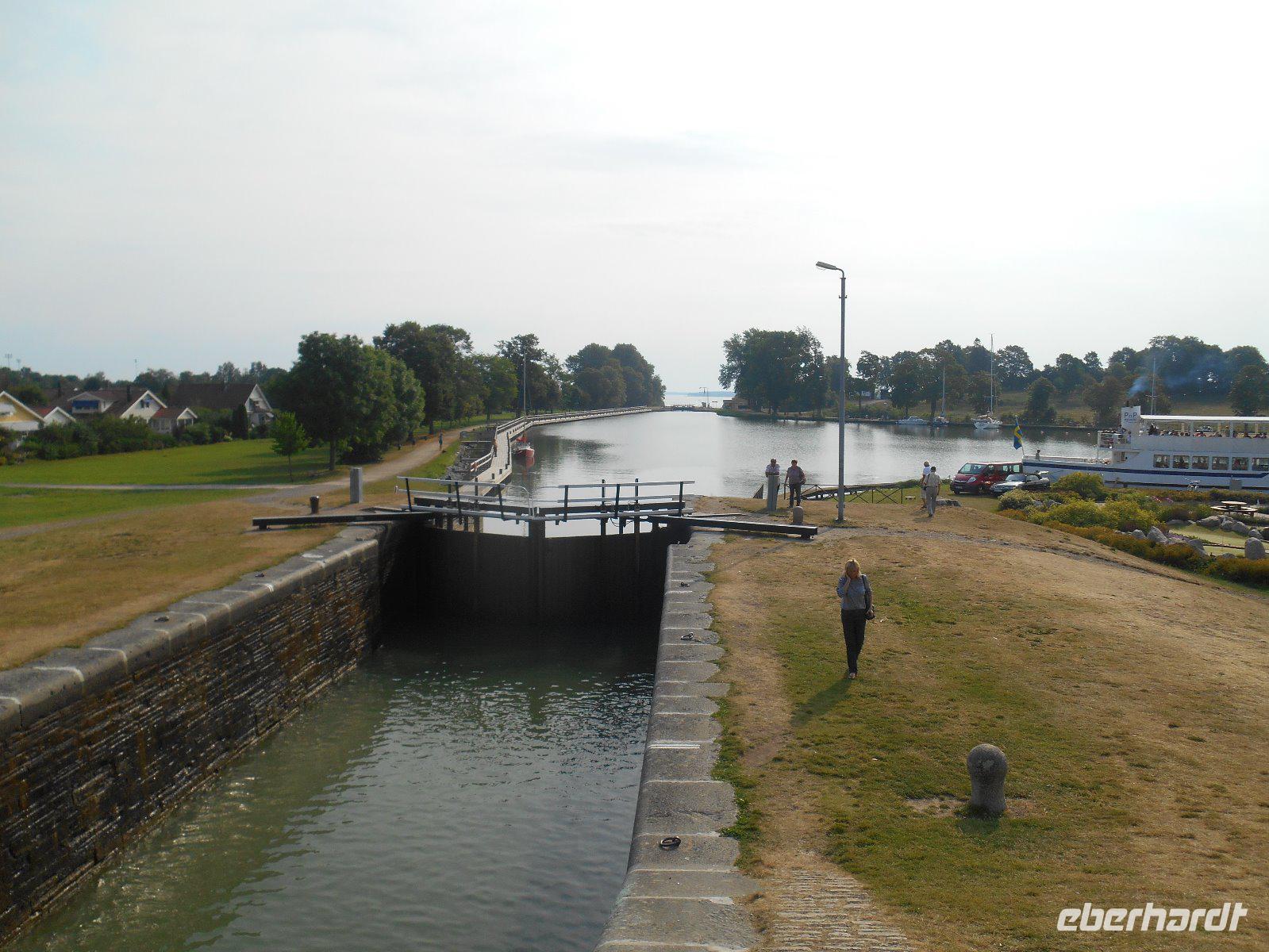 Am nächsten Morgen erfreuten wir uns an der Einfahrt durch die Schären vor Göteborg! Weiter geht es dann mit unserem Bus - quer durch Göteborg und hinaus in die Landschaft des sommerlichen Südschwedens. Der Wettergott meinte es sehr gut mit uns und die Sonne lachte. Natürlich legten wir auf unserer Route interessante Pausen ein - so z. B. in der Nähe von Gränna am Vätternsee, bekannt für seine Zuckerstangen - in Schweden heißen diese „Polkagris". Amalie Erikson eröffnete hier 1859 die erste Zuckerstangenbäckerei. Anschließend ging es weiter in Richtung Linköping und von hier aus führte uns ein zusätzlicher Abstecher in das benachbarte Berg, am westlichen Ufer des Roxen-Sees an der Mündung des Göta-Kanals in diesen See, gelegen. Bekannt ist der Ort vor allem wegen seiner Schleusen (Bergs slussar). Die Schleusen des Göta-Kanals sind beliebte Ausflugsziele und jede Schleusung ist ein sehenswertes Schauspiel! Die hiesige Anlage umfasst sieben Schleusen und danach zwei weitere Doppelschleusen - echt sehenswert, wie die Schiffe den Höhenunterschied von 18,8 Metern überwinden! Von hier waren es nun nur noch knapp 200 Kilometer bis in die schwedische Hauptstadt Stockholm! Am frühen Abend erreichten wir schließlich unser Hotel in der Nähe des Stockholmer Messegeländes. Hier begrüßen wir nunmehr auch unsere 14 Fluggäste, die fortan unsere Reisegruppe komplettierten.