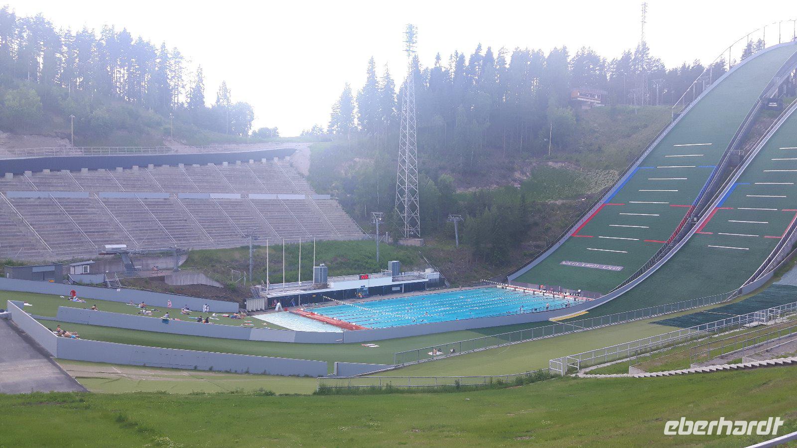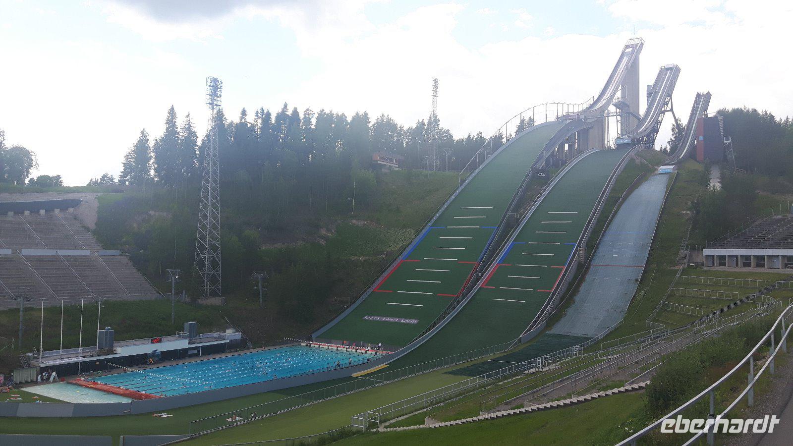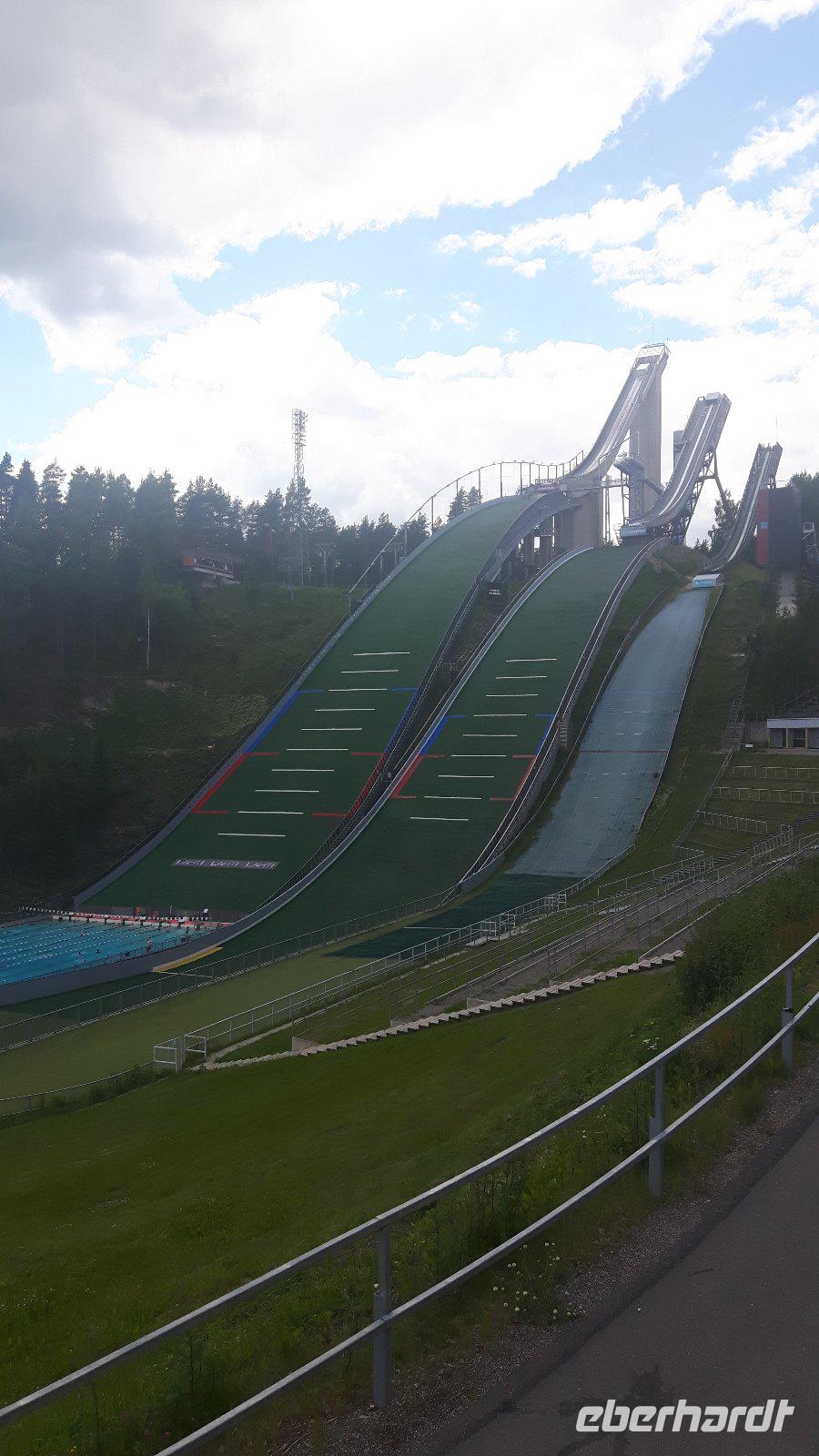 Wir fuhren heute leider mit schlechten Wetteraussichten im Gepäck los. Unsere Fahrtroute führte uns weiter südwärts in Richtung Oppdal und durch das Drivatal hinauf zur letzten einsamen Landschaft unserer Reise, dem Dovrefjell. Leider regnete es unaufhörlich und wir sahen auch keinen der in dieser Gegend lebenden Moschusochsen, aber wir nahmen es gelassen... Einen längeren Aufenthalt legten wir in Dombås ein, denn hier gab es letztmalig vielfältige Einkaufsmöglichkeiten - selbst Tussies (weibliche Trolle) waren im Angebot! Nun ging es weiter durch das sagenumwobene Gudbrandsdal bis zur Stabkirche Ringebu, die wir heute leider aufgrund einer Hochzeit nicht besuchen konnten. Aber schon die Hochzeit an sich war ein Erlebnis, was schließlich nicht jeder Tourist zu sehen bekommt! Bei Lillehammer erreichten wir bereits den nördlichen Teil des Mjøsasees und auch die Schanzenanlagen konnten wir aus der Ferne erkennen. Weiter entlang des Mjøsasees nahmen wir Kurs auf Oslo, wo wir am frühen Abend im Holmenkollen-Hotel eincheckten. Es blieb noch ausreichend Zeit für eine imposante Fahrt mit dem Schrägaufzug zur legendären Holmenkollen-Schanze - sehr empfehlenswert!
