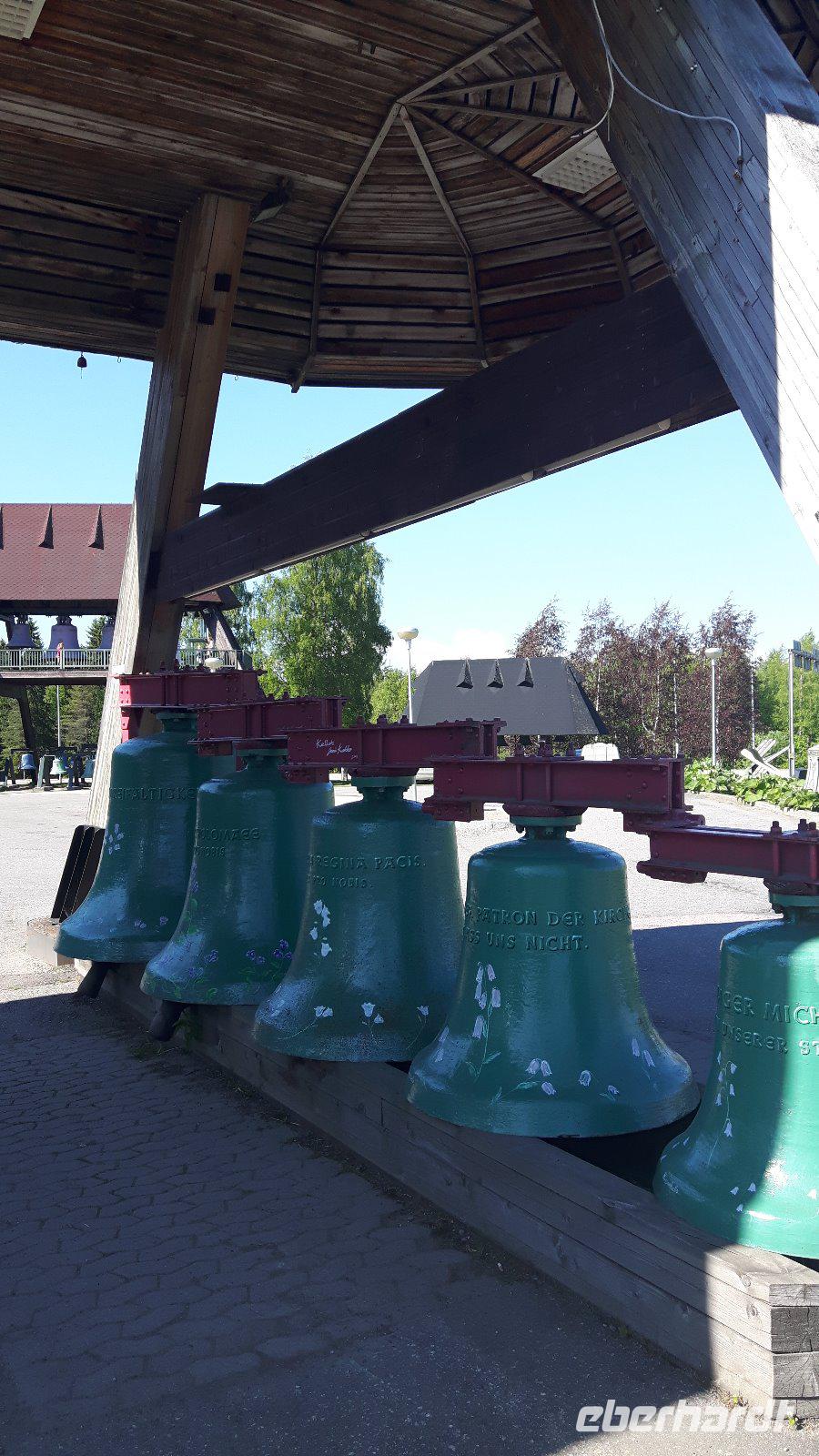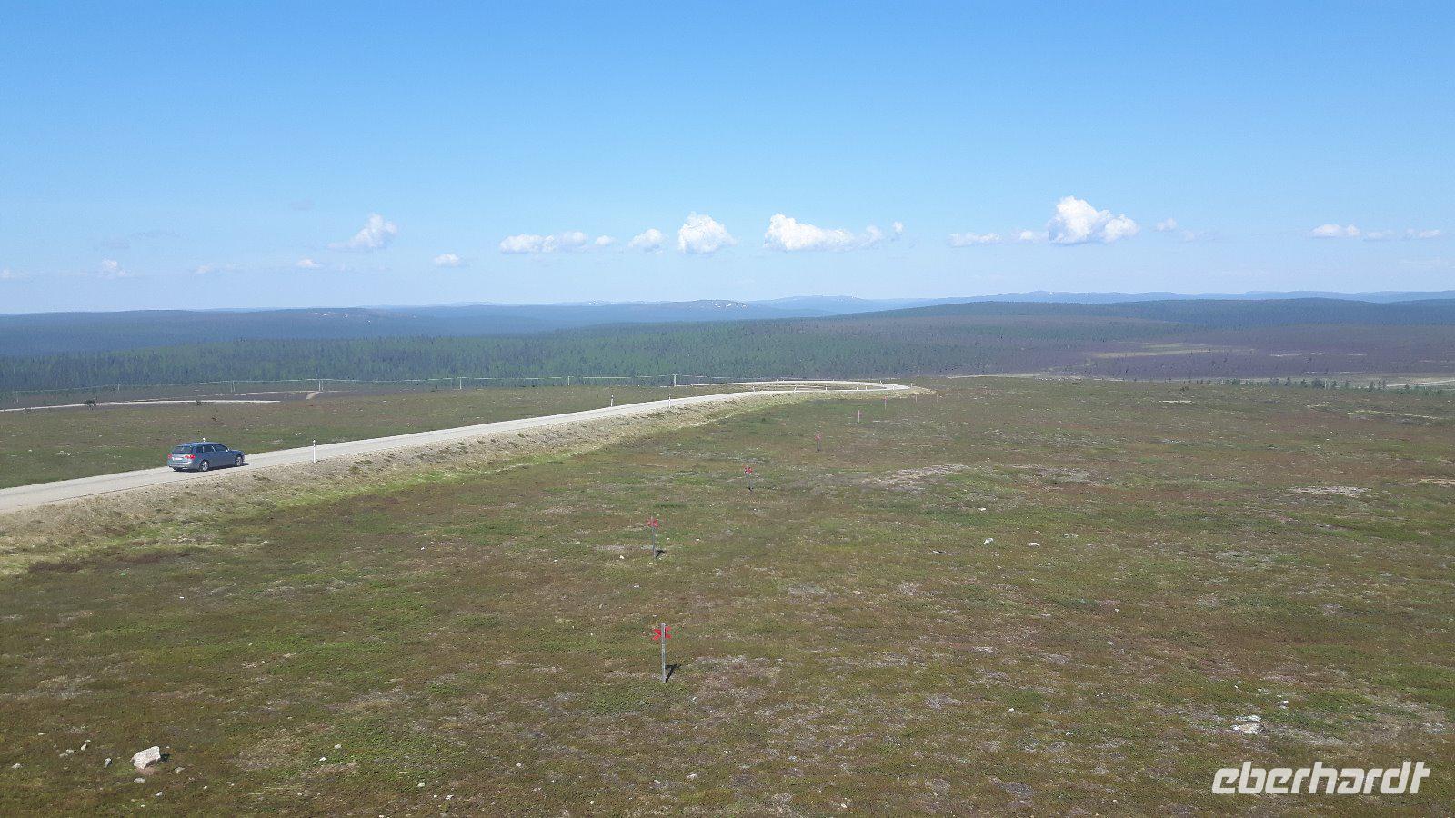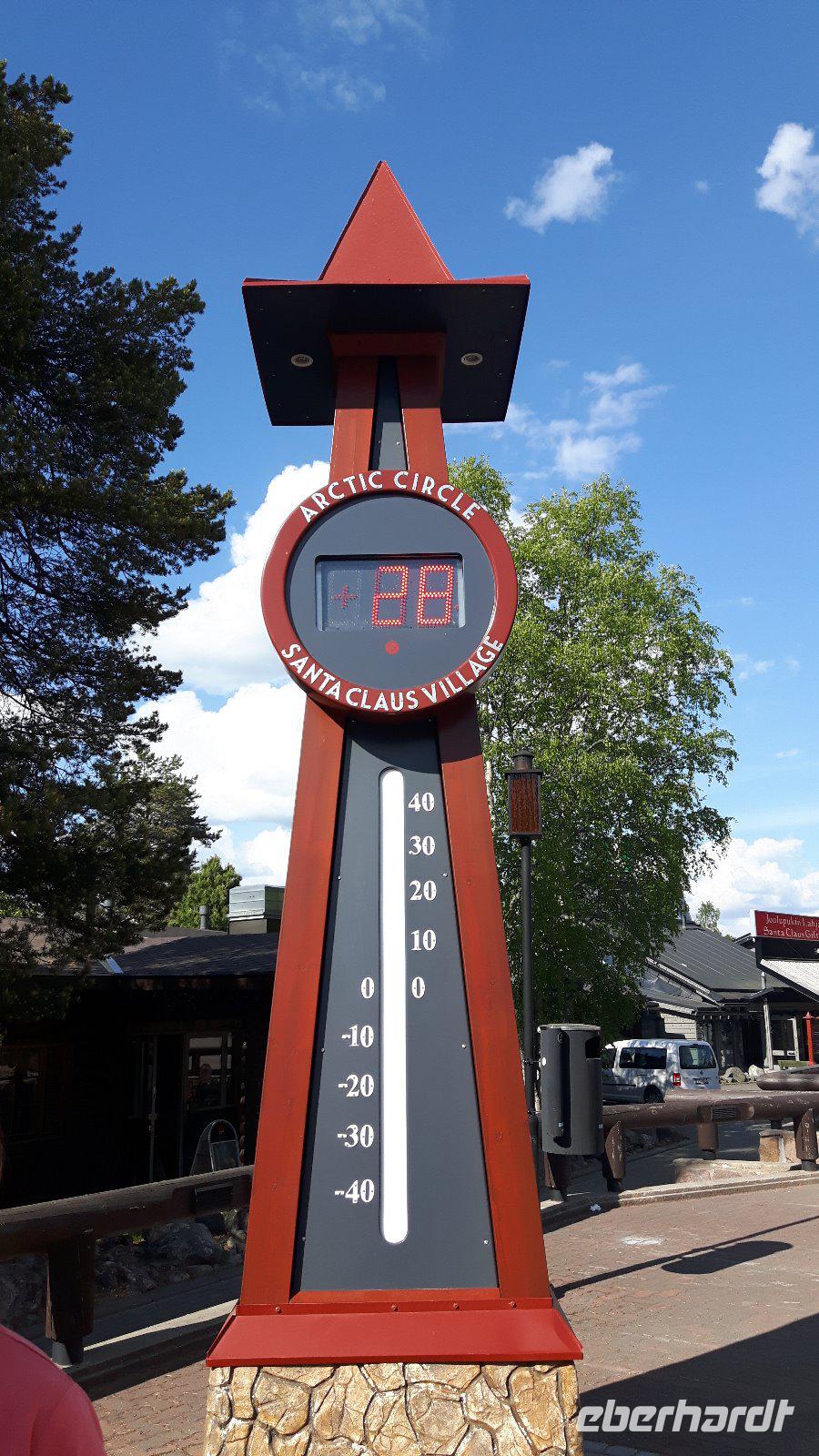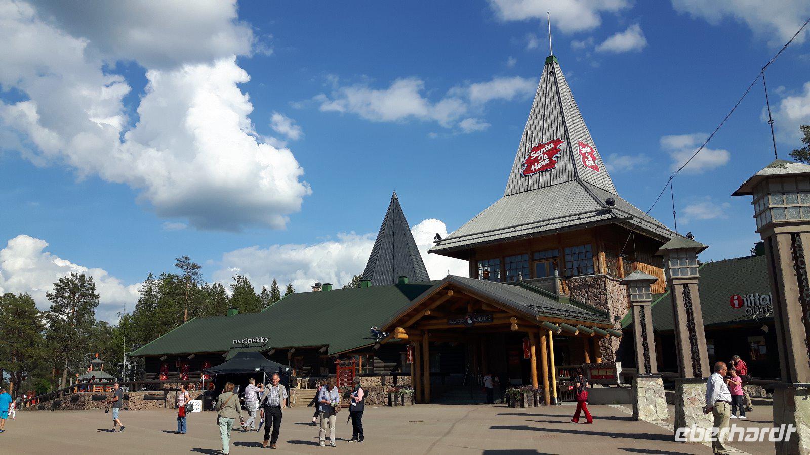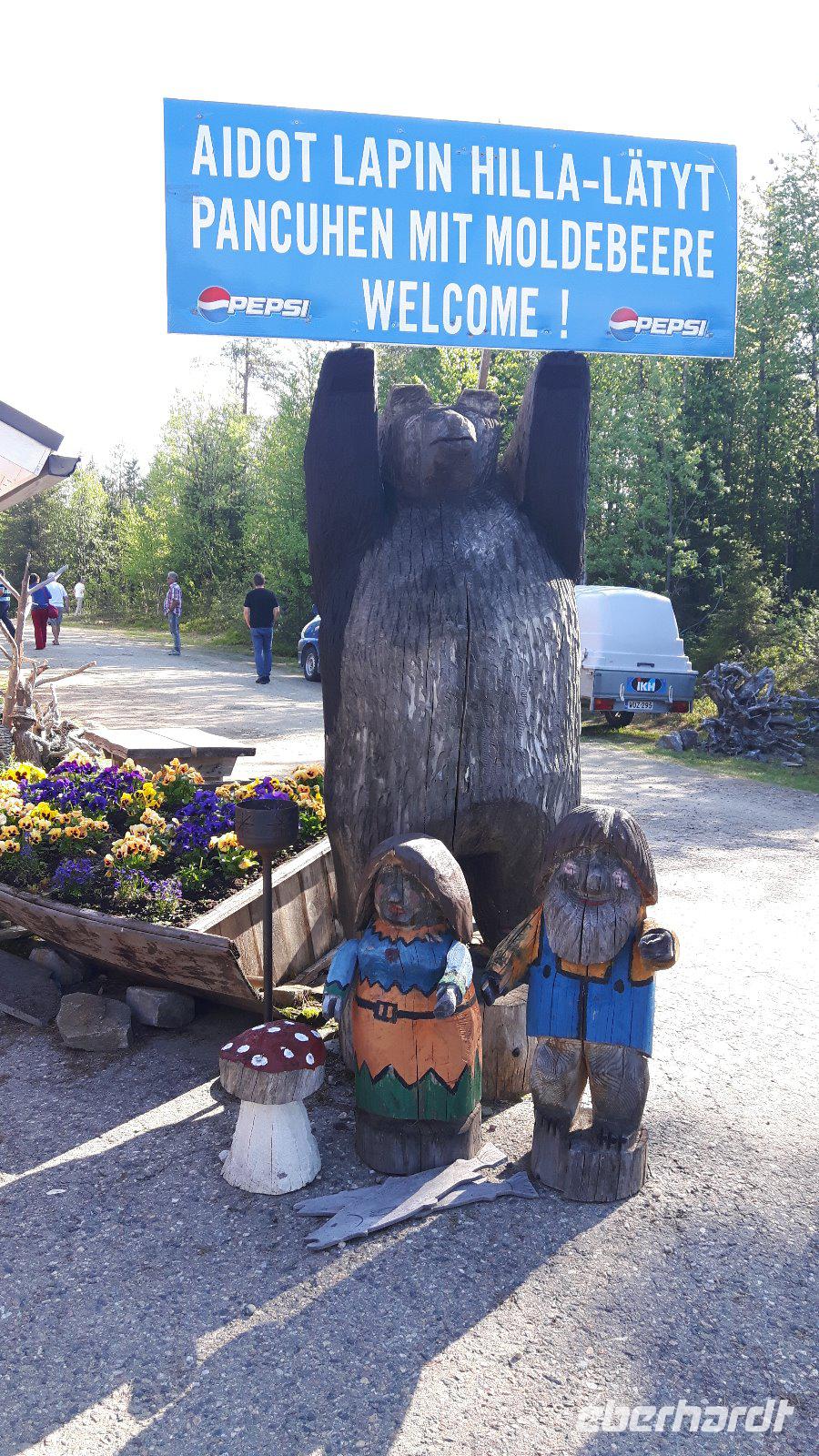 Der fünfte Reisetag führt uns weiter hinauf Richtung Norden. Das Wetter wiederum schön - teils heiter, teils bewölkt... Durch Wald, Wald, Kreuzung, Wald, Wald, See, kleine Ortschaften - so ging es immer weiter... Am Glockenmuseum Vaskikello mit einer sehr interessanten Sammlung von Glocken, u. a. aus der Gemeinde Tübingen in Deutschland, machten wir den ersten Halt, bevor es weiter durch wiederum endlos erscheinende Wälder hindurch zur Hafenstadt Oulu, am Bottnischen Meerbusen gelegen, ging. In Finnlands viertgrößter Stadt legten wir dann einen etwas längeren Aufenthalt ein. Wir hatten Zeit, die im Jahre 1901 erbaute, Markthalle zu besuchen, welche man eigentlich nicht mit leeren Händen verlassen kann - zahlreiche Dinge wie hochwertige Lebensmittel, lokale und internationale Spezialitäten, Handwerkskunst und Souvenirs wurden hier angeboten. Unser nächstes Ziel war das „Highlight" des heutigen Tages - der Nördliche Polarkreis! Nach der Pause bei Oulu und der Fahrt weiter parallel zum Meer erreichten wir die Stadt Kemi und damit den längsten Fluss Finnlands, den Kemijoki. Von nun an folgten wir dem Verlauf des Kemijoki flußaufwärts und erreichten Rovaniemi, eine Stadt inmitten einer riesigen Flusslandschaft, kurz vor dem Polarkreis! Schließlich trafen wir nur wenige Kilometer nördlich von Rovaniemi auf den Nördlichen Polarkreis und das Weihnachtsmanndorf. Dies war für uns eine willkommene Gelegenheit, um mit einem, von Eberhardt TRAVEL spendierten Schnaps, auf die Polarkreis-Überquerung anzustoßen - na dann Skol...! Außerdem zauberten wir mit Weihnachtsdekoration, -musik, -geschichten bzw. „hauseigenen" Weihnachts-Keksen etwas Weihnachtsstimmung in den Bus - gar nicht so einfach bei sommerlichen Temperaturen um die 28 Grad! Der weiterhin wald- und seenreichen Landschaft folgten wir am Nachmittag weiter bis Luosto, wo wir im Lapland-Hotel unser heutiges Nachtlager aufschlugen. Wir hatten bei dieser Fahrt bisher noch kein Rentier gesehen, aber heute - inmitten dieser unberührten Natur - liefen sie uns prompt über den Weg! Die Sonne ging nun übrigens auch nicht mehr unter...