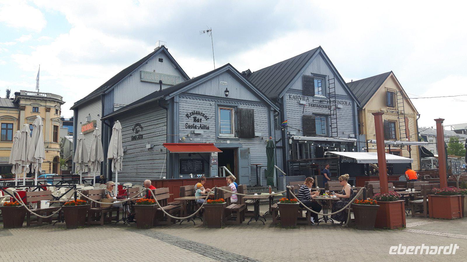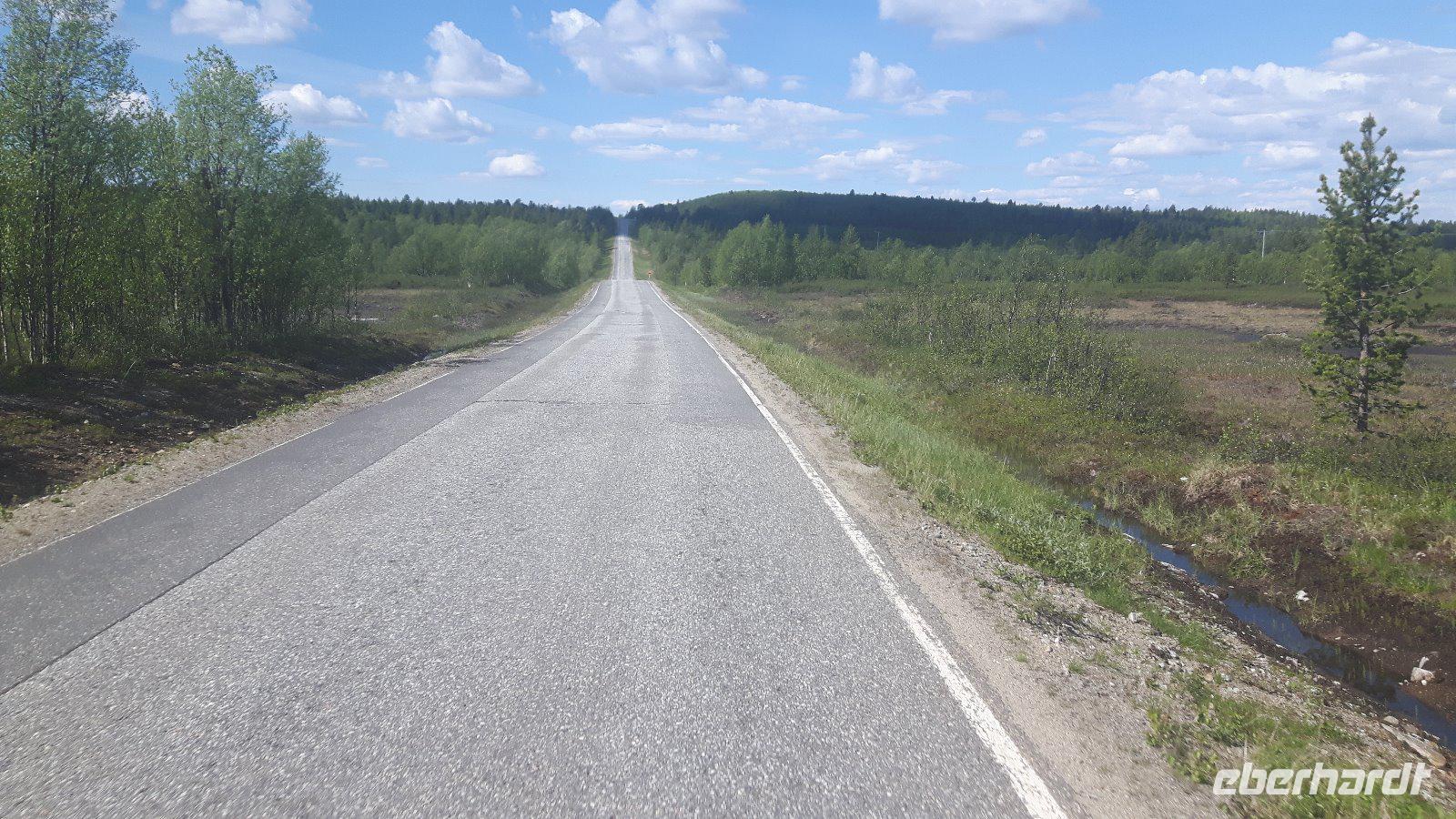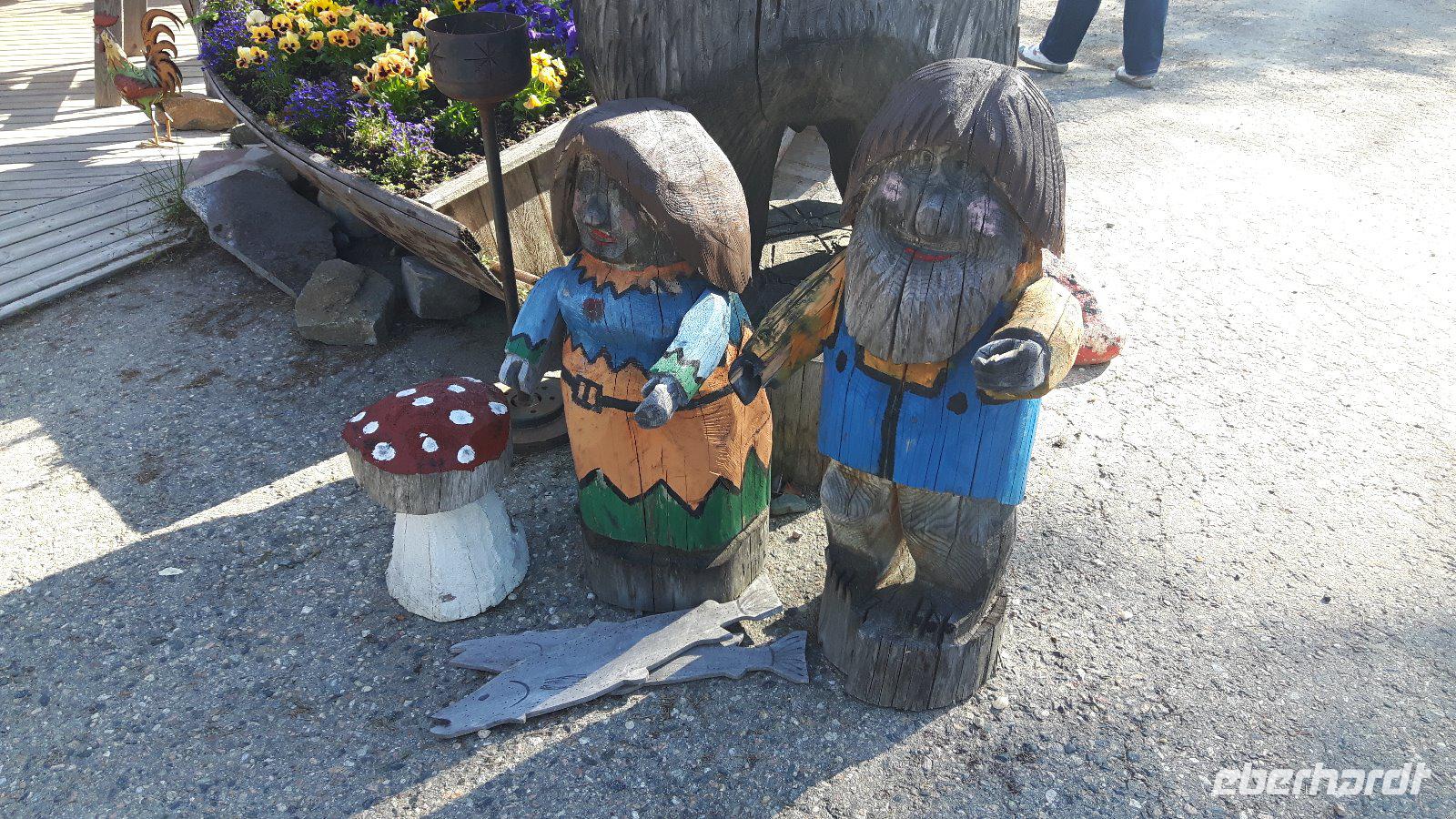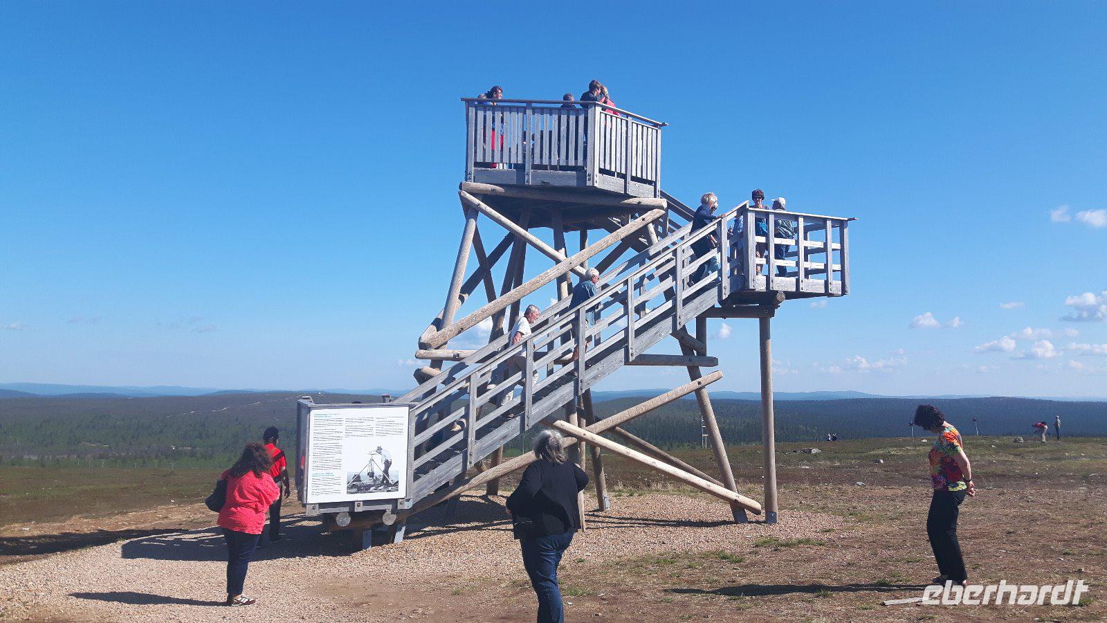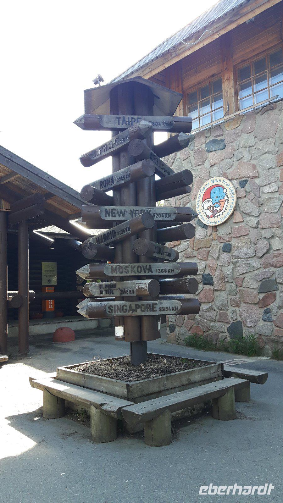 Der fünfte Reisetag führt uns weiter hinauf Richtung Norden. Das Wetter wiederum schön - teils heiter, teils bewölkt... Durch Wald, Wald, Kreuzung, Wald, Wald, See, kleine Ortschaften - so ging es immer weiter... Am Glockenmuseum Vaskikello mit einer sehr interessanten Sammlung von Glocken, u. a. aus der Gemeinde Tübingen in Deutschland, machten wir den ersten Halt, bevor es weiter durch wiederum endlos erscheinende Wälder hindurch zur Hafenstadt Oulu, am Bottnischen Meerbusen gelegen, ging. In Finnlands viertgrößter Stadt legten wir dann einen etwas längeren Aufenthalt ein. Wir hatten Zeit, die im Jahre 1901 erbaute, Markthalle zu besuchen, welche man eigentlich nicht mit leeren Händen verlassen kann - zahlreiche Dinge wie hochwertige Lebensmittel, lokale und internationale Spezialitäten, Handwerkskunst und Souvenirs wurden hier angeboten. Unser nächstes Ziel war das „Highlight" des heutigen Tages - der Nördliche Polarkreis! Nach der Pause bei Oulu und der Fahrt weiter parallel zum Meer erreichten wir die Stadt Kemi und damit den längsten Fluss Finnlands, den Kemijoki. Von nun an folgten wir dem Verlauf des Kemijoki flußaufwärts und erreichten Rovaniemi, eine Stadt inmitten einer riesigen Flusslandschaft, kurz vor dem Polarkreis! Schließlich trafen wir nur wenige Kilometer nördlich von Rovaniemi auf den Nördlichen Polarkreis und das Weihnachtsmanndorf. Dies war für uns eine willkommene Gelegenheit, um mit einem, von Eberhardt TRAVEL spendierten Schnaps, auf die Polarkreis-Überquerung anzustoßen - na dann Skol...! Außerdem zauberten wir mit Weihnachtsdekoration, -musik, -geschichten bzw. „hauseigenen" Weihnachts-Keksen etwas Weihnachtsstimmung in den Bus - gar nicht so einfach bei sommerlichen Temperaturen um die 28 Grad! Der weiterhin wald- und seenreichen Landschaft folgten wir am Nachmittag weiter bis Luosto, wo wir im Lapland-Hotel unser heutiges Nachtlager aufschlugen. Wir hatten bei dieser Fahrt bisher noch kein Rentier gesehen, aber heute - inmitten dieser unberührten Natur - liefen sie uns prompt über den Weg! Die Sonne ging nun übrigens auch nicht mehr unter...