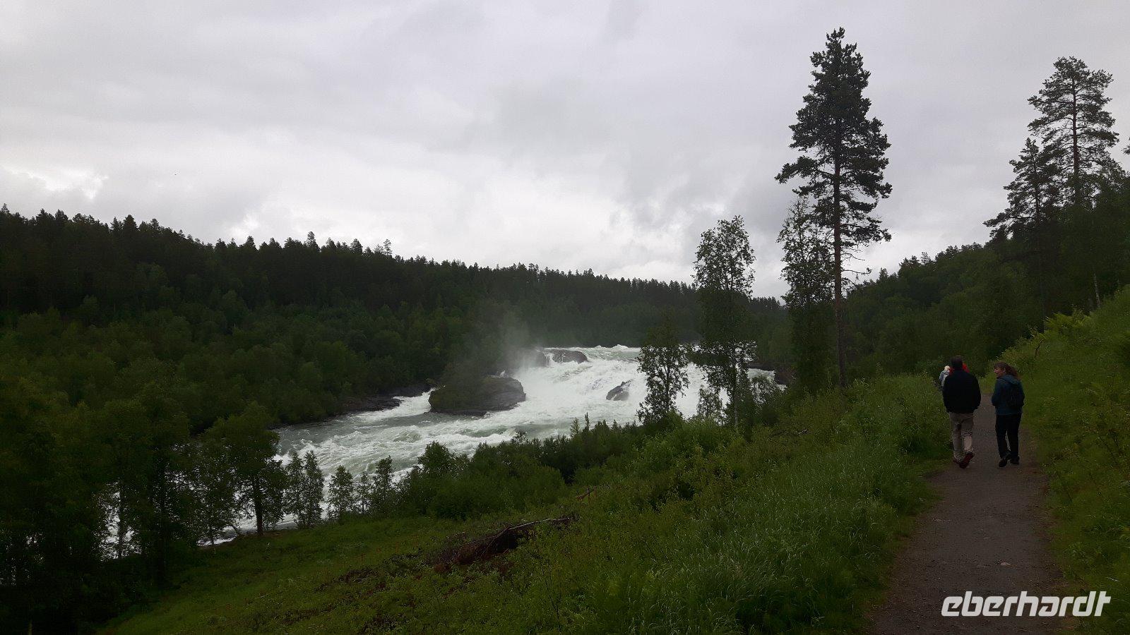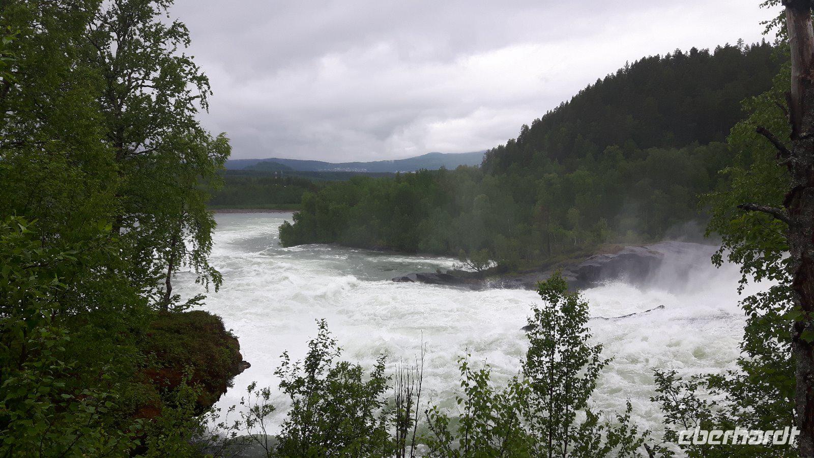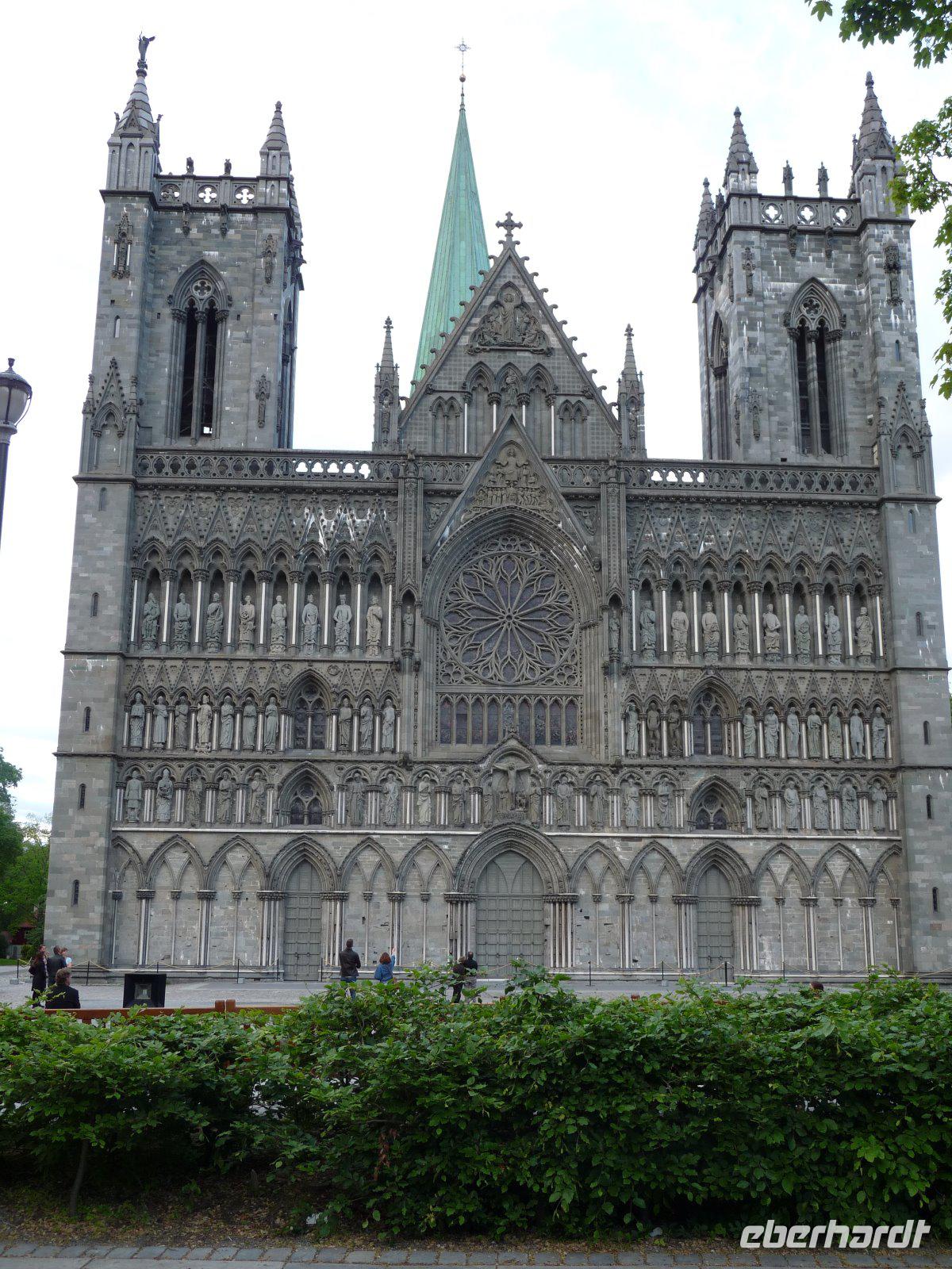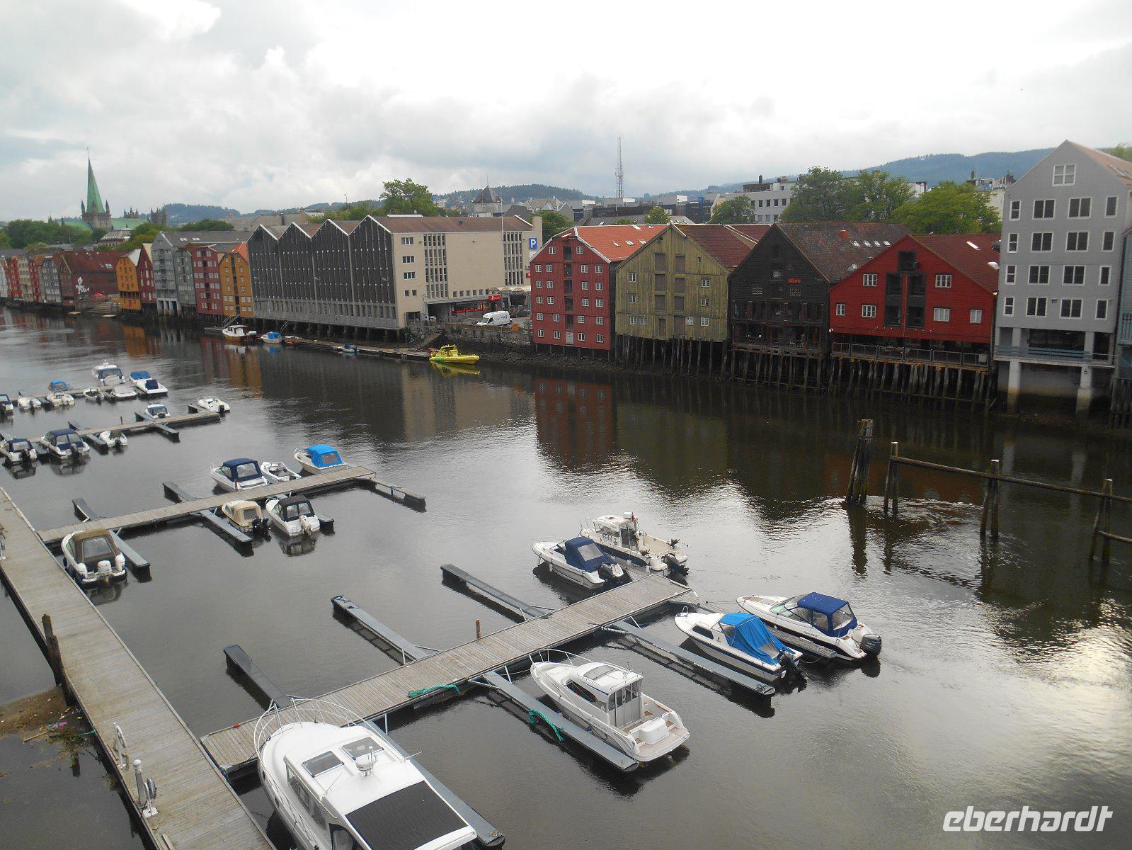 Den ersten Stopp des heutigen Tages machten wir am Laksforsen-Wasserfall, der vom Fluss Vefsna gebildet wird. Ungeheure Wassermassen stürzten hier gigantisch über die Felsen. Immer noch in Nordland ging es durch wirklich einsame Landschaften bis zur Grenze nach Trøndelag. Über der Straße symbolisiert dann später eine Nachbildung des Nordlichtes die Grenze zwischen Nord- und Mittelnorwegen. Im weiteren Fahrtverlauf änderte sich die Vegetation ständig und wurde immer mitteleuropäischer und auch die Besiedlungsdichte wurde immer höher. In Steinkjer kamen wir nun endgültig zurück in die Zivilisation. Ein kurzer Abstecher führte uns am Nachmittag nach Stiklestad, die hiesige Schlacht markierte immerhin einen Wendepunkt in der norwegischen Geschichte und steht noch heute für den Übergang von der vorchristlichen Wikingerzeit zum christlichen Mittelalter. Die letzte Etappe bis Trondheim ging dann recht zügig auf der Autobahn. Sofort wurde natürlich der Dom angesteuert, das unumstrittene Wahrzeichen der Stadt. Ingrid führte uns durch dieses Heiligtum und gab viele wissenswerte Informationen, denn früher wurden hier immerhin die norwegischen Könige gekrönt, aber auch beigesetzt. Nach dieser überaus interessanten Domführung unternahmen wir eine Stadtrundfahrt durch Trondheim. Durch das Stadtzentrum gelangten wir zuerst zu einem wunderschönen Aussichtspunkt hoch über der Stadt und konnten die prächtige Lage der Stadt am Trondheimfjord besser erkennen! Etwas später erreichten wir dann die Festung Kristiansten mit nochmaliger toller Sicht über das Zentrum. Zu guter Letzt sahen wir die alten Speicherhäuser am Nidelv-Fluss, die Alte Brücke und natürlich auch den Hafenbereich! Direkt am Hotel endete schließlich unsere Rundfahrt.
