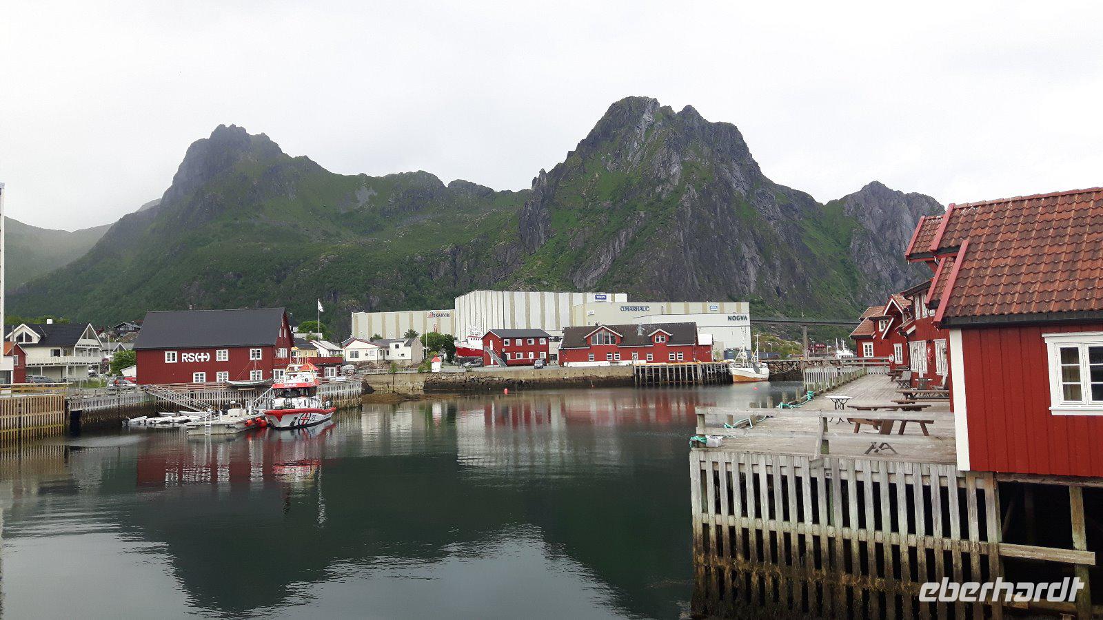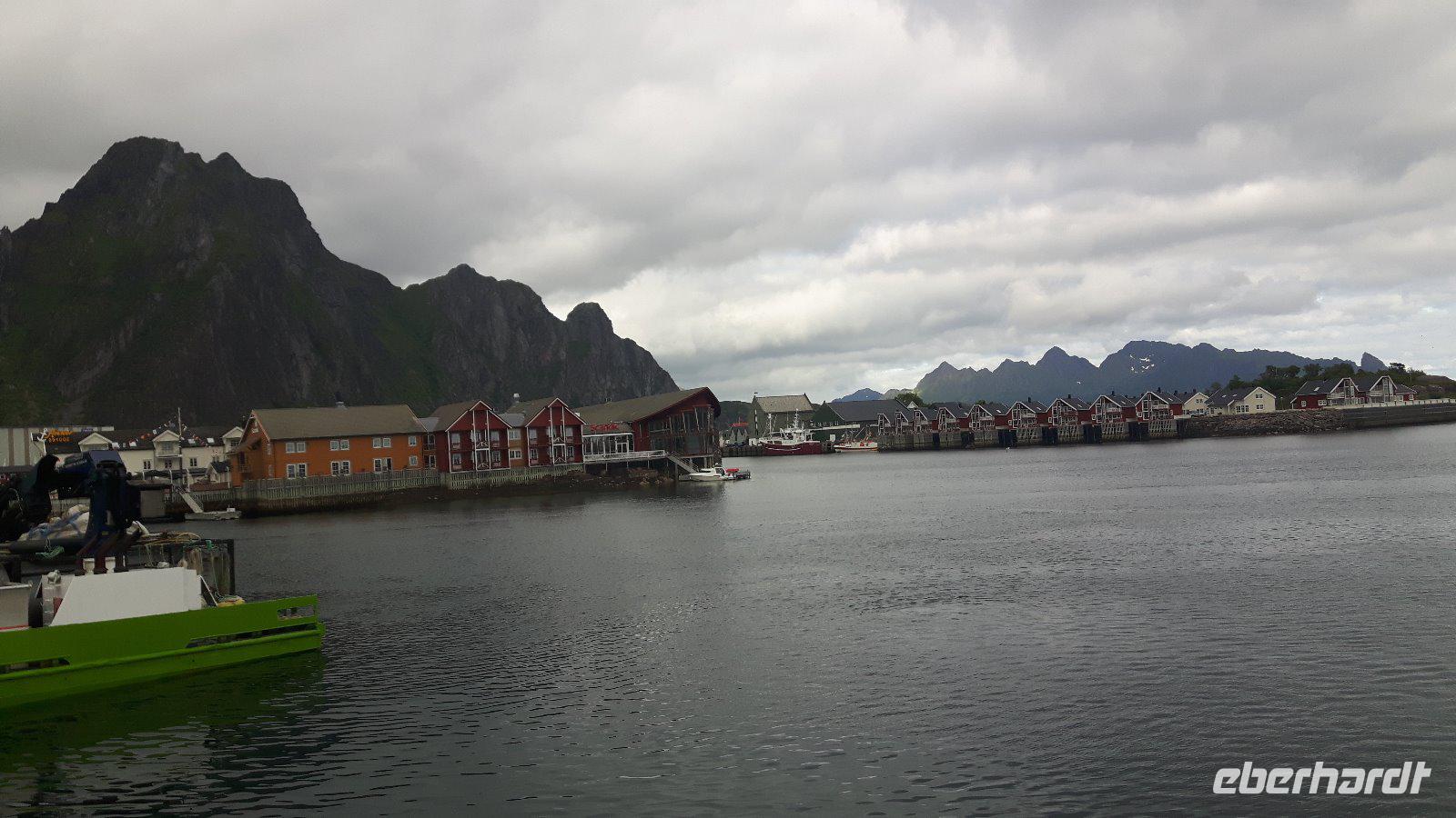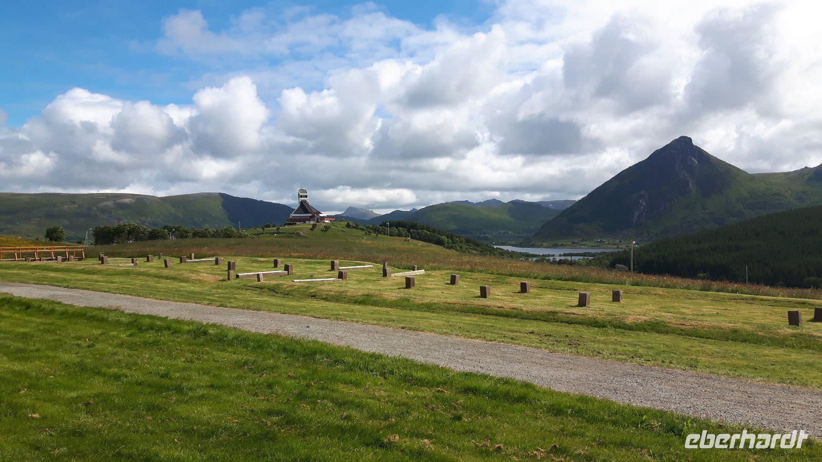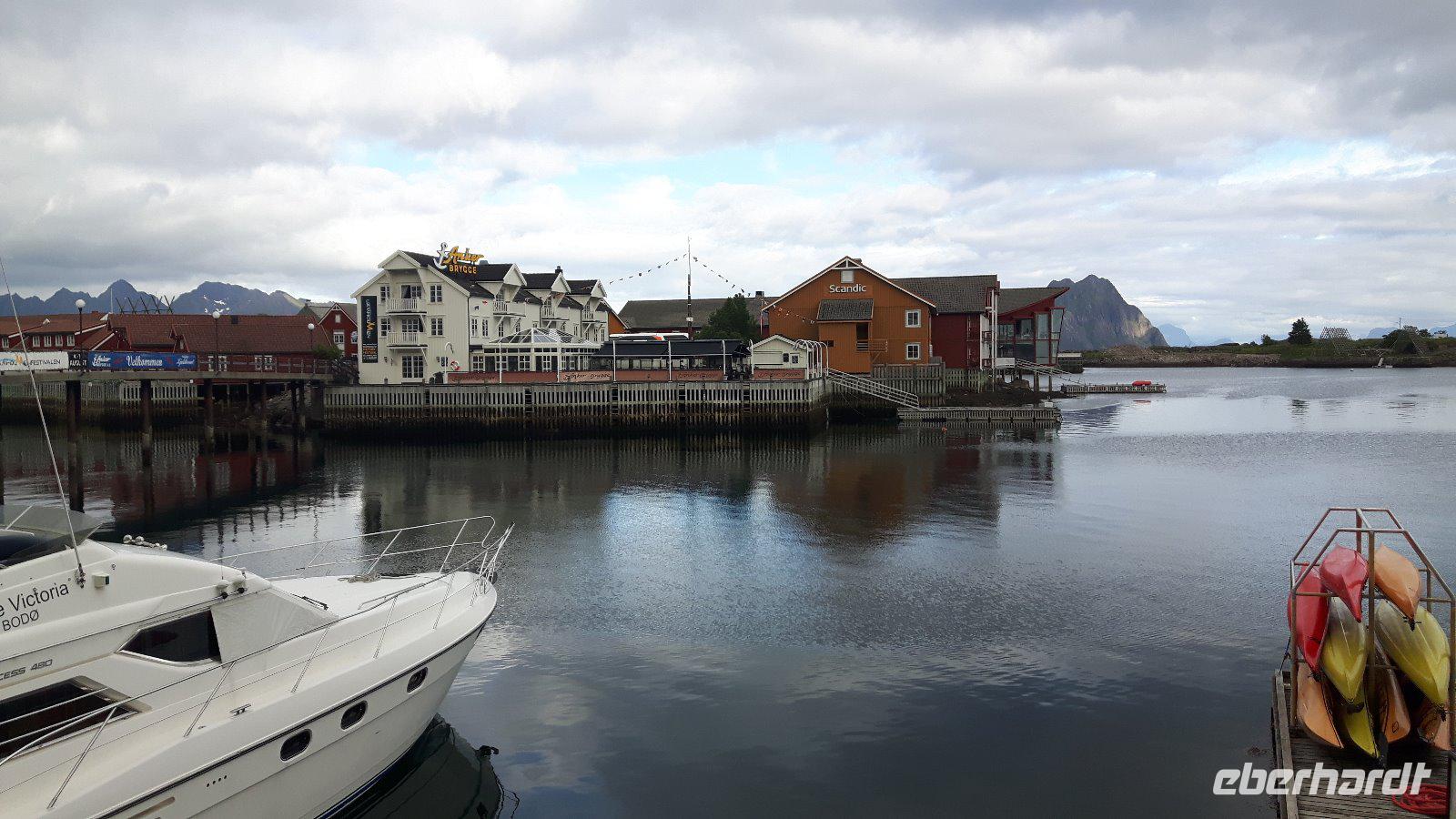 Einen kurzen Aufenthalt legten wir zunächst an der als „Lofot-Kathedrale" bekannten Kirche Vågan ein. Dieser größte Holzbau nördlich von Trondheim ist eine Kreuzkirche im neugotischen Stil. Sie wurde vom Architekt Carl Julius Bergstrøm entworfen und Ende des 19. Jahrhunderts eingeweiht. Das Gotteshaus verfügt immerhin über 1.200 Sitzplätze und löste eine alte, zu klein gewordene Kirche, ab. Der kleine Fischerort Hennigsvaer war unser nächstes Ziel und schon die Fahrt dahin war unglaublich beeindruckend. Es ging durch einzigartige Gebirgswelten und an traumhaften Buchten vorbei, bevor wir das sogenannte „Venedig des Nordens" erreichten. Der Ort wirkte beruhigend, fast schon „verschlafen". Während eines kleinen Bummels entdeckten wir nicht nur den idyllischen Hafen mit den kleinen Fischerbooten, sondern auch die auf den Lofoten überall präsenten Rorbuhütten, die den Fischern ehemals als Behausung während längerer Fangperioden dienten. Heute werden die gut ausgestatteten und restaurierten Hütten auch an Touristen vermietet. Zurück auf Europastraße 10 gelangten wir durch die unterschiedlichsten Landschaften nach Borg zum Besuch des Wikingermuseums, gewissermaßen einem „Museum zum Anfassen". Man muss sich vorstellen, dass Archäologen hier 1983 ein Langhaus aus Wikingerzeiten entdeckt haben und um den größten Fund aus dieser Zeit entstand dann ein Museum, in dem jeder circa 1.000 Jahre in die Vergangenheit zurück reisen kann. Während einer interessanten und kurzweiligen Führung erfuhren wir beispielsweise wie sich die Vorfahren der heutigen Norweger ernährt haben und wie es auf ihren Festen zuging. Außerdem wurden wir mit leckerer Wikingersuppe (Lamm) verwöhnt!