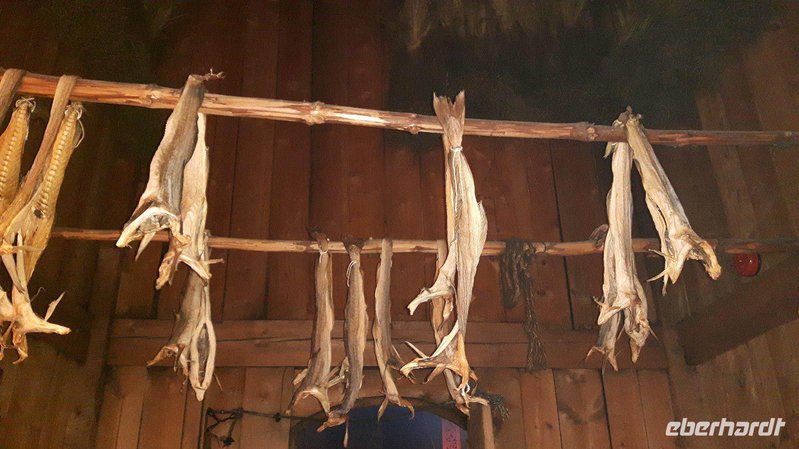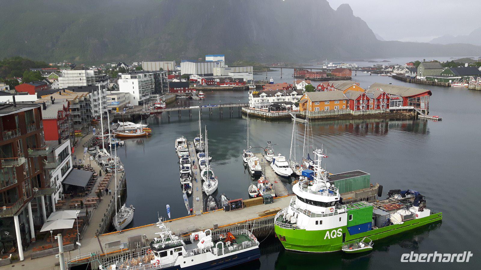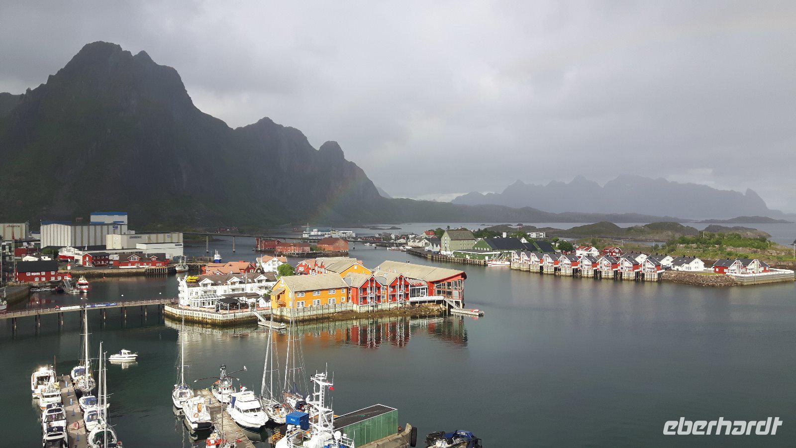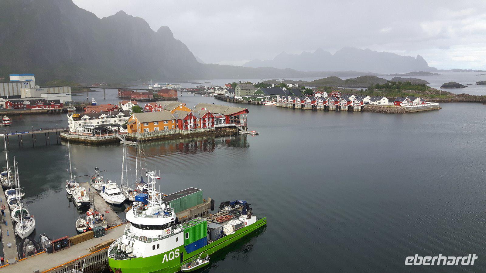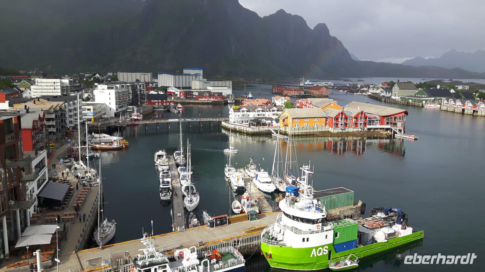 Einen kurzen Aufenthalt legten wir zunächst an der als „Lofot-Kathedrale" bekannten Kirche Vågan ein. Dieser größte Holzbau nördlich von Trondheim ist eine Kreuzkirche im neugotischen Stil. Sie wurde vom Architekt Carl Julius Bergstrøm entworfen und Ende des 19. Jahrhunderts eingeweiht. Das Gotteshaus verfügt immerhin über 1.200 Sitzplätze und löste eine alte, zu klein gewordene Kirche, ab. Der kleine Fischerort Hennigsvaer war unser nächstes Ziel und schon die Fahrt dahin war unglaublich beeindruckend. Es ging durch einzigartige Gebirgswelten und an traumhaften Buchten vorbei, bevor wir das sogenannte „Venedig des Nordens" erreichten. Der Ort wirkte beruhigend, fast schon „verschlafen". Während eines kleinen Bummels entdeckten wir nicht nur den idyllischen Hafen mit den kleinen Fischerbooten, sondern auch die auf den Lofoten überall präsenten Rorbuhütten, die den Fischern ehemals als Behausung während längerer Fangperioden dienten. Heute werden die gut ausgestatteten und restaurierten Hütten auch an Touristen vermietet. Zurück auf Europastraße 10 gelangten wir durch die unterschiedlichsten Landschaften nach Borg zum Besuch des Wikingermuseums, gewissermaßen einem „Museum zum Anfassen". Man muss sich vorstellen, dass Archäologen hier 1983 ein Langhaus aus Wikingerzeiten entdeckt haben und um den größten Fund aus dieser Zeit entstand dann ein Museum, in dem jeder circa 1.000 Jahre in die Vergangenheit zurück reisen kann. Während einer interessanten und kurzweiligen Führung erfuhren wir beispielsweise wie sich die Vorfahren der heutigen Norweger ernährt haben und wie es auf ihren Festen zuging. Außerdem wurden wir mit leckerer Wikingersuppe (Lamm) verwöhnt!