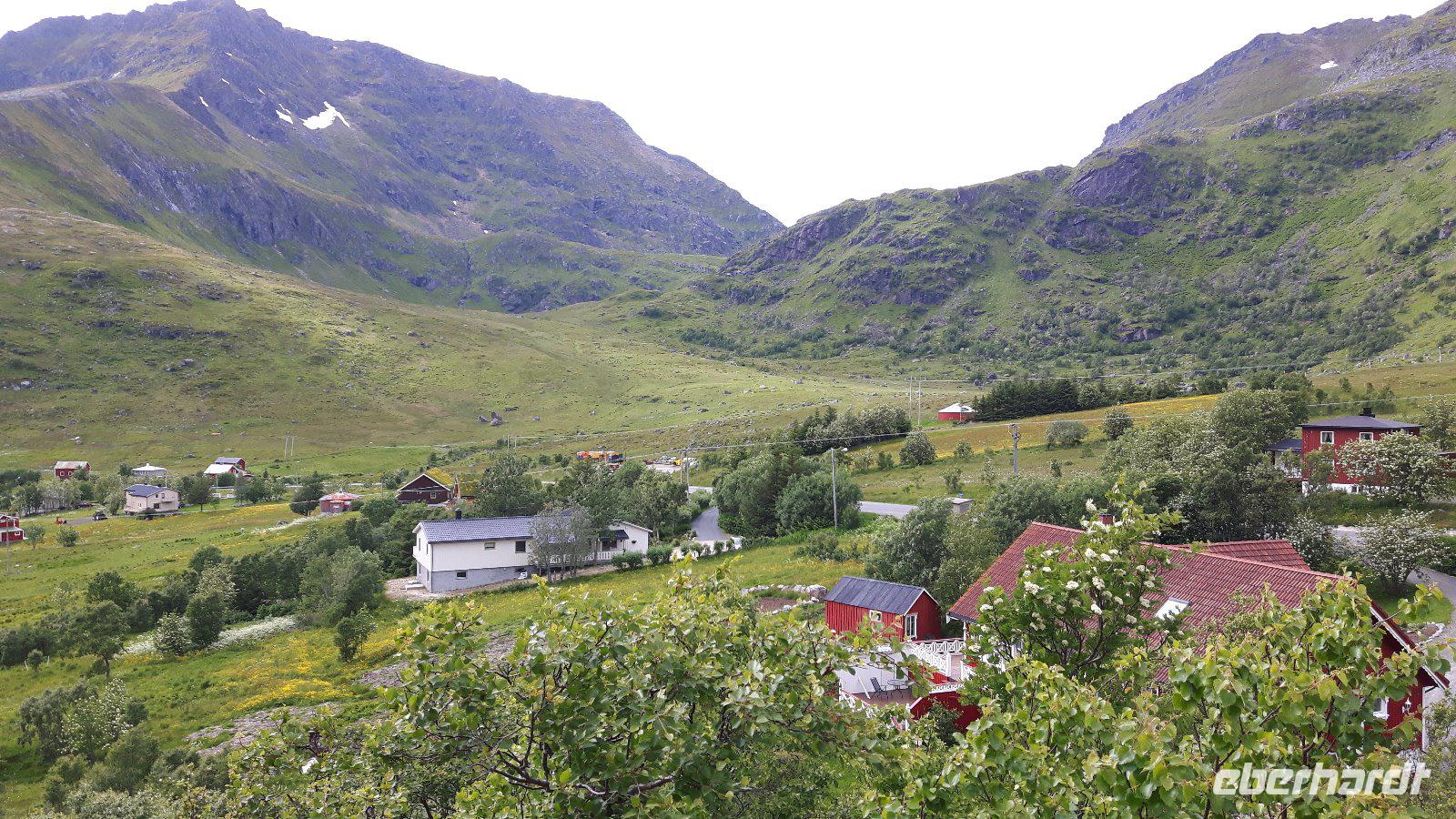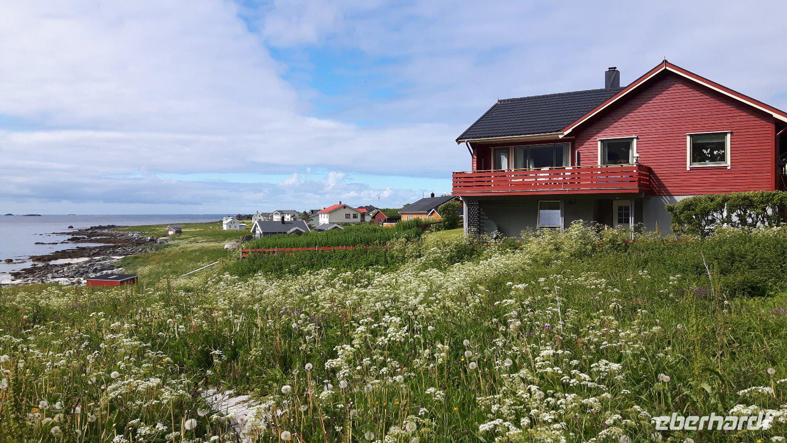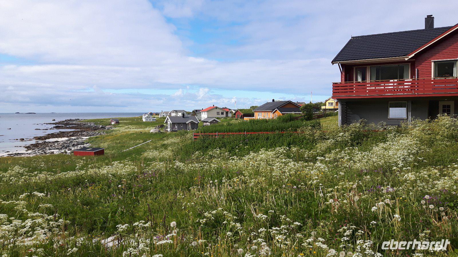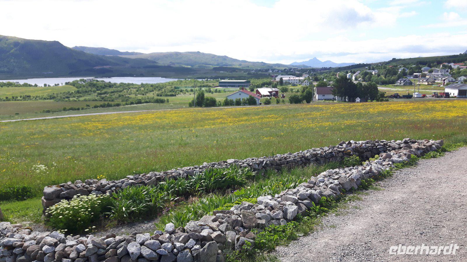 Einen kurzen Aufenthalt legten wir zunächst an der als „Lofot-Kathedrale" bekannten Kirche Vågan ein. Dieser größte Holzbau nördlich von Trondheim ist eine Kreuzkirche im neugotischen Stil. Sie wurde vom Architekt Carl Julius Bergstrøm entworfen und Ende des 19. Jahrhunderts eingeweiht. Das Gotteshaus verfügt immerhin über 1.200 Sitzplätze und löste eine alte, zu klein gewordene Kirche, ab. Der kleine Fischerort Hennigsvaer war unser nächstes Ziel und schon die Fahrt dahin war unglaublich beeindruckend. Es ging durch einzigartige Gebirgswelten und an traumhaften Buchten vorbei, bevor wir das sogenannte „Venedig des Nordens" erreichten. Der Ort wirkte beruhigend, fast schon „verschlafen". Während eines kleinen Bummels entdeckten wir nicht nur den idyllischen Hafen mit den kleinen Fischerbooten, sondern auch die auf den Lofoten überall präsenten Rorbuhütten, die den Fischern ehemals als Behausung während längerer Fangperioden dienten. Heute werden die gut ausgestatteten und restaurierten Hütten auch an Touristen vermietet. Zurück auf Europastraße 10 gelangten wir durch die unterschiedlichsten Landschaften nach Borg zum Besuch des Wikingermuseums, gewissermaßen einem „Museum zum Anfassen". Man muss sich vorstellen, dass Archäologen hier 1983 ein Langhaus aus Wikingerzeiten entdeckt haben und um den größten Fund aus dieser Zeit entstand dann ein Museum, in dem jeder circa 1.000 Jahre in die Vergangenheit zurück reisen kann. Während einer interessanten und kurzweiligen Führung erfuhren wir beispielsweise wie sich die Vorfahren der heutigen Norweger ernährt haben und wie es auf ihren Festen zuging. Außerdem wurden wir mit leckerer Wikingersuppe (Lamm) verwöhnt!
