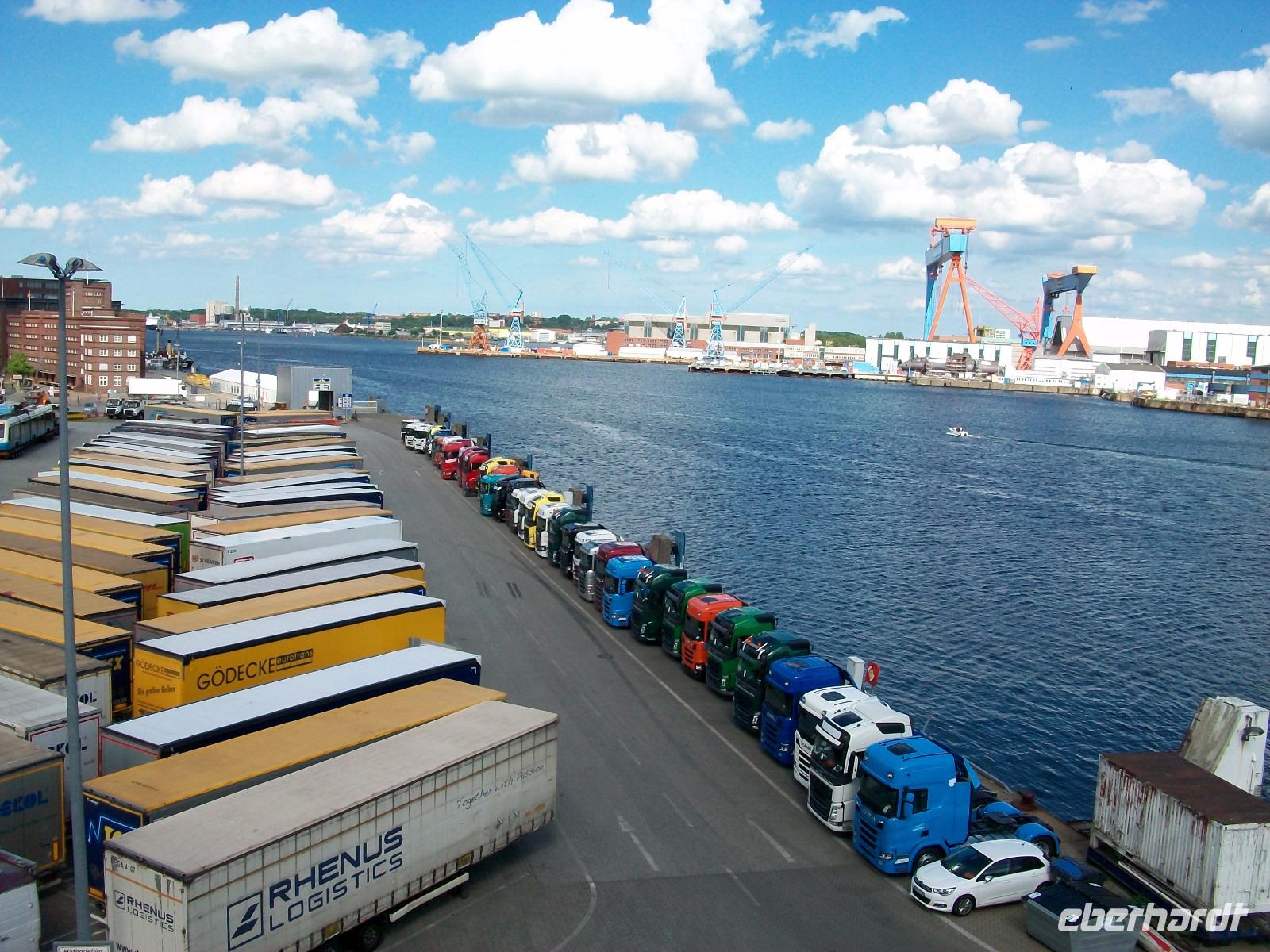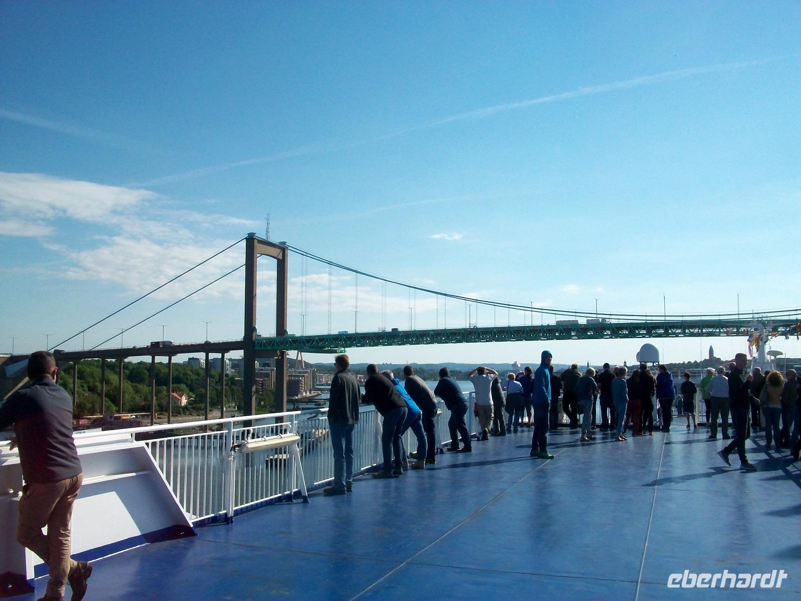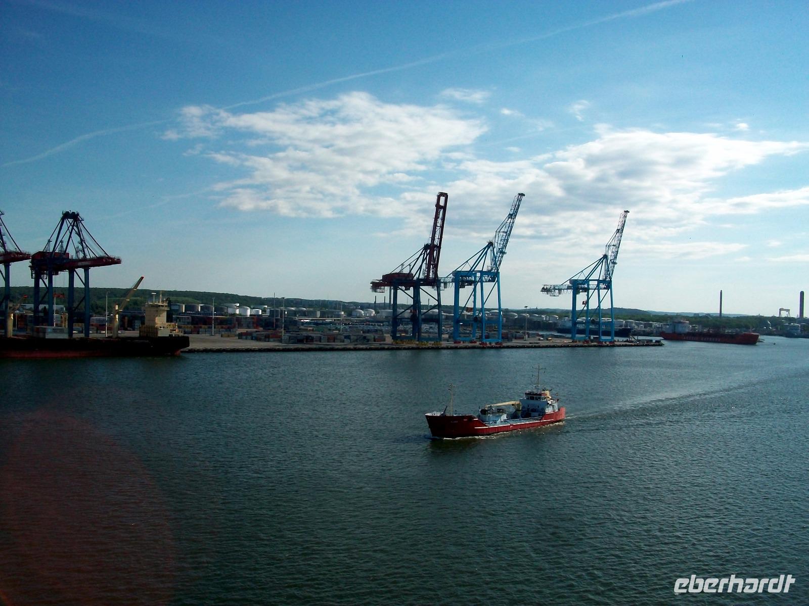 6.6.2017. Die Überfahrt verlief ruhig, das Meer hatte kaum Wellen und nach dem kräftigenden Frühstück an Bord kommen bald die Hafenanalgen von Göteborg in Sicht. Auch der Wettergott spielt mit und die Einfahrt zum Hafen können wir auf dem Oberdeck genießen; zahlreiche Schiffe sind zu sehen und, immer interessant, die Hafenanlagen der Stadt.
