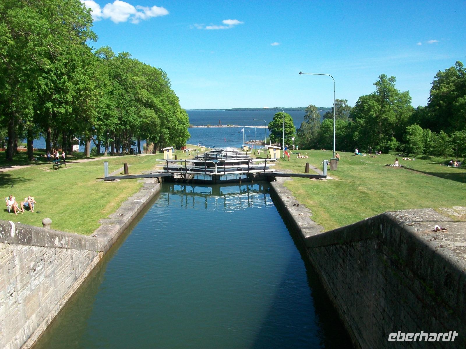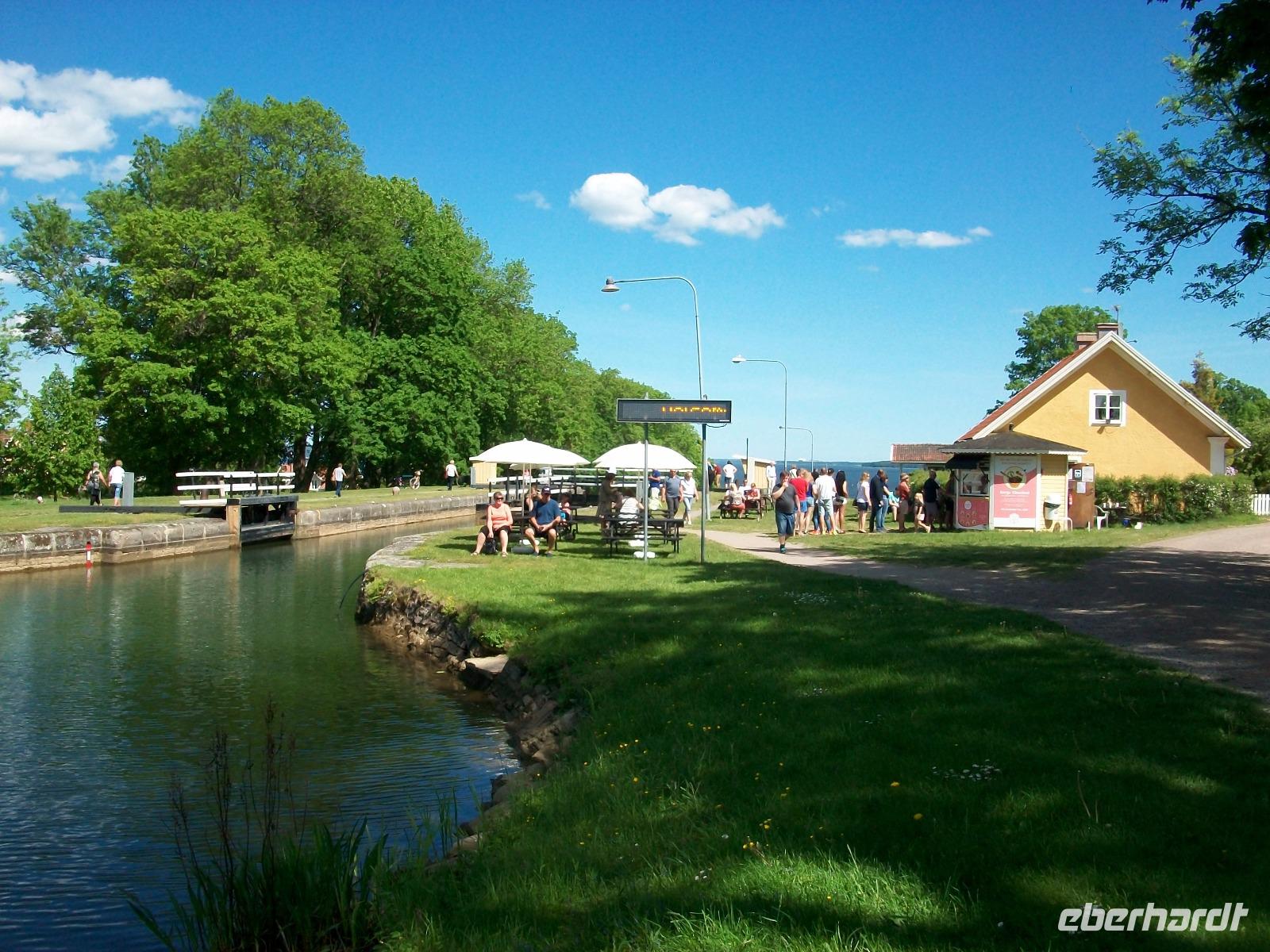 Beim Ort Berg kommen nun die technisch Interessierten auf ihre Kosten, wir besuchen die berühmte Schleusentreppe des Götakanals. Hier wurden einst Schiffe geschleust; angelegt wurde diese Anlage in der Epoche der Industrialisierung Schwedens, heute ist sie eine Attraktion für Touristen. Bei wunderbar schönem Wetter verleben wir hier eine angenehme Zeit und nach einer guten Stunde nehmen wir die letzte Etappe des Tages in Angriff.