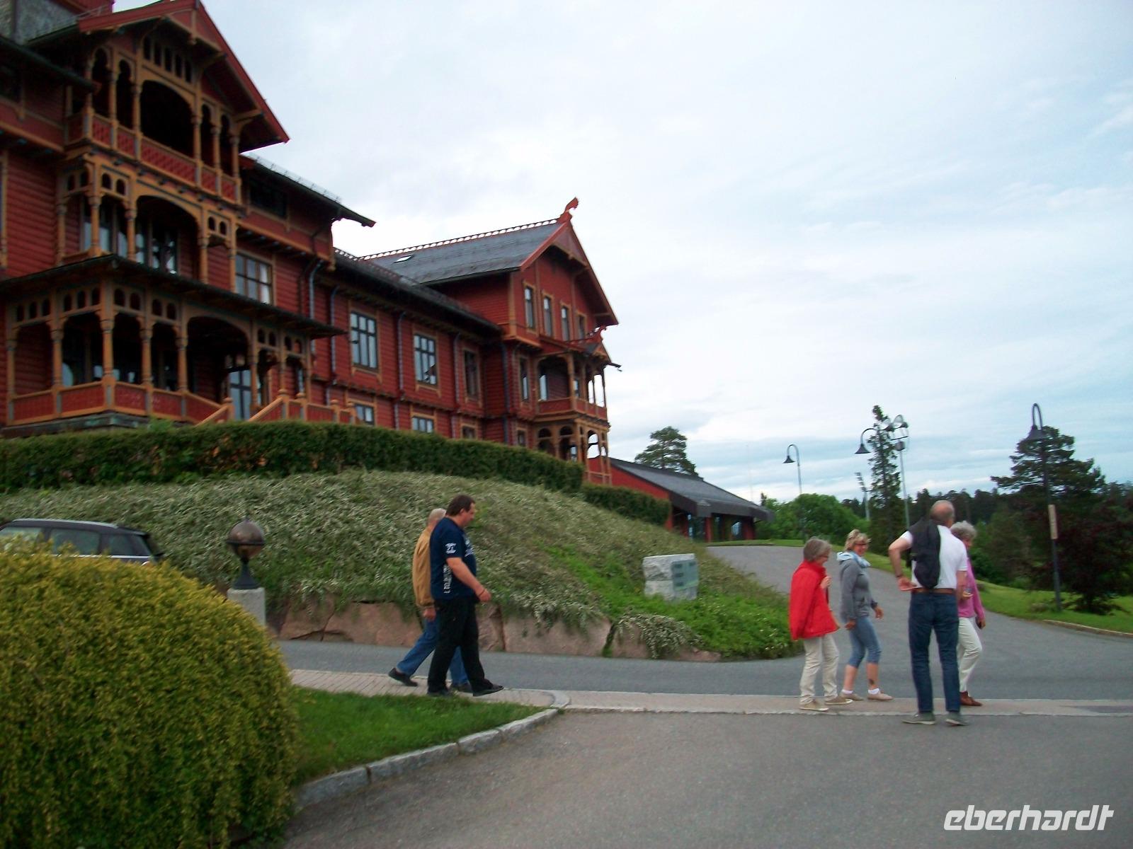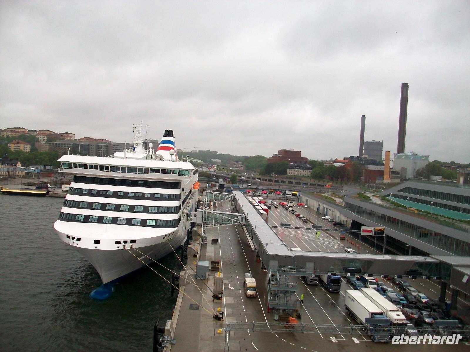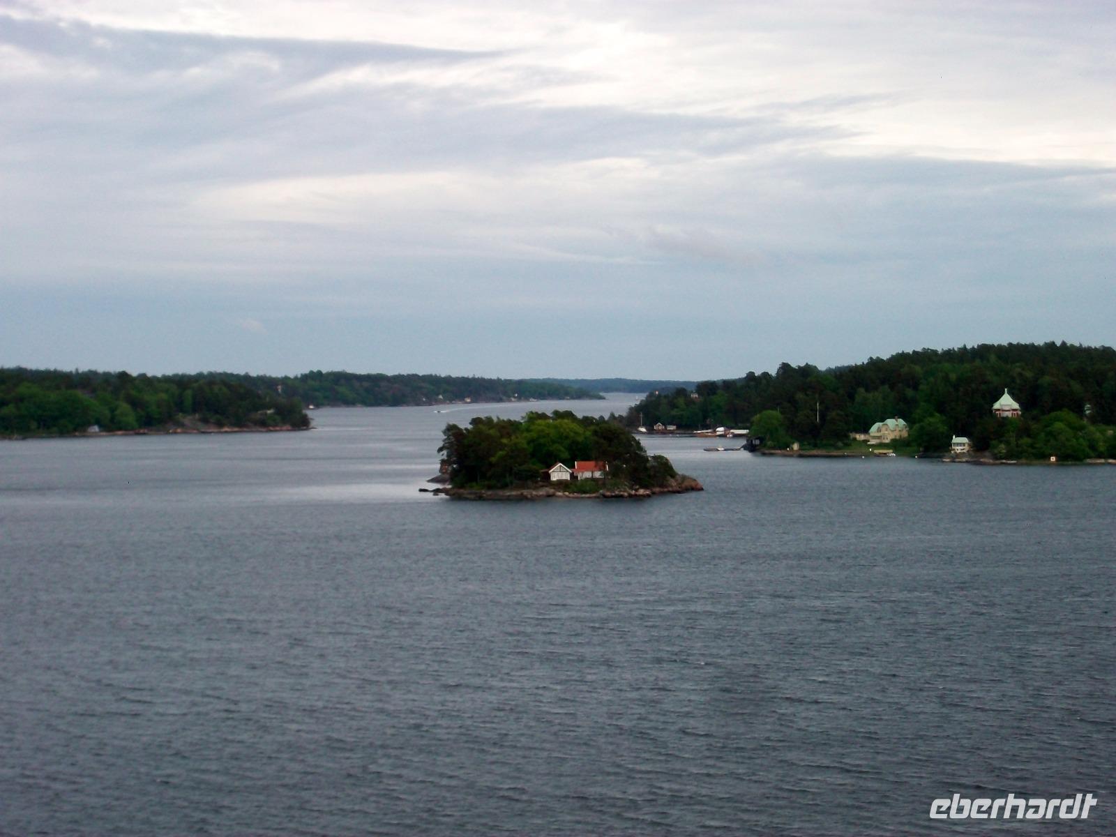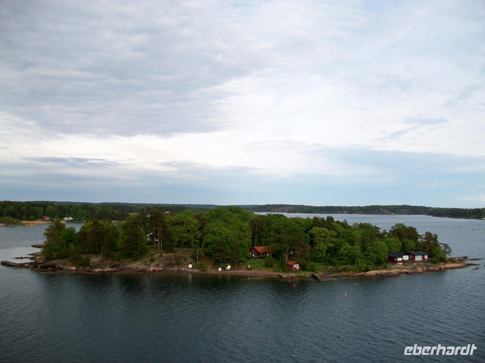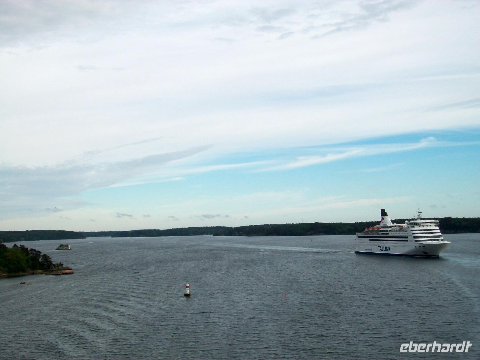 Dennoch verleben wir hier noch eine schöne Zeit; am Nachmittag gelangen wir dann zur Fähre und bald können wir über eine lange Gangway das schöne Schiff betreten. Hier werden wir schon lustig empfangen; auf dieser Fährüberfahrt kommen wir nun noch in den Genuss einer kleinen Kreuzfahrt mit zahlreichen Möglichkeiten der Unterhaltung. Im Mittelteil ist die Promenade untergebracht mit schönen Geschäften, Souvenirläden und Restaurants. Nach dem Diner führt uns der Weg zum Oberdeck und wir genießen, nun wieder bei besserem Wetter und etwas Sonne, die eindrucksvolle Ausfahrt durch die Schären. Auf den nicht zu zählenden Inseln haben sich viele Schweden kleine Häuser gebaut und dieser Anblick kann malerischer gar nicht sein!