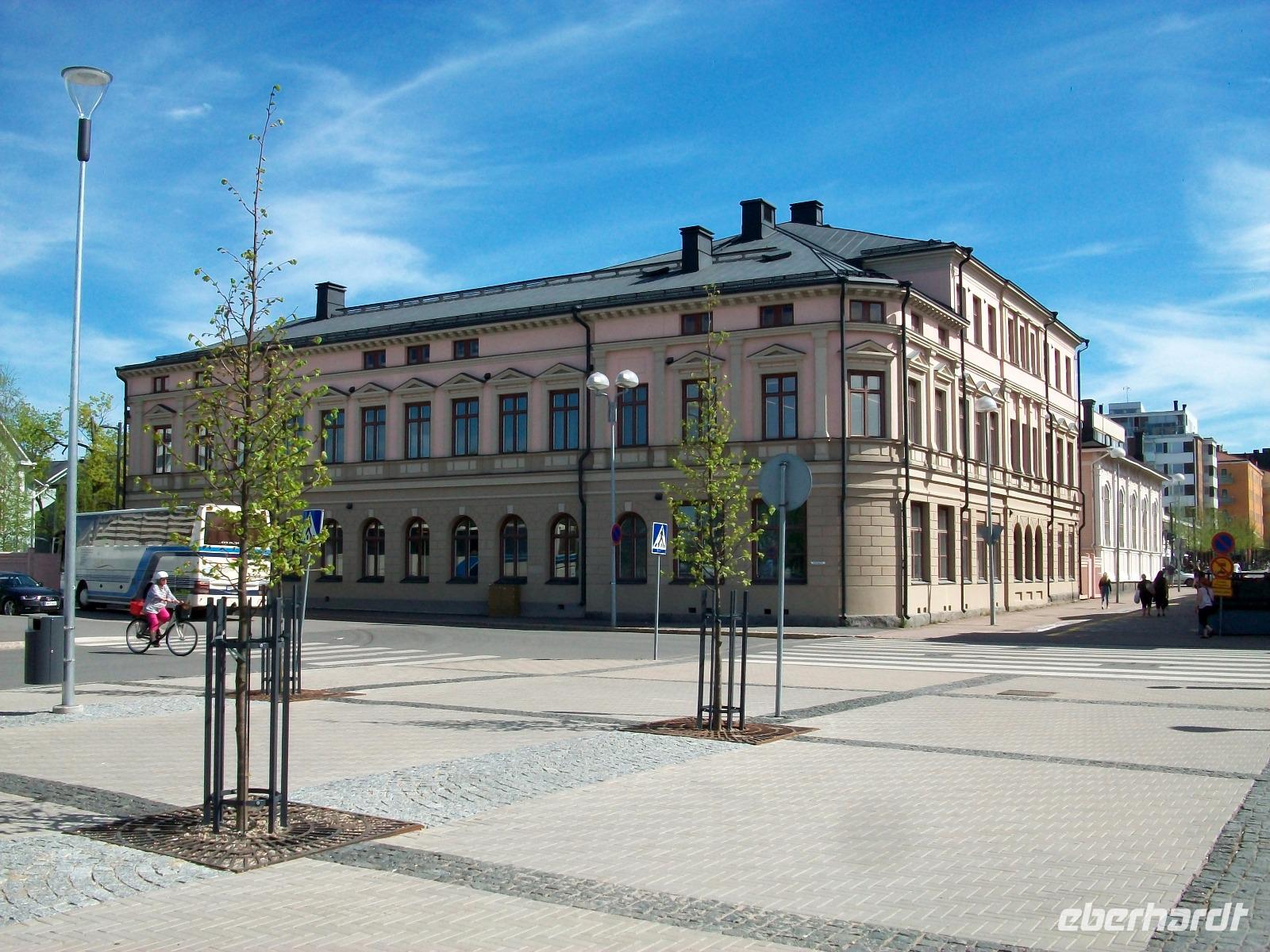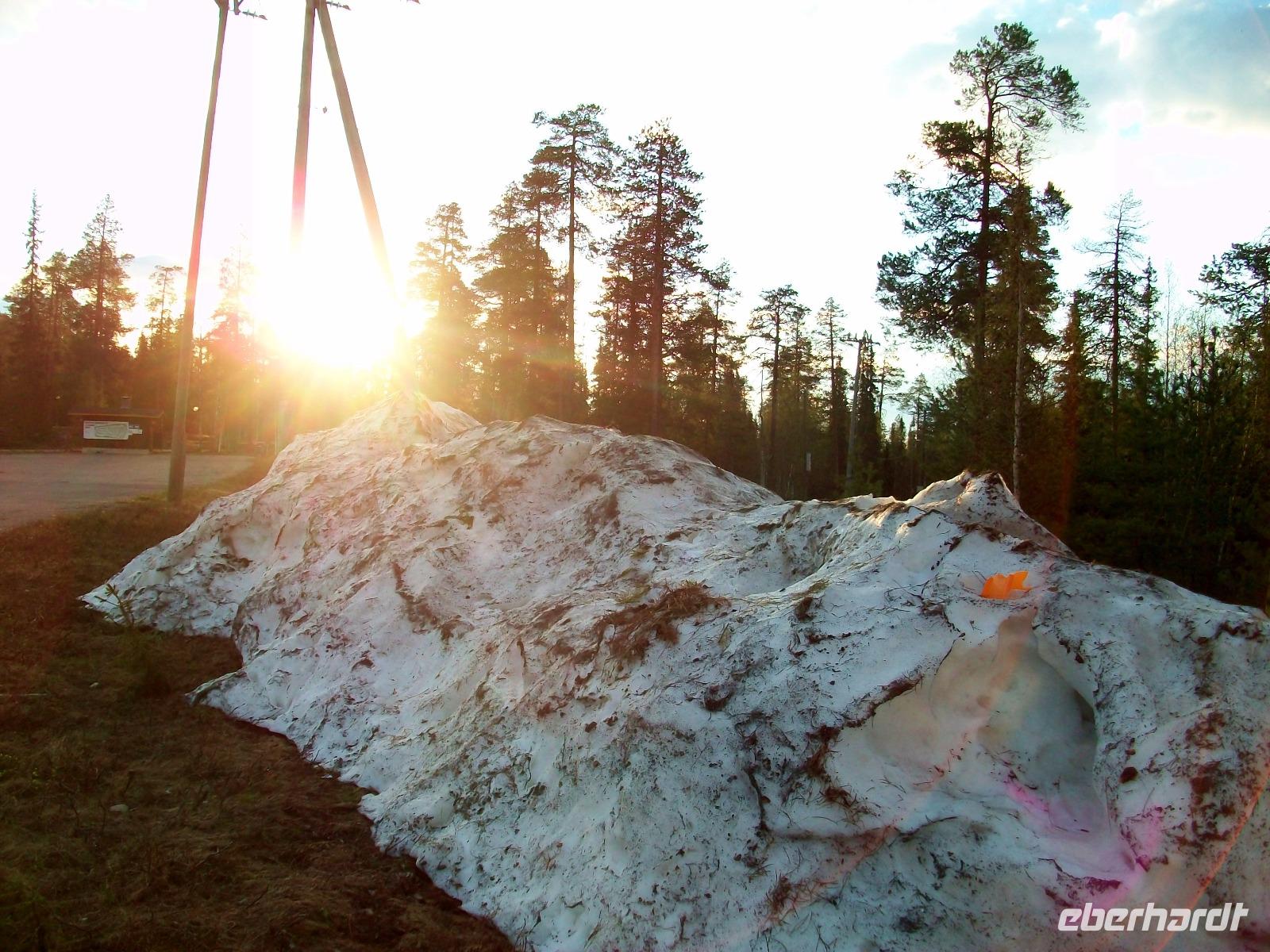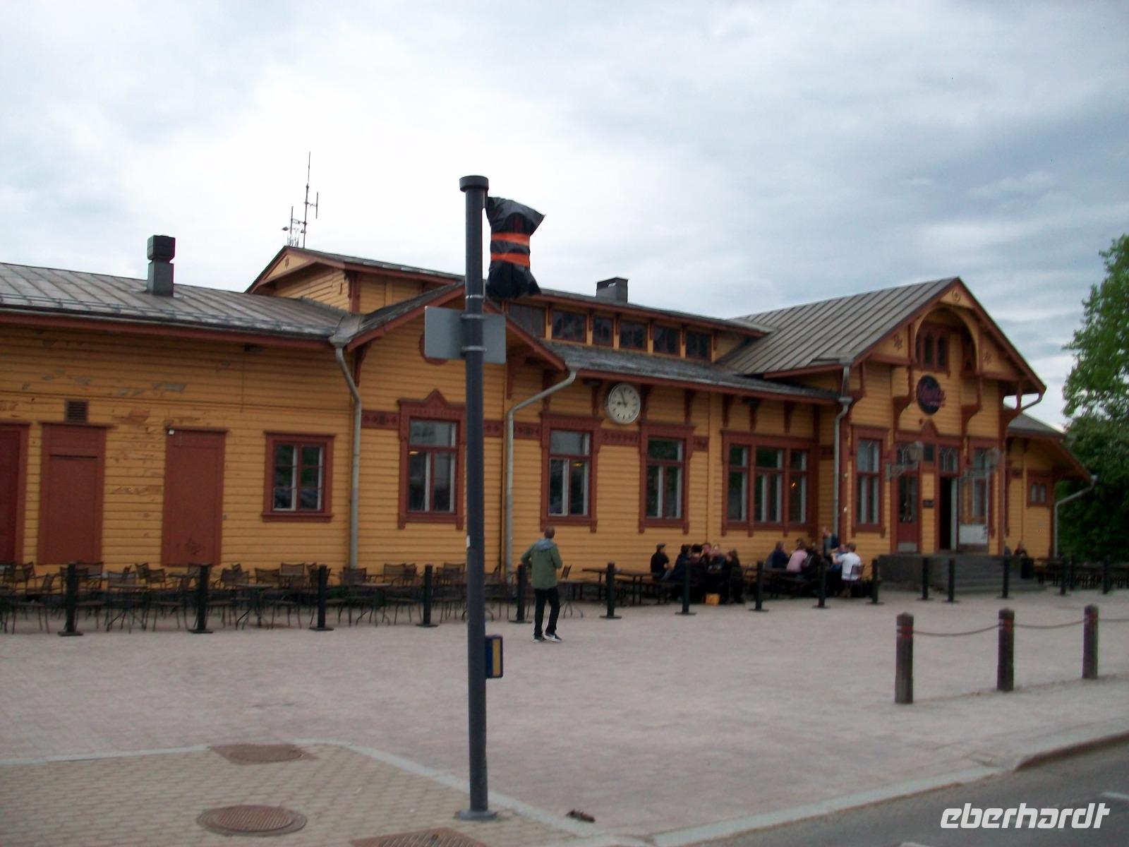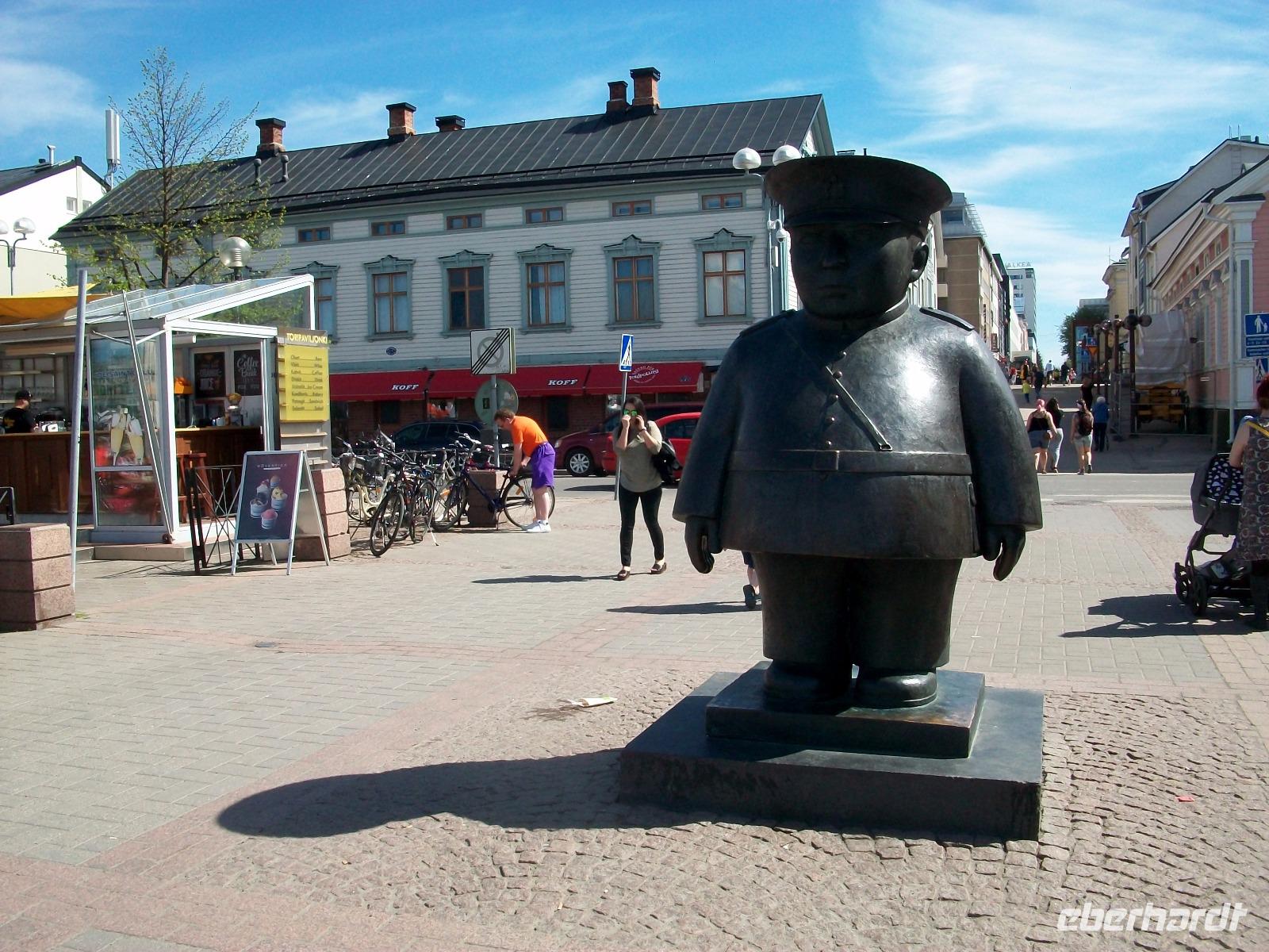 9.6.2017. Ein langer Tag liegt vor uns, deshalb müssen wir auch früh starten. Heute hat sich nun die Sonne herausgewagt, sie wird uns den ganzen Tag begleiten und für angenehme Temperaturen sorgen. Unser Weg führt uns nun weiter nach Norden; durch dünnbesiedelte Gebiete und unberührte Natur gelangen wir gegen Mittag zur bekannten finnischen Hafenstadt Oulu und in der Nähe des Wassers gönnen wir uns eine kurze Pause für eine Stippvisite. Es ist Markt und ein buntes Treiben empfängt uns bei sommerlichen Temperaturen. Lange können wir nicht verweilen, unser Weg ist noch weit und parallel des Bottnischen Meerbusens, es ist der nördliche Zipfel der Ostsee, gelangen wir in das Flusstal des Kemijoki. Die Kilometer verschwinden unter den Rädern des Busses, bald sehen wir die Häuser von Rovaniemi, dahinter liegt dann der Polarkreis. Es ist ein besonderer Ort denn hier wohnt der Weihnachtsmann. Als wir aussteigen werden wir von weihnachtlichen Klängen empfangen, bei über 20° Celsius ein eigenartiges Gefühl. Hier gönnen wir uns nun ein Stündchen Zeit; quer über den Asphalt ist ein dicker Strich gezogen, er symbolisiert den Polarkreis. Mit einem großen Schritt überschreiten wir ihn und schauen uns danach die Werkstatt des Weihnachtsmanns an der sich an diesem Ort doch tatsächlich die Ehre gibt! Wer möchte lässt sich mit ihm und den Wichteln fotografieren; während hier leise der Schnee rieselt haben wir draußen sommerliche Temperaturen. Hier gibt es auch ein Postamt und wer will kann schon heute die Weihnachtspost erledigen, ein besonderer Stempel kommt noch direkt vom Weihnachtsmann darauf.