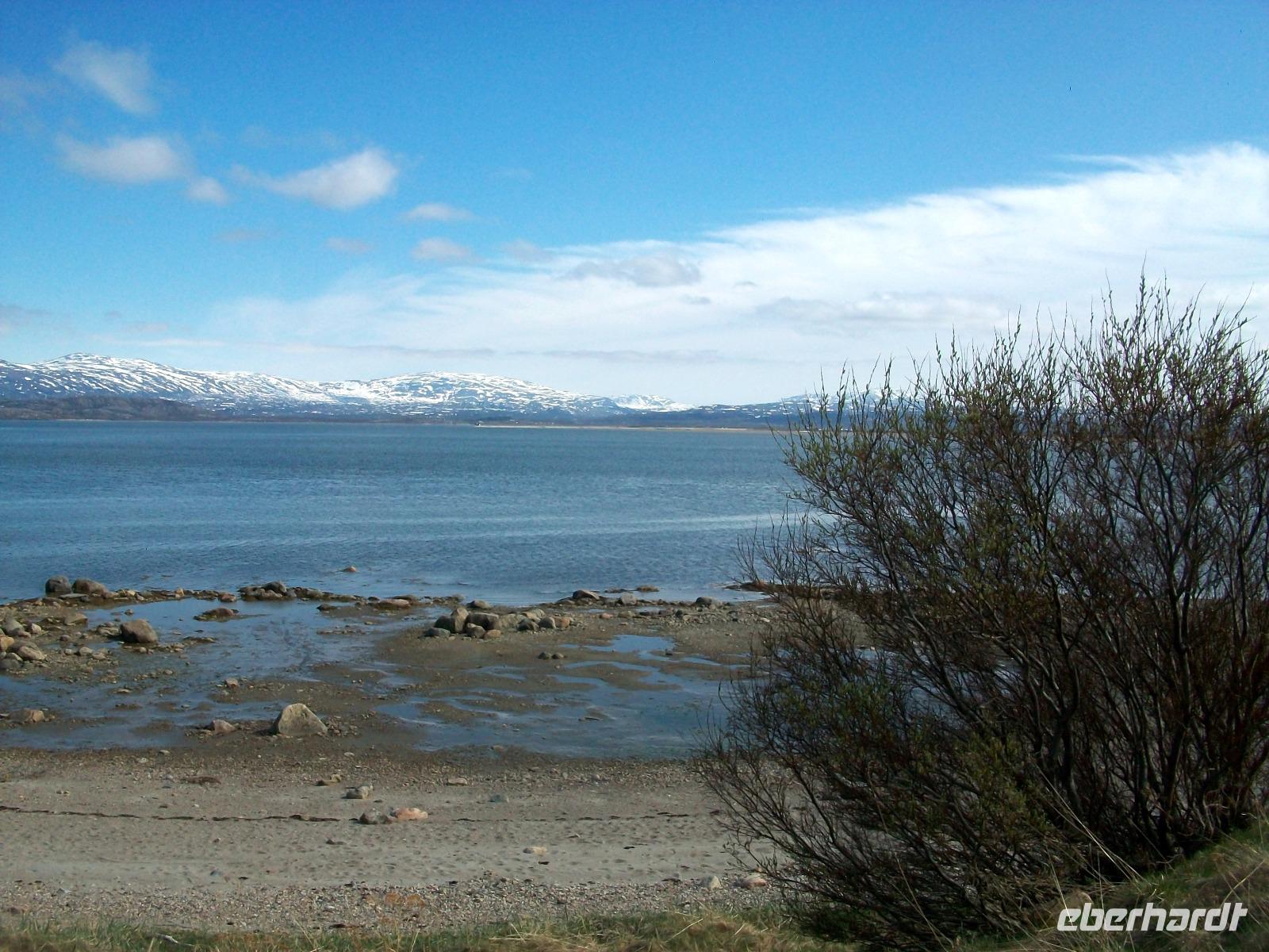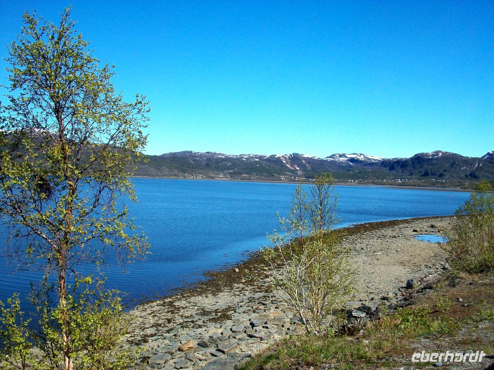 Dieser Aufenthalt hat sich wirklich gelohnt und die Sonne ist unser weiterer Begleiter durch das schöne Land. Bald teilt sich die Straße und wir sehen links, etwas im Dunst, die Hafenstadt Narvik liegen. Hier müssen wir uns auch mit den traurigen Ereignissen beschäftigen die hier im 2. Weltkrieg stattfanden, trotz aller Schönheiten des Landes, diese Dinge gehören auch zu einer Norwegen - Reise.