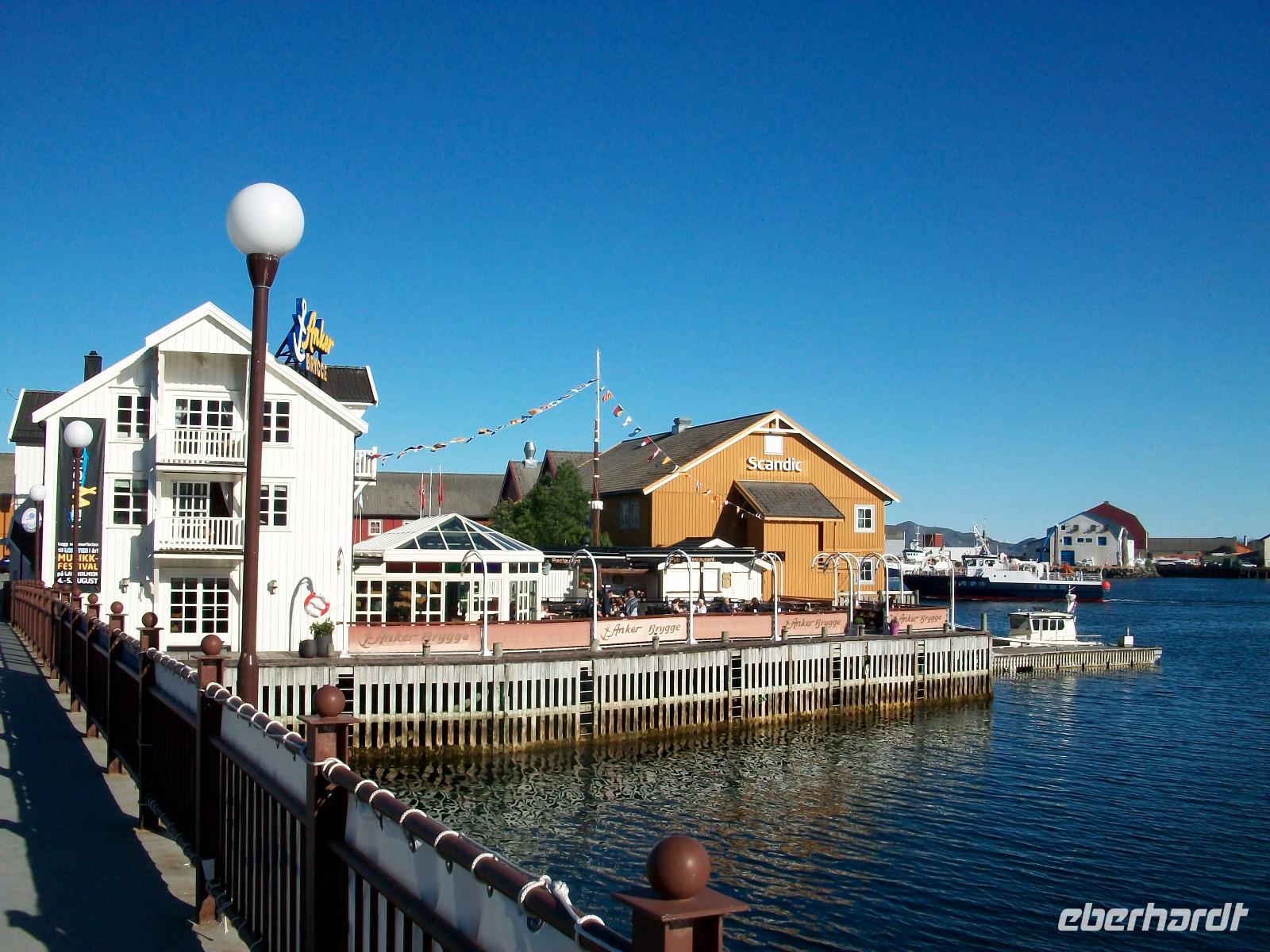 Nun sind wir auf dem Weg zu unserer letzten Etappe des Tages; an der beeindruckenden Tjellsundbrücke genehmigen wir uns noch einen letzten Fotostopp um wenig später den Ort Harstad zu erreichen. Hier verbleibt uns nun bis zum Abendessen noch etwas Zeit zu Erkundungen dieser eher modernen Stadt die aber sehr romantisch direkt am Wasser liegt welches sich unweit unseres Hotel befindet,