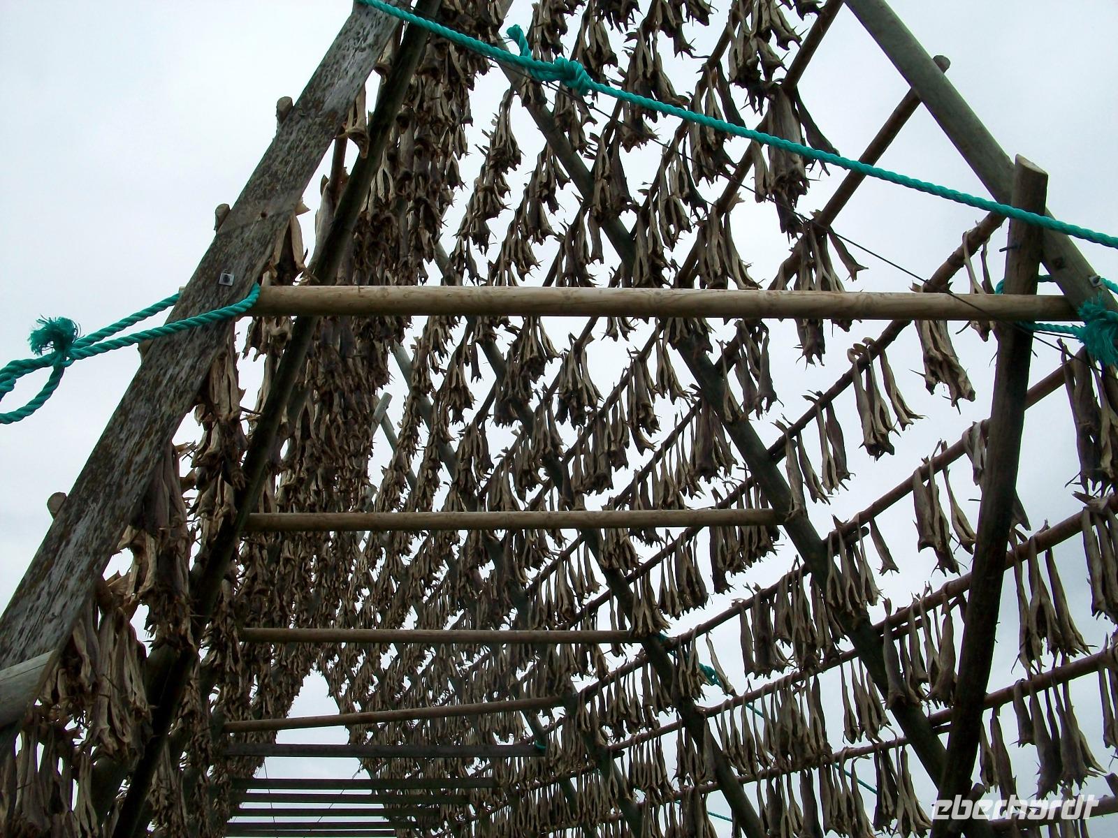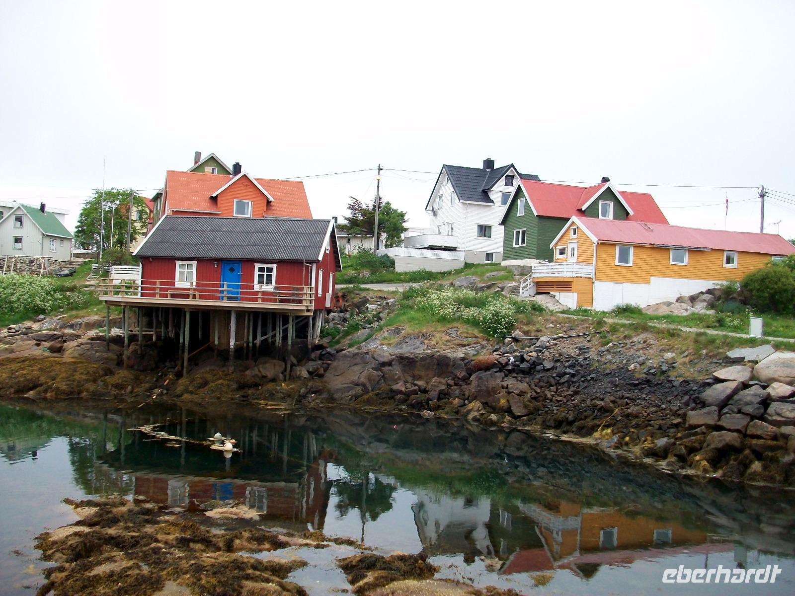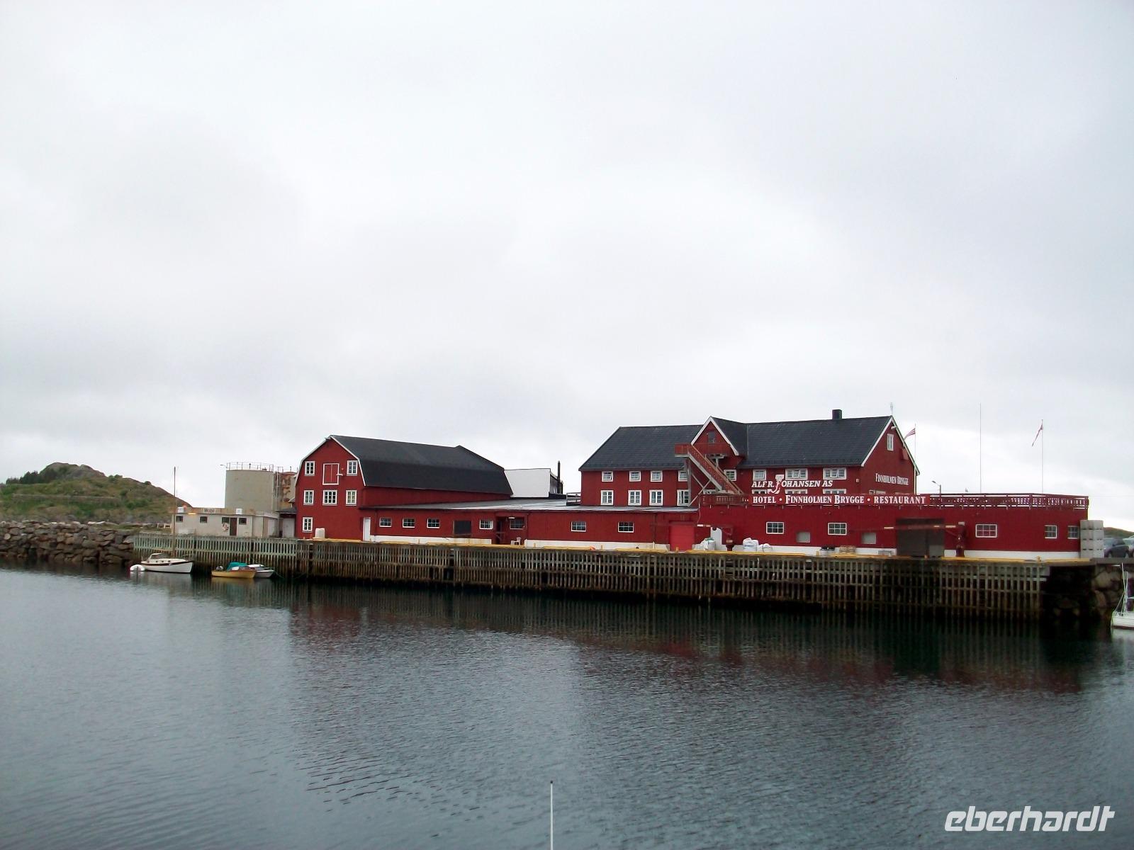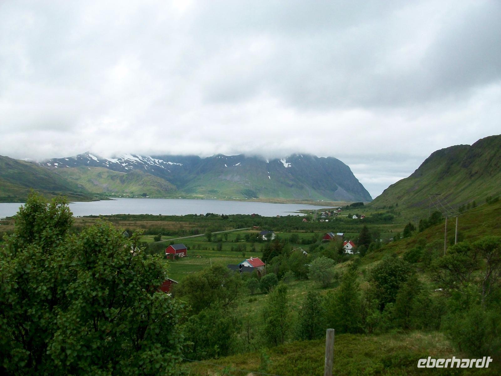 14.6.2017. Leider hat uns Petrus heute kein schönes Wetter geschickt. Als wir starten hängen dicke Wolken an den Bergen und es tröpfelt leicht. Das hindert uns aber nicht den schönen Archipel der Lofoten heute mit dem Bus zu erkunden; gar nicht weit und wir gelangen nach Hennigsvær. Dieses uralte Fischernest mit seinen reizvollen Häusern zeigt uns wie die Fischer hier auf den Lofoten leben. Auf Gestellen hängt der Kabeljau zum trocknen, auch heute noch eine wichtige Einnahmequelle der hier lebenden Menschen.