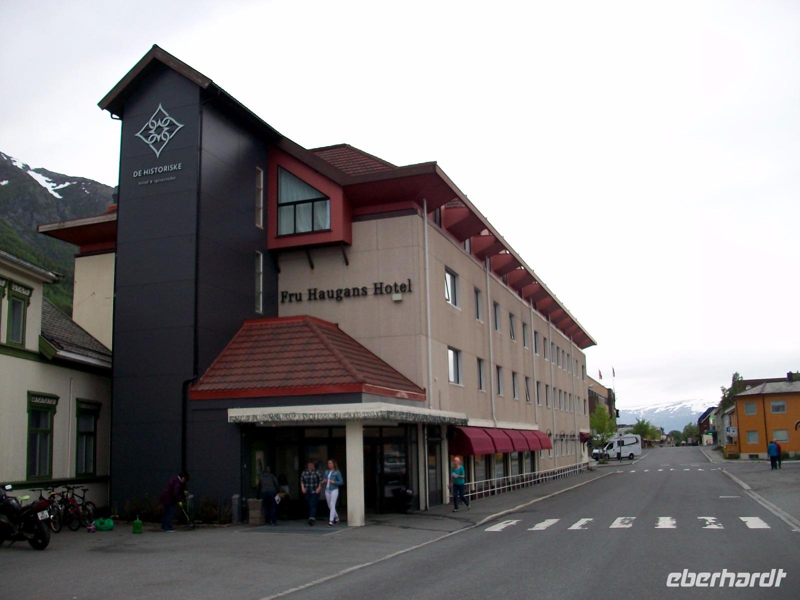 Leider können wir uns hier nicht allzu lange aufhalten, unser Weg ist noch weit. Unsere Tour führt uns nun wieder hinunter auf Meeresniveau zu den Fjorden. Das ist eine neue Impression; leider bezieht sich nun doch der Himmel und als wir zu unserem Hotel gelangen, ist es trüber als wir uns wünschen können.