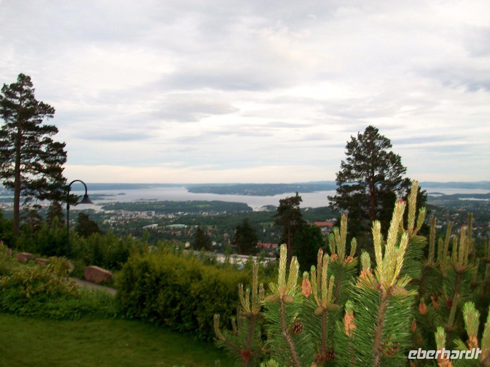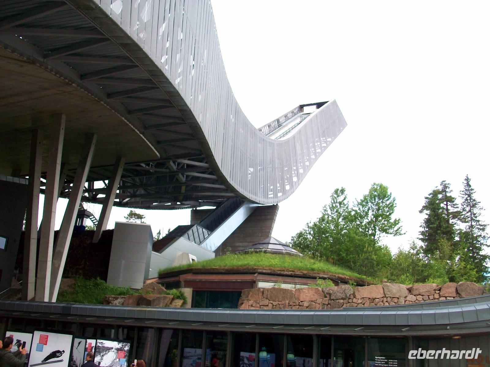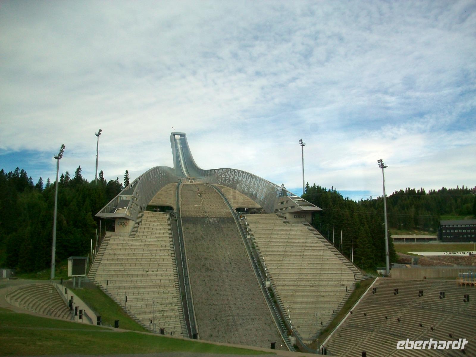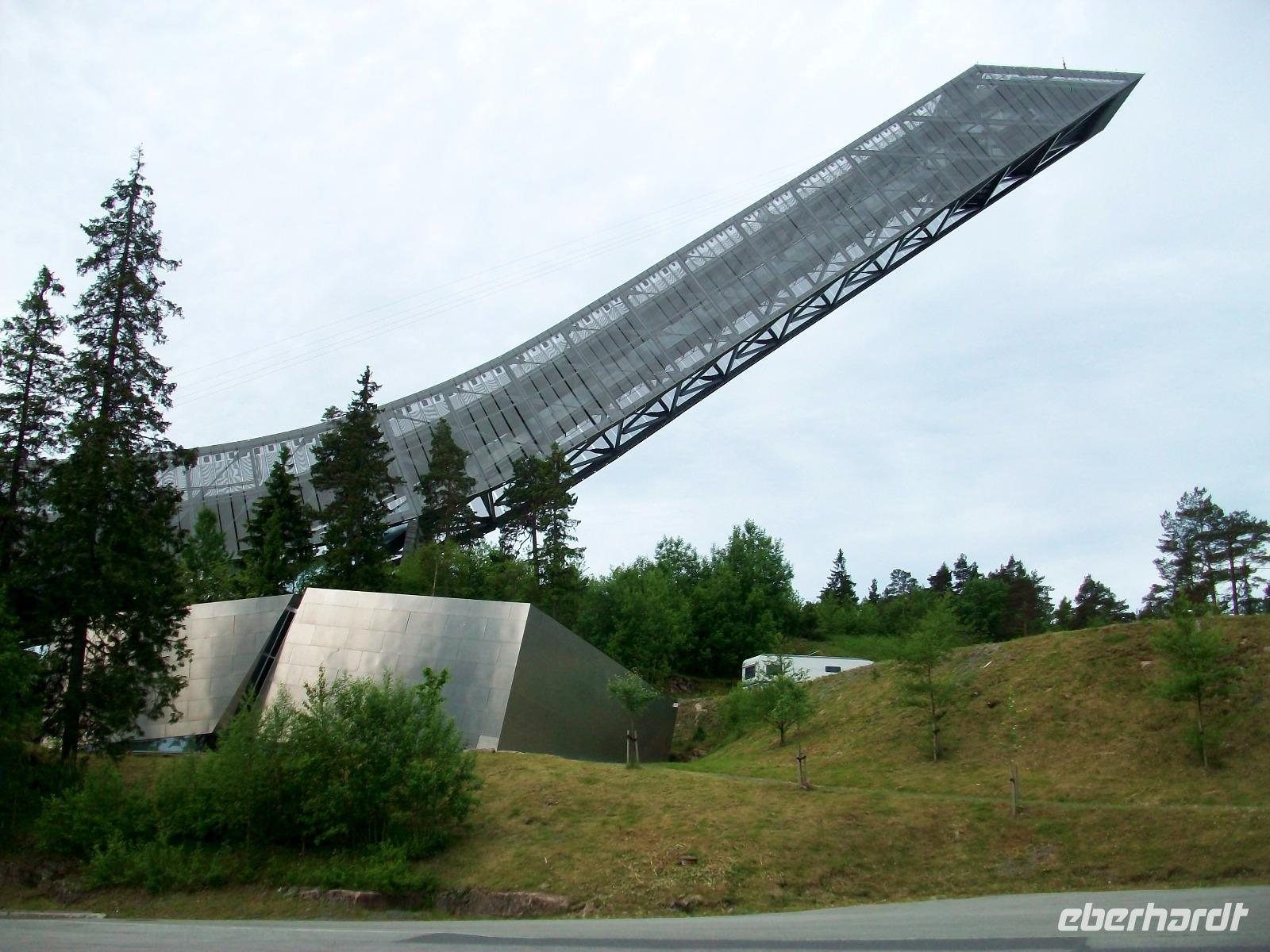 Doch wir müssen weiter, unser Weg ist noch weit! Im Vorüberfahren sehen wir die Sprungschanzen von Lillehammer um fortan am größten See Norwegens entlang zu fahren. Es ist der Mjøsasee und seine Ausdehnung ist doch gewaltig. So vergeht die Zeit; bald kommen wir in den Großraum von Oslo, am Hang des Holmenkollens sehen wir schon die Sprungschanze und bald auch unser Hotel hoch über der Stadt. Nach Check In und leckerem Diner sind es nur wenige Gehminuten zur Schanze und überall von hier oben hat man einen grandiosen Blick hinunter nach Oslo und das Meer, ein wahrhaft schöner Übernachtungsort fast zum Ende der Tour!