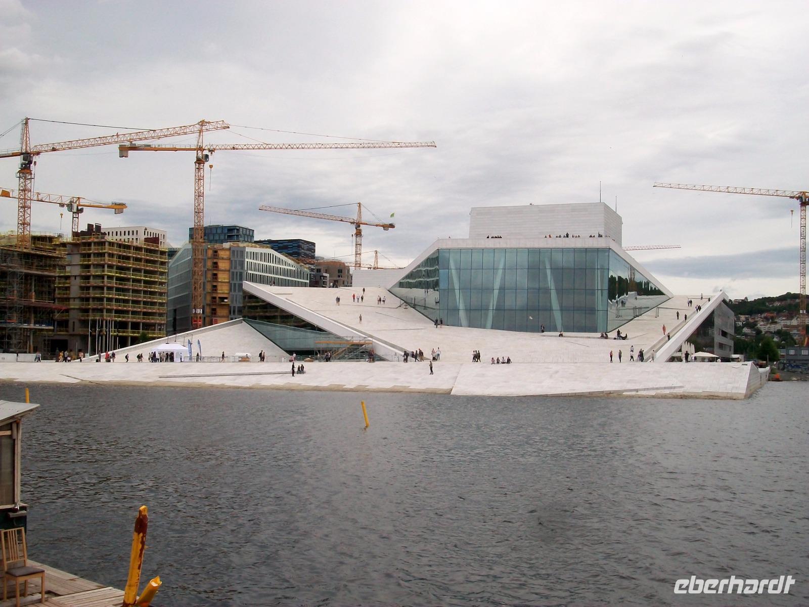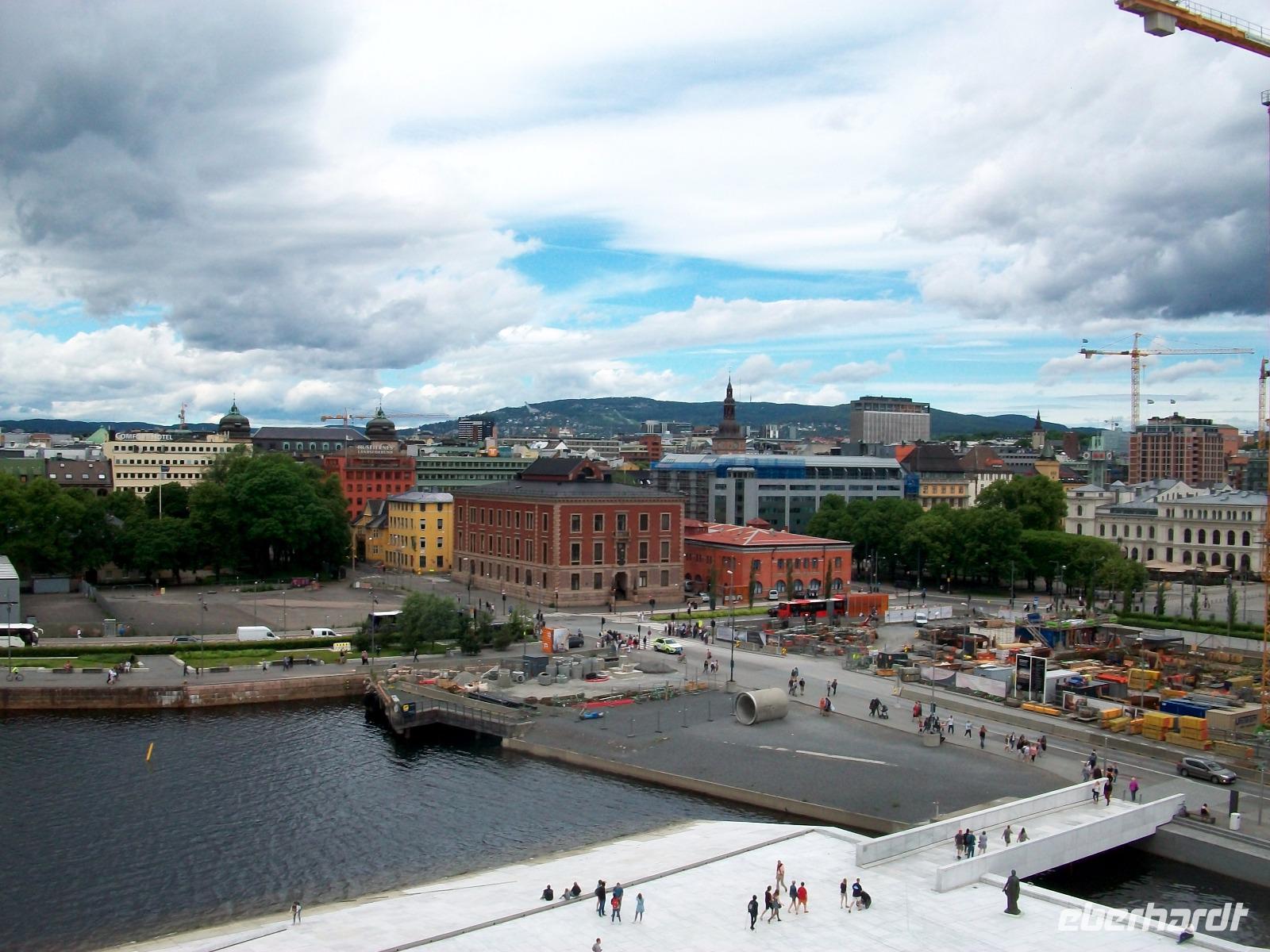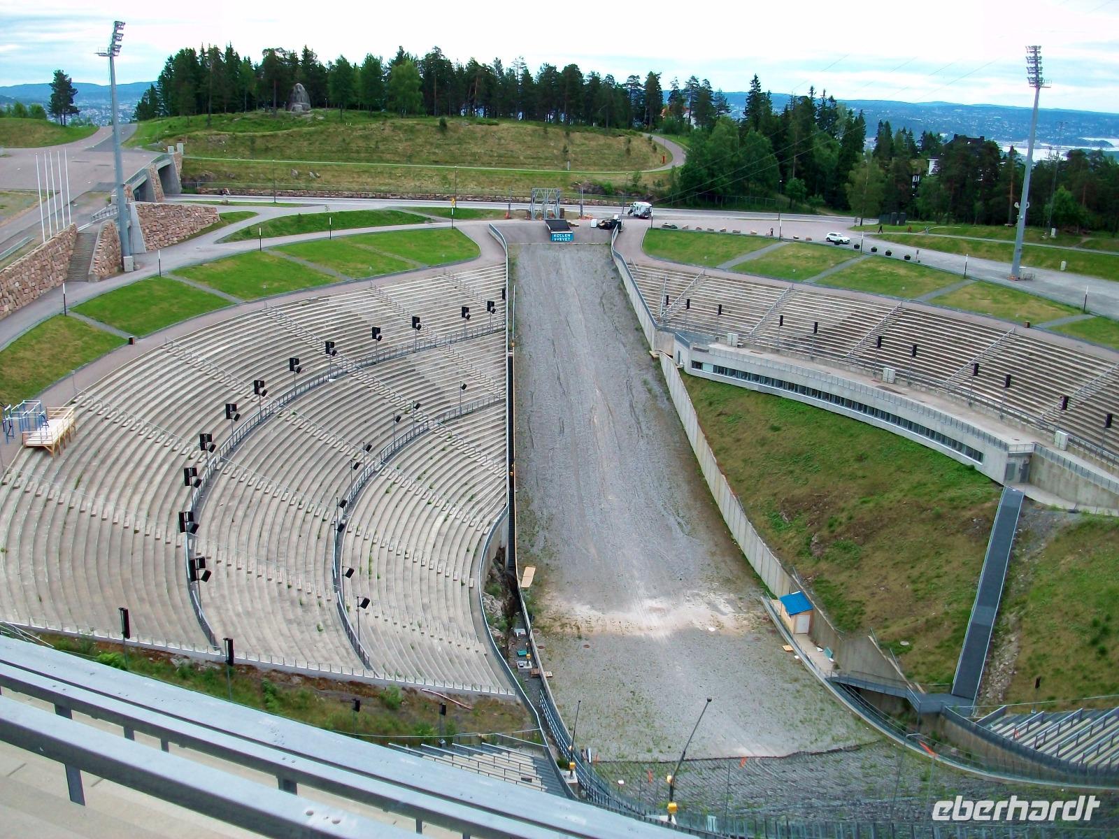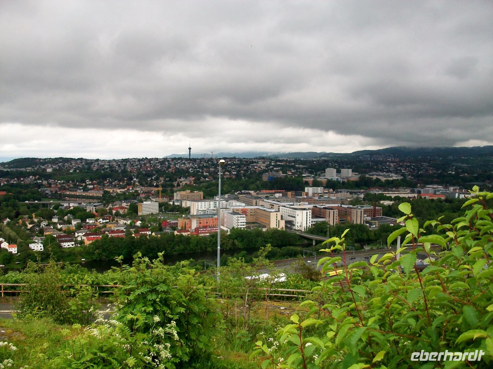 Doch wir müssen weiter, unser Weg ist noch weit! Im Vorüberfahren sehen wir die Sprungschanzen von Lillehammer um fortan am größten See Norwegens entlang zu fahren. Es ist der Mjøsasee und seine Ausdehnung ist doch gewaltig. So vergeht die Zeit; bald kommen wir in den Großraum von Oslo, am Hang des Holmenkollens sehen wir schon die Sprungschanze und bald auch unser Hotel hoch über der Stadt. Nach Check In und leckerem Diner sind es nur wenige Gehminuten zur Schanze und überall von hier oben hat man einen grandiosen Blick hinunter nach Oslo und das Meer, ein wahrhaft schöner Übernachtungsort fast zum Ende der Tour!
