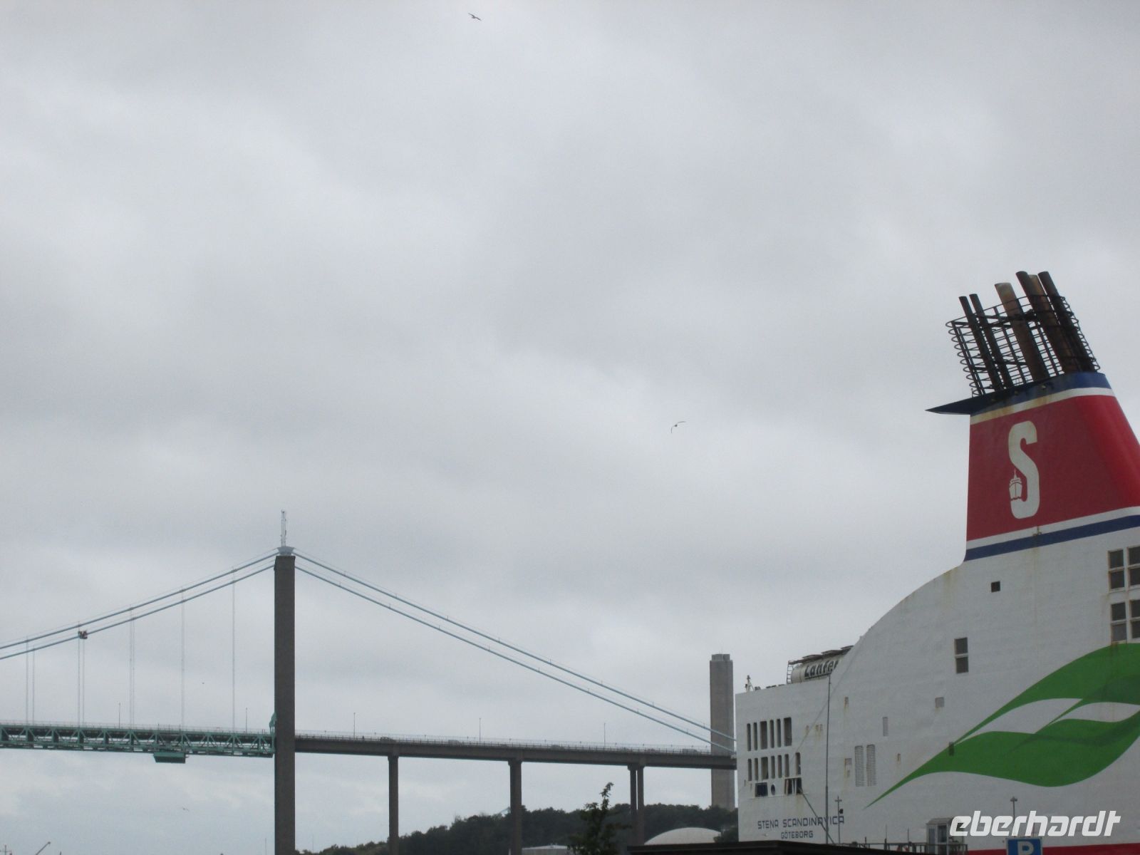 Die Fähre der Stena-Line lag bereits seit den Vormittagsstunden im Hafen von Göteborg. Sie sollte uns über Nacht wieder zurück nach Kiel bringen. Jedoch verspätete sich die Abfahrt wegen "einer notwendigen Trocknung eines Kabelklebers" (so die Aussage eines Crew-Mitglieds) um über 1,5 Stunden.