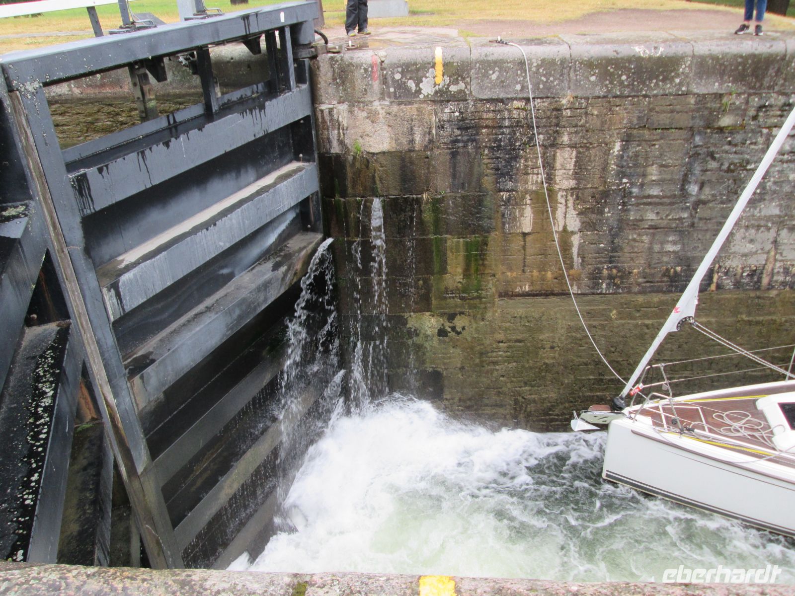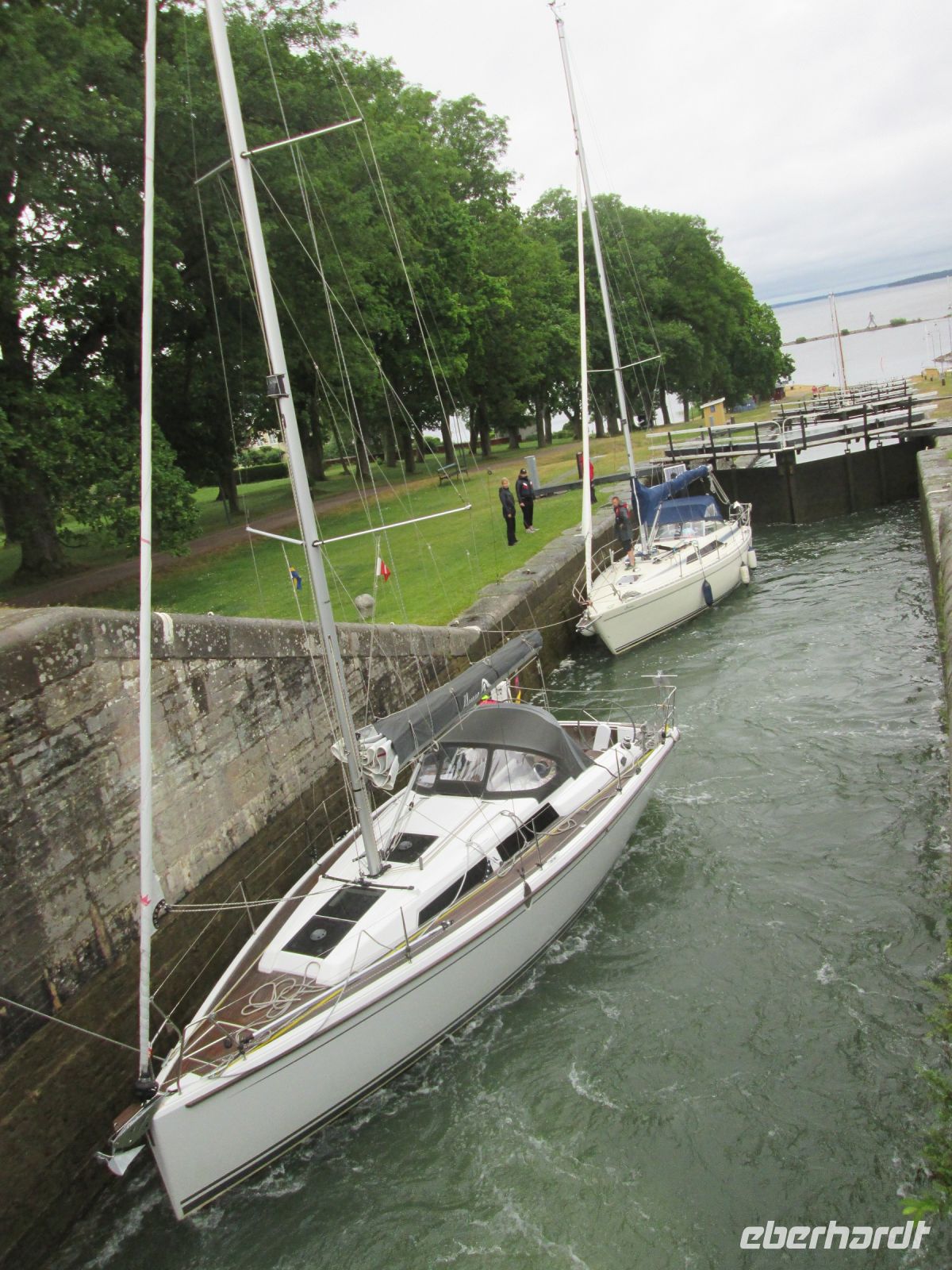Der Götakanal wird das "blaue Band" genannt. Er ist, mit den natürlichen Wasserläufen, 390 km lang und seine Schleusen zur Überwindung des natürlichen Höhenunterschiedes zwischen Göteborg und Stockholm von 91,50 Metern, sind eine Attraktion. Glücklicherweise befanden sich bei unserem zusätzlichen Abstecher 2 Segelboote in den insgesamt 7 Schleusen, so dass die zahlreich gemachten Fotos noch interessanter wurden.