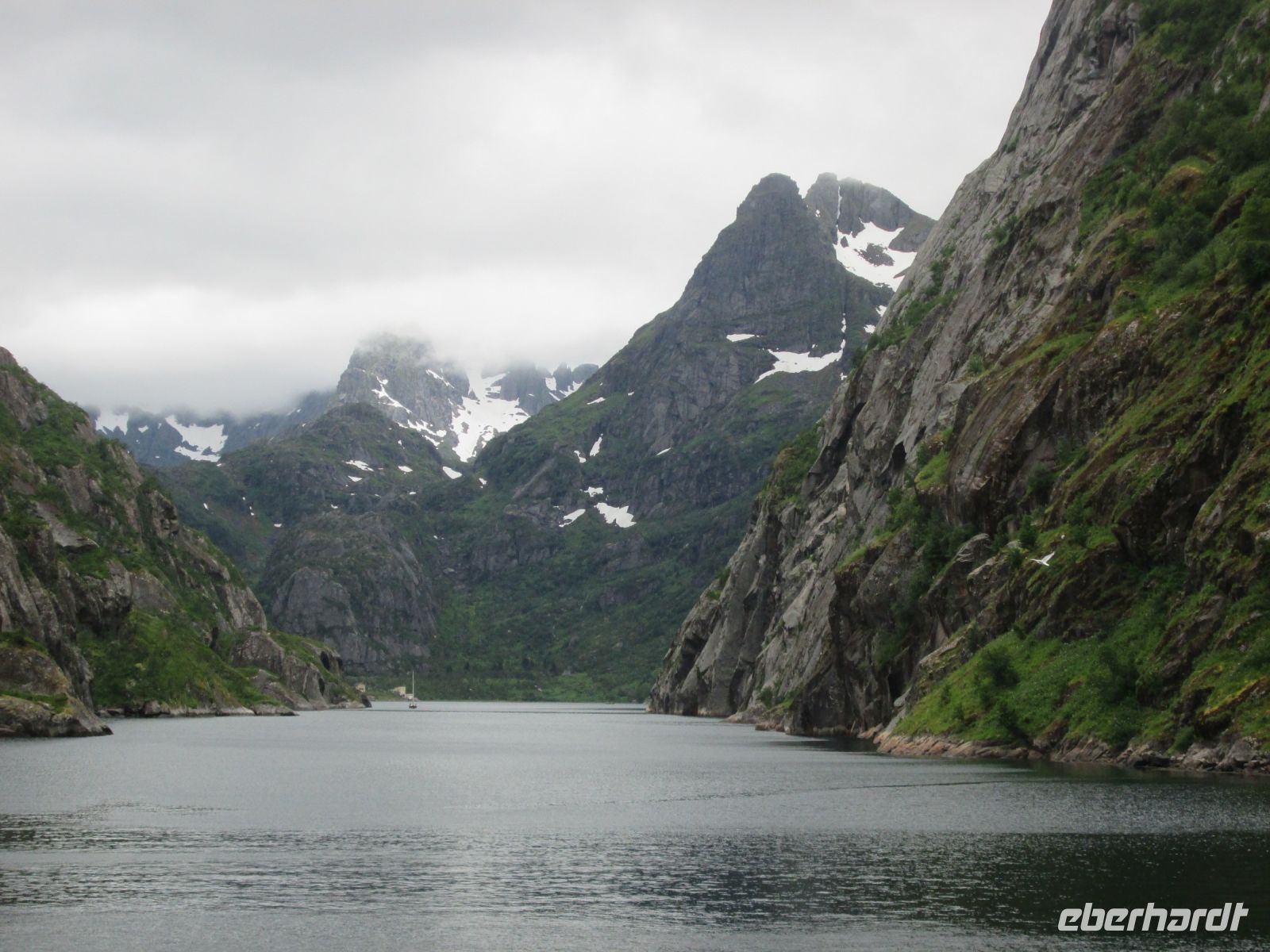 Das 2.Tagesziel war eine Bootsfahrt in den wunderschönen Trollfjord. Es handelt sich dabei um einen 2 Kilometer langen Seitenarm des Raftsundes. Der Fjord misst an seiner engsten Stelle 100 Meter. Somit ist eine Einfahrt mit einem großen Schiff der Hurtigrute spektakulär, weil man fast die Wände der angrenzenden Berge, welche eine Höhe von etwa 1000 Meter haben, mit den Händen berühren könnte.