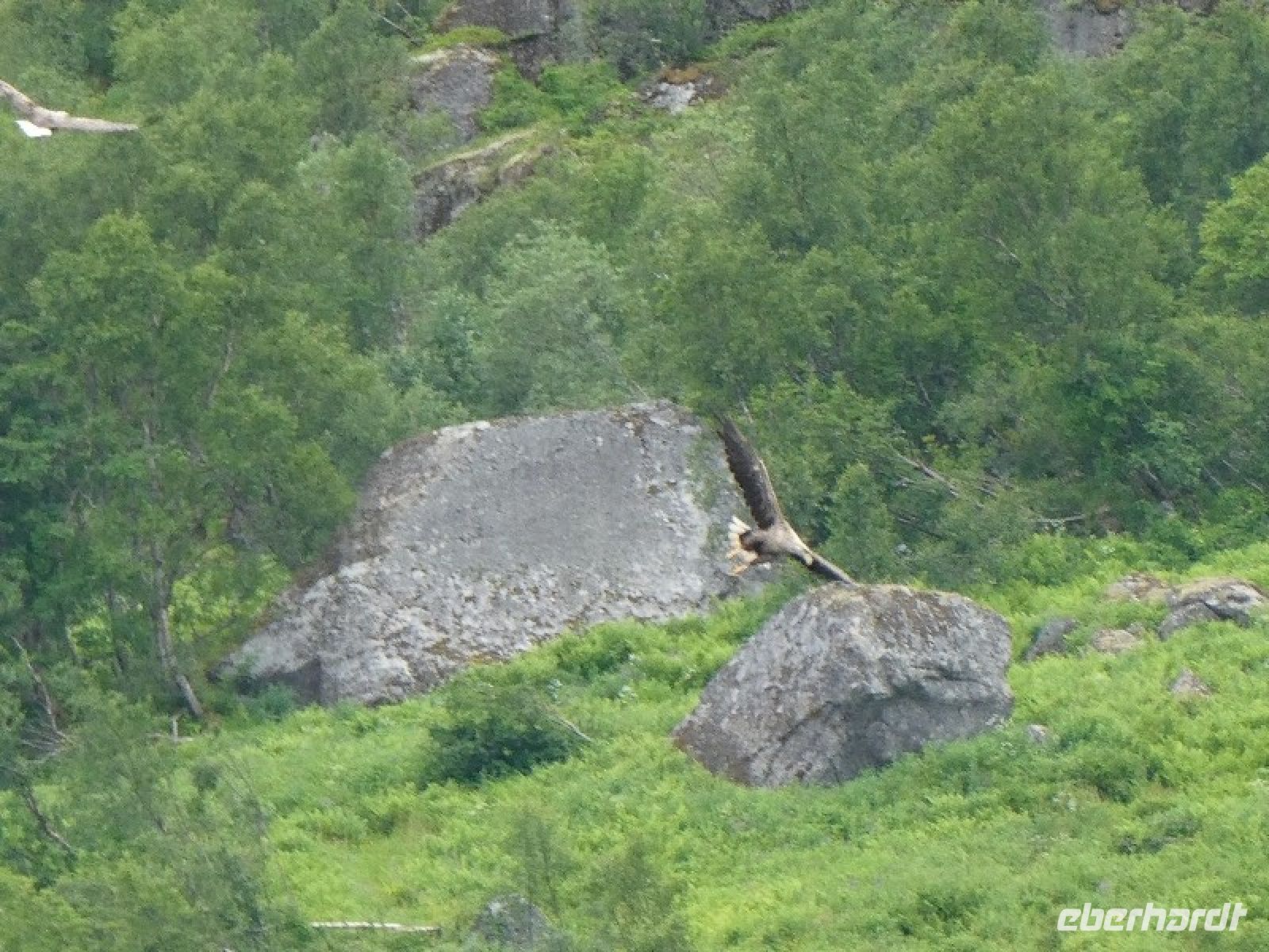 Was bisher mit dem Elch nicht klappte, gelang uns mit Seeadlern. Mehrere dieser majestätischen Tiere konnten wir sehen und sogar auf Fotos festhalten.