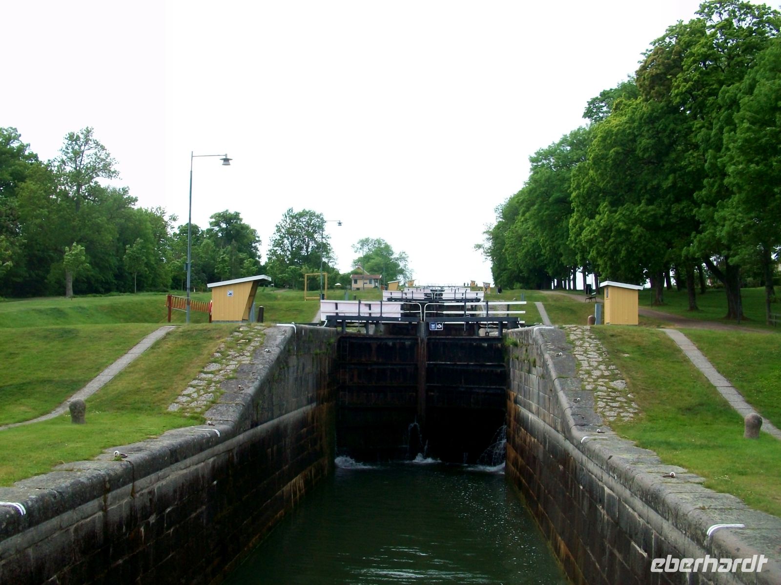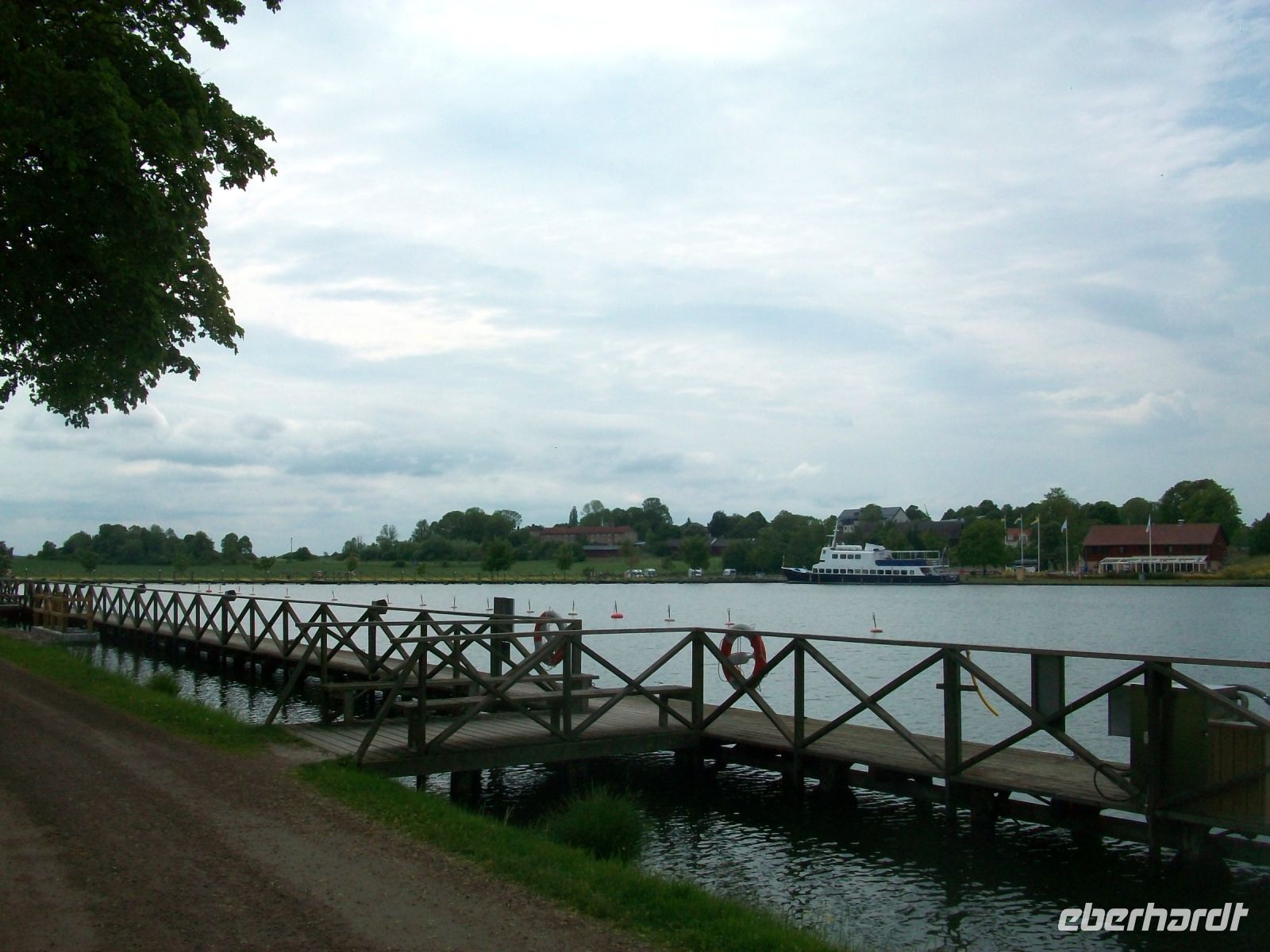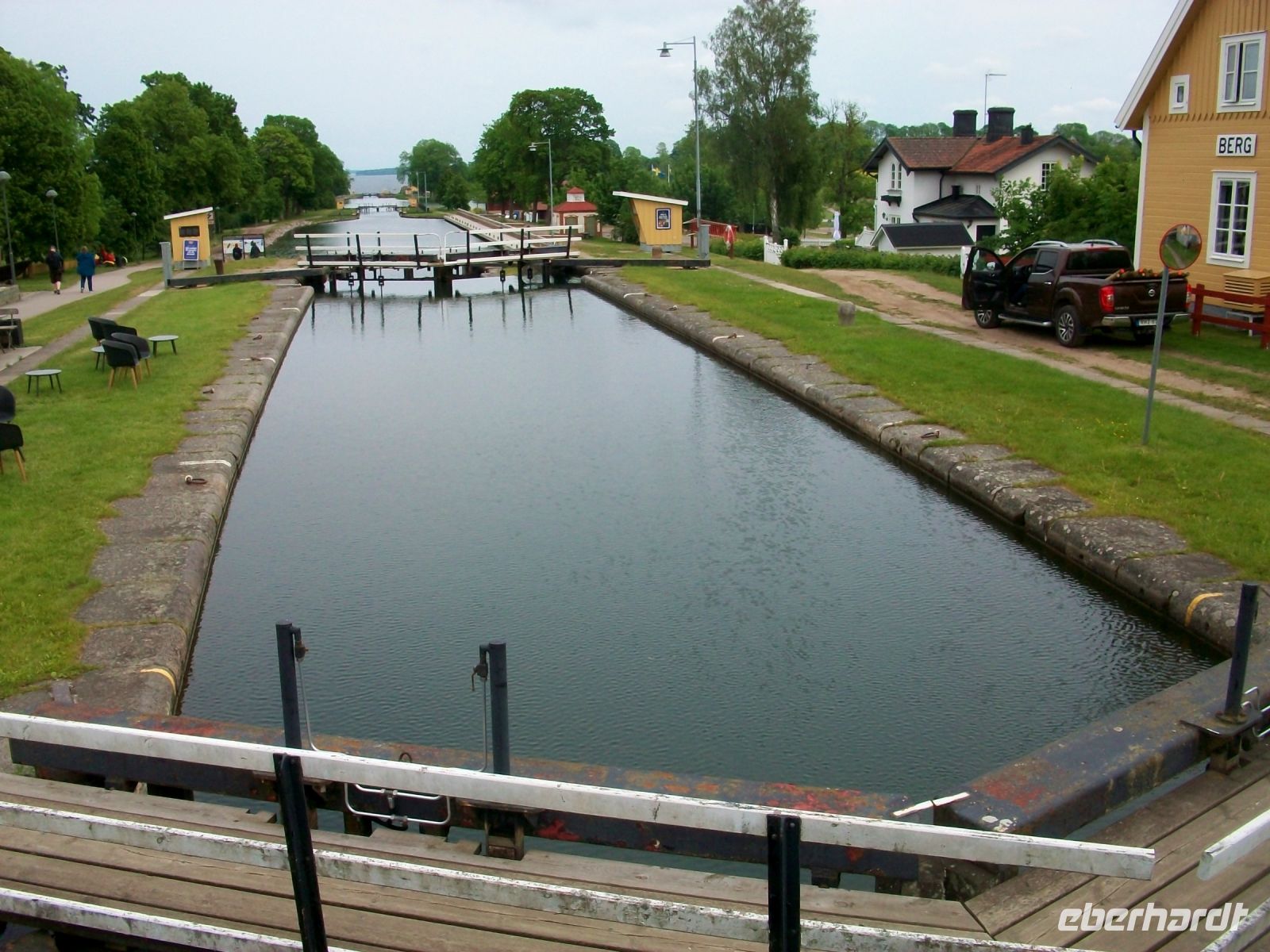 7.6.2022. Ruhig nahm unser Schiff seine Bahn über Nacht und als wir aus dem Reich der Träume entflohen sind, ist die Sonne schon längst aufgegangen. Zunächst ein kleiner Morgenspaziergang über Deck, dann wartet die erste Stärkung des Tages auf uns, das Frühstück. Solcherart gestärkt verlassen wir nach neun die Fähre die in Göteborg festgemacht hat; der Bus steht bereit und bald sind wir dem Trubel der Hafenstadt entflohen und in der grünen Natur Südschwedens unterwegs. Wir gelangen an die große Wasserfläche des Vättarnsees und genießen eine romantische Fahrt entlang des Ufers. Diese Landschaft ist reich an fruchtbaren Böden und als wir die Europastraße verlassen, sind wir zwischen den Feldern unterwegs. Ein erster großer Höhepunkt zeigt sich uns im kleinen Ort Rök. Hier haben uns die Wikinger einen Stein in ihrer Schriftsprache, den Runen, hinterlassen. Im beschaulichen Ort legen wir unsere Mittgaspause ein um am Nachmittag unsere Tour wieder aufzunehmen. Beim Ort Berg kreuzen wir den Göta - Kanal; eine wichtige Wasserstraße die bei der Industrialisierung Schwedens eine große Rolle gespielt hat. Besonders sehenswert ist hier die sogenannte Schleusentreppe welche die Schiffe um rund 40 Höhenmeter nach oben oder unten bringt. Diese Anlage ist nicht nur für Technikinteressierte sehenswert.