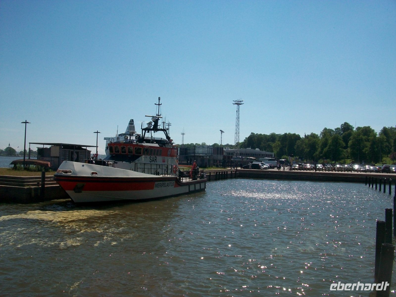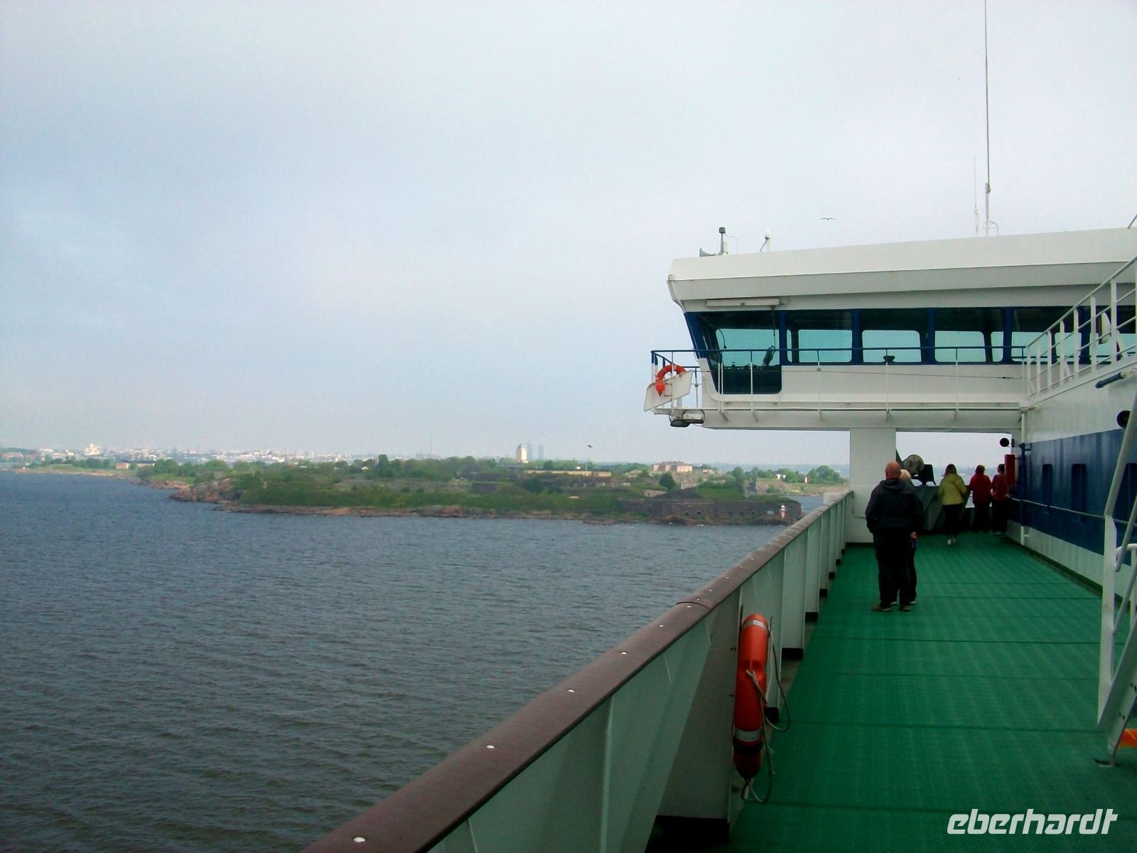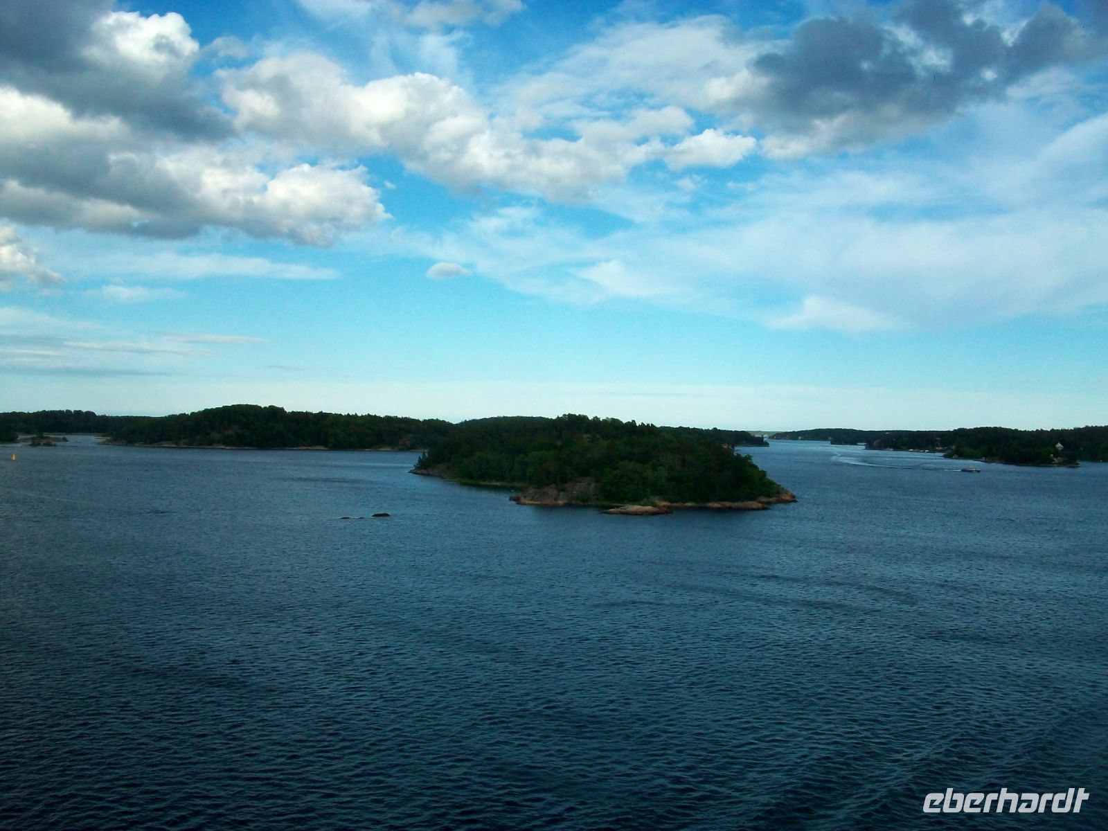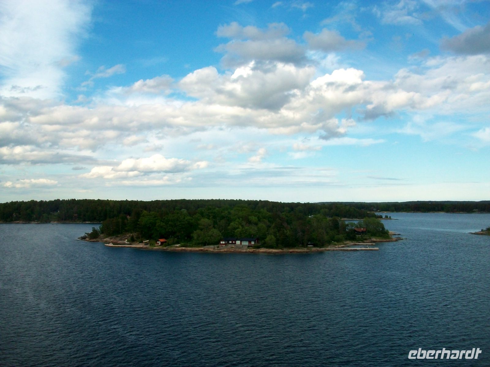 Am Nachmittag aber müssen wir der Innenstadt Lebwohl sagen; mit dem Bus gelangen wir zum großen Fährschiff welches uns über Nacht nach Helsinki bringen wird. Über die Gangway betreten wir die Fähre die fast ein Kreuzfahrschiff ist. Als wir uns zum Diner begeben, legt die „Serenade“ ab, und während wir es uns schmecken lassen, ziehen die ersten Schären an den Fenstern vorbei, jene rundgeschliffenen Granitfelsen die teilweise mit kleinen Häusern bebaut wurden.
