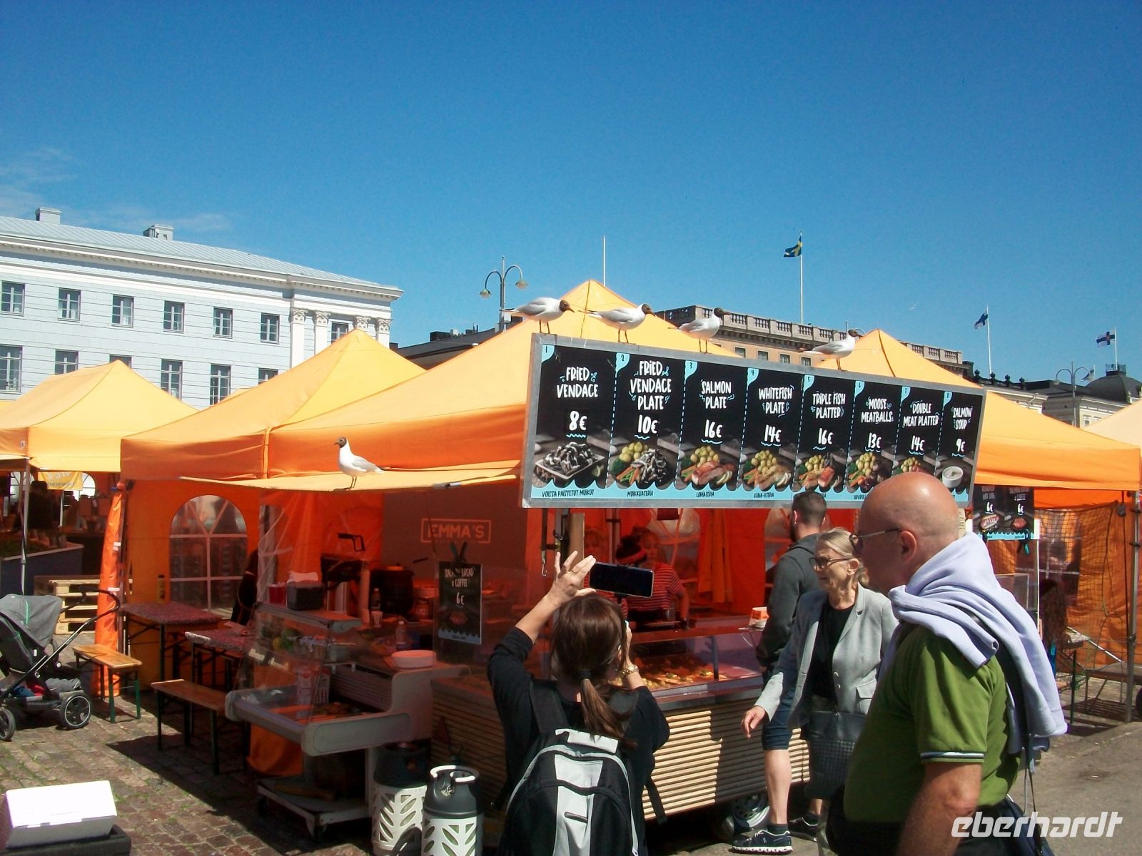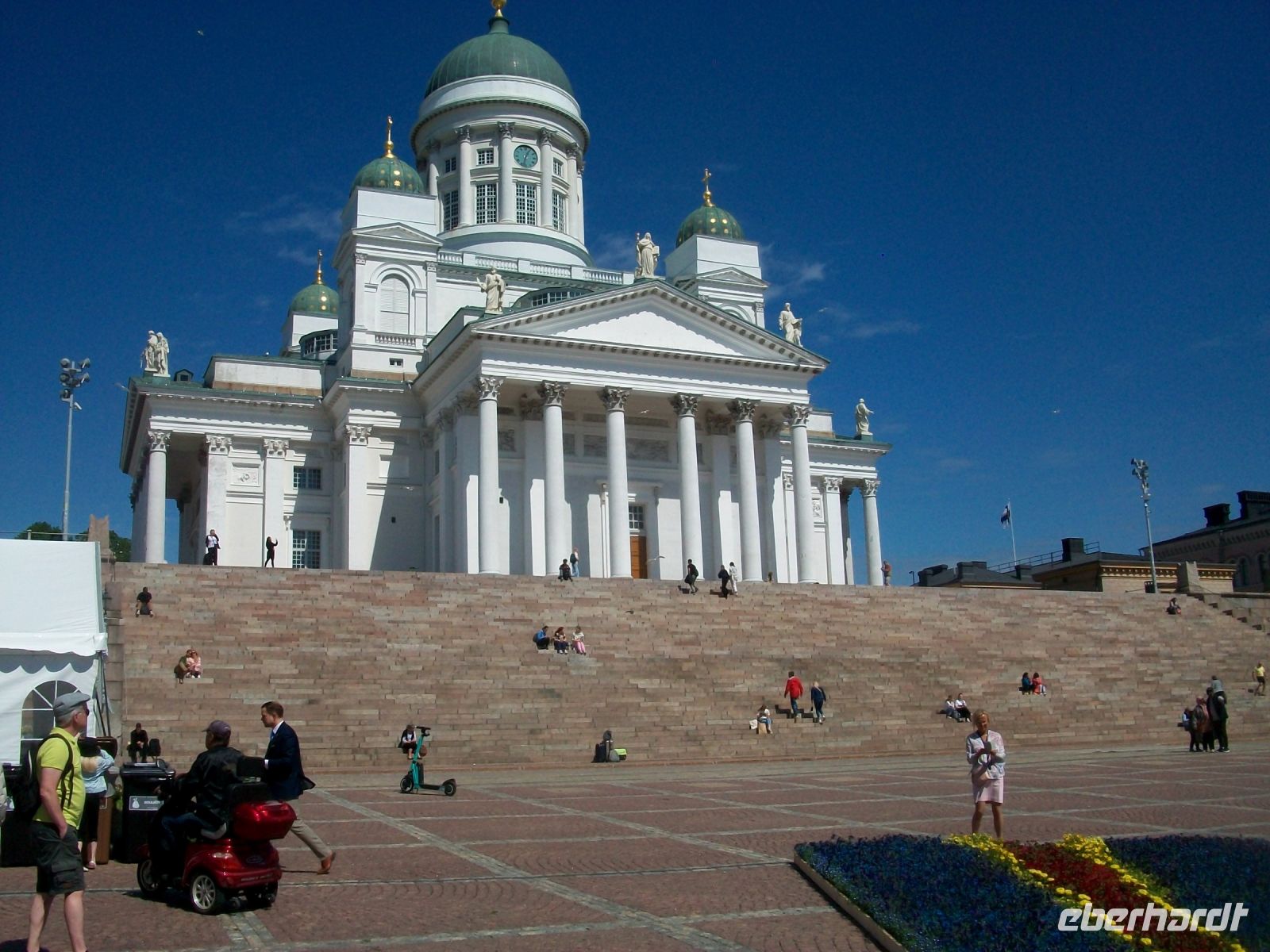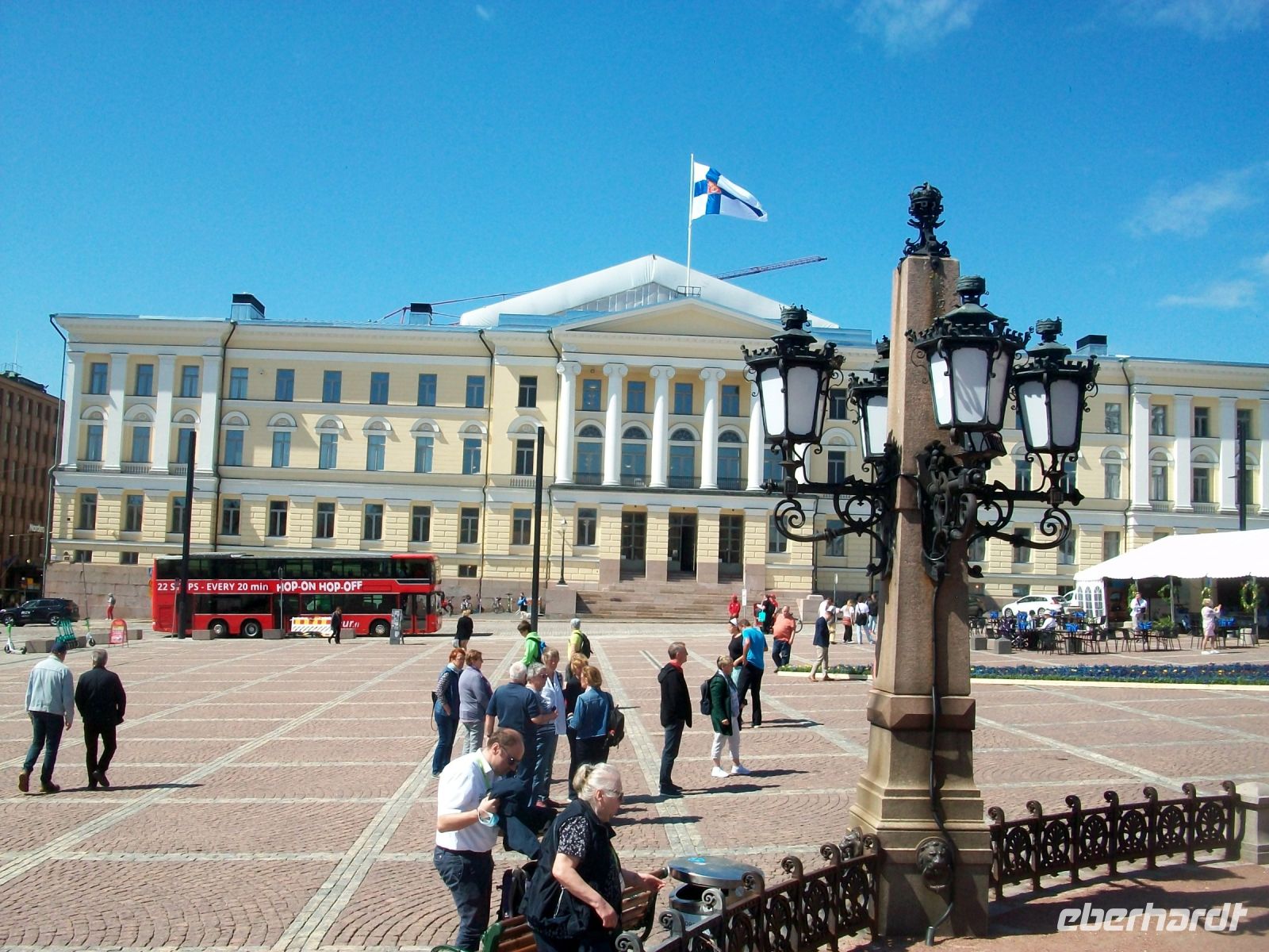 Pünktlich gegen halb elf legen wir in Helsinki an und eine halbe Stunde später sind wir schon mit unserer Stadtführerin in der finnischen Metropole unterwegs. Kreuz und quer geht es durch die Stadt; einen Stopp legen wir am Sibelius - Monument ein, es wurde zu Ehren dieses großen Komponisten angelegt. Die Runde endet am Hafen; nun verbleibt bei schönem Wetter etwas Zeit für eigene Erkundungen und einem Imbiss auf dem bekannten Fischmarkt. Doch kurz vor halb drei müssen wir uns aufmachen; bald haben wir den Trubel der Großstadt hinter uns gelassen und sind über Land unterwegs. Schon heute können wir die gesunde Natur bewundern die uns die nächsten Tage begleiten wird: Wälder und Seen in einem harmonischen Wechsel.