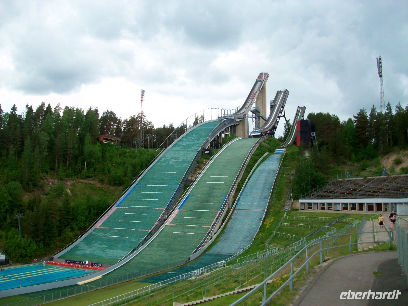 Einen Abstecher machen wir noch zu den Skisprungschanzen von Lahti und staunen über die interessanten Konstruktionen. Nun ist aber die Zeit schon vorangeschritten; wir machen uns zu unsere letzten Tagesetappe auf und gelangen nach Laukaa zu unserem Hotel. Hier werden wir nun von der finnischen Plage erwartet: Ein hungriger Schwarm Mücken umschwirrt uns, wir lassen daher schnell das Spray zischen…