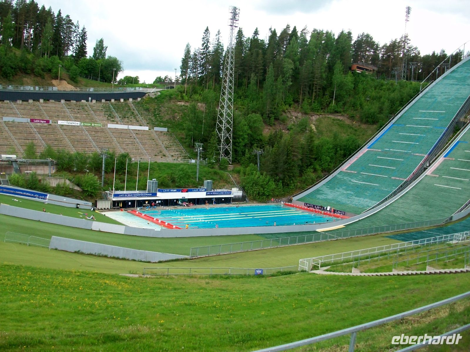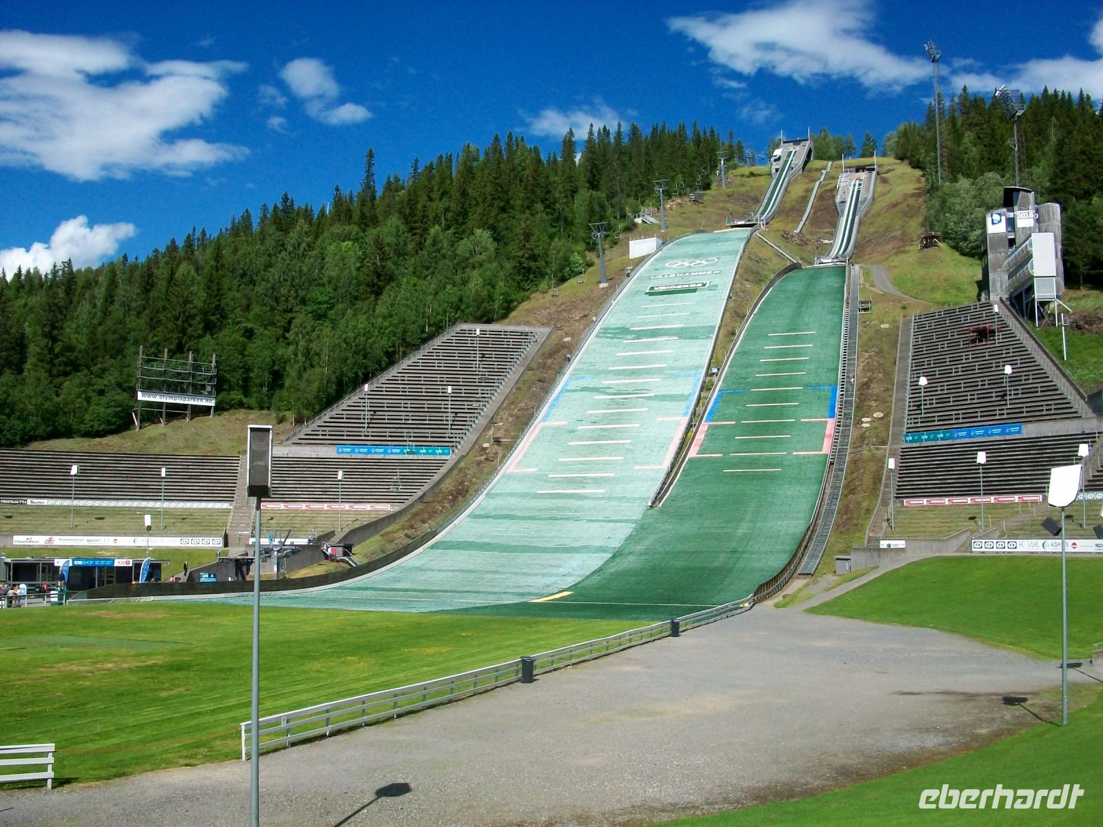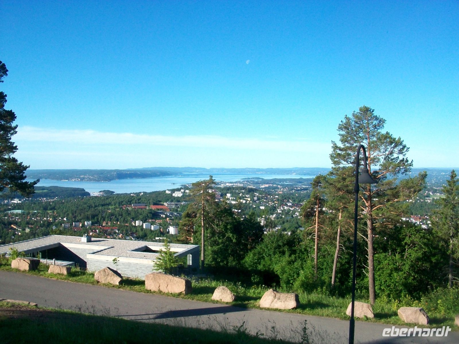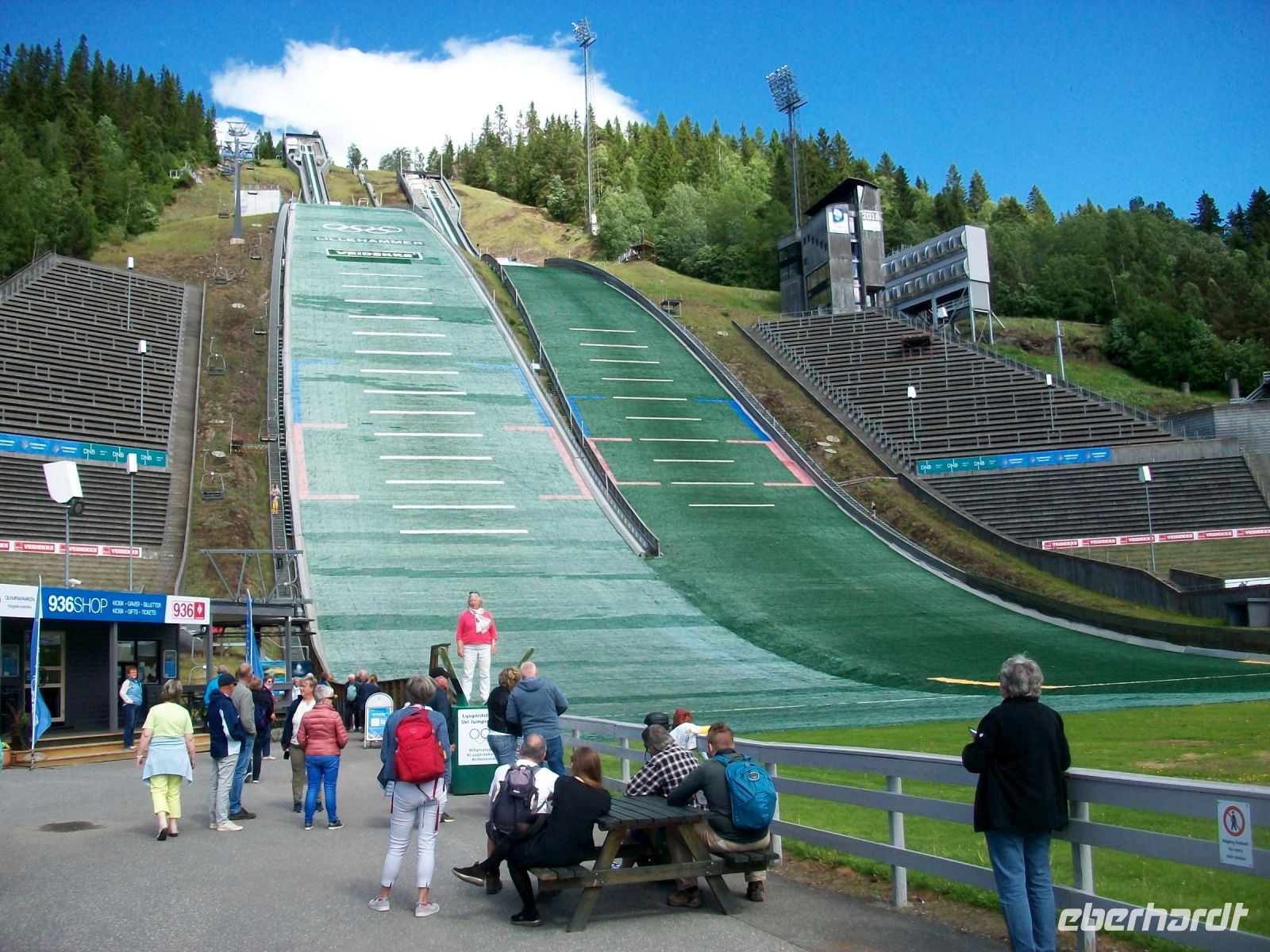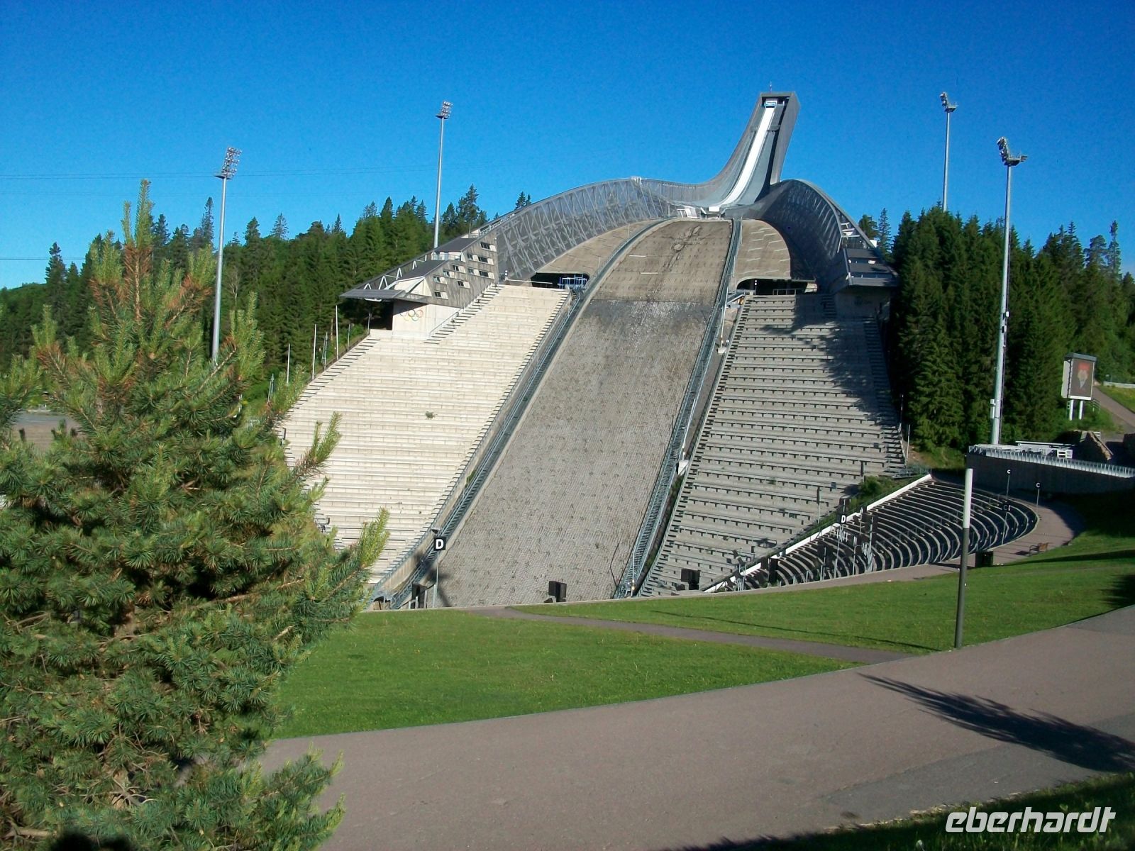 Aber bis Oslo müssen wir trotzdem noch einige Kilometer zurücklegen; entlang des größten Sees Norwegens, dem Mjøsa - See, gelangen wir bald in den Großraum von Oslo, schwenken kurz vorher aber ab um zum Holmenkollen aufzusteigen. Hier steht unser Hotel und an diesem Ort beschließen wir den Tag mit noch einem Spaziergang zur futuristischen Sprungschanze.