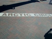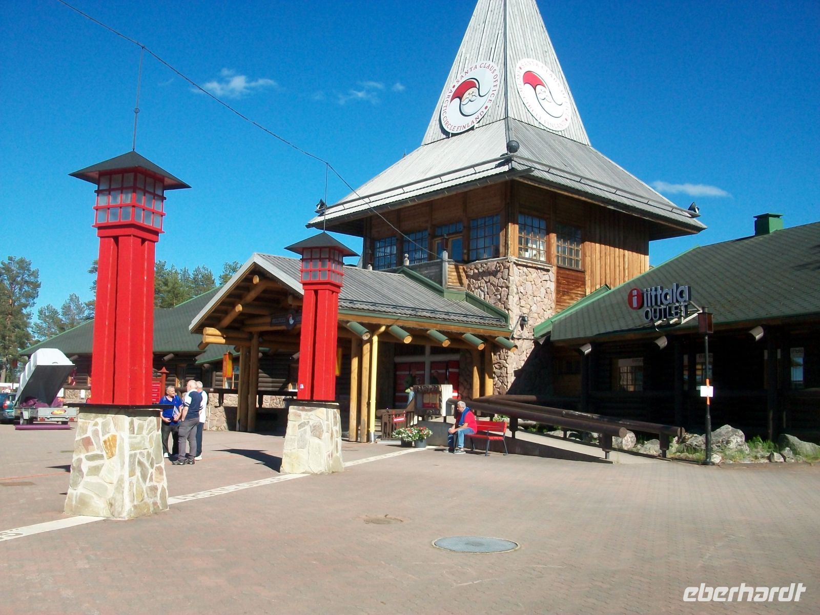 10.6.2022. Am heutigen und auch den nächsten Tagen stehen viele Kilometer auf dem Programm. Da heißt es Sitzfleisch bewahren. Schon frühzeitig, um acht, starten wir; unser Kurs liegt an: nach Norden. Schnell sind wir wieder in die finnischen Wälder abgetaucht; eine intakte und üppig grünende Natur begleitet unsere Fahrt. Ein kurzer Stopp unterwegs, dann gelangen wir nach weiteren zwei Stunden Fahrt in den bekannte Ort Oulu, hier verbringen wir unsere Mittagspause. Dann geht es entlang des Bottnischen Meerbusens weiter gen Norden. Unmerklich nähern wir uns einer besonderen Linie, dem Polarkreis. Wir lassen den Ort Rovaniemi rechts liegen und bald kommt uns von Weitem das Weihnachtsmanndorf entgegen. Quer über den Weg ist eine weiße Linie angebracht, genau hier verläuft der Arctic Circle, jener besondere geografische Punkt hinter dem in einem gewissen Zeitraum die Sonne nicht mehr untergeht. Ein bewusster Schritt über die Linie, später ein Glas Sekt und – wir haben die Polarkreistaufe bestanden.