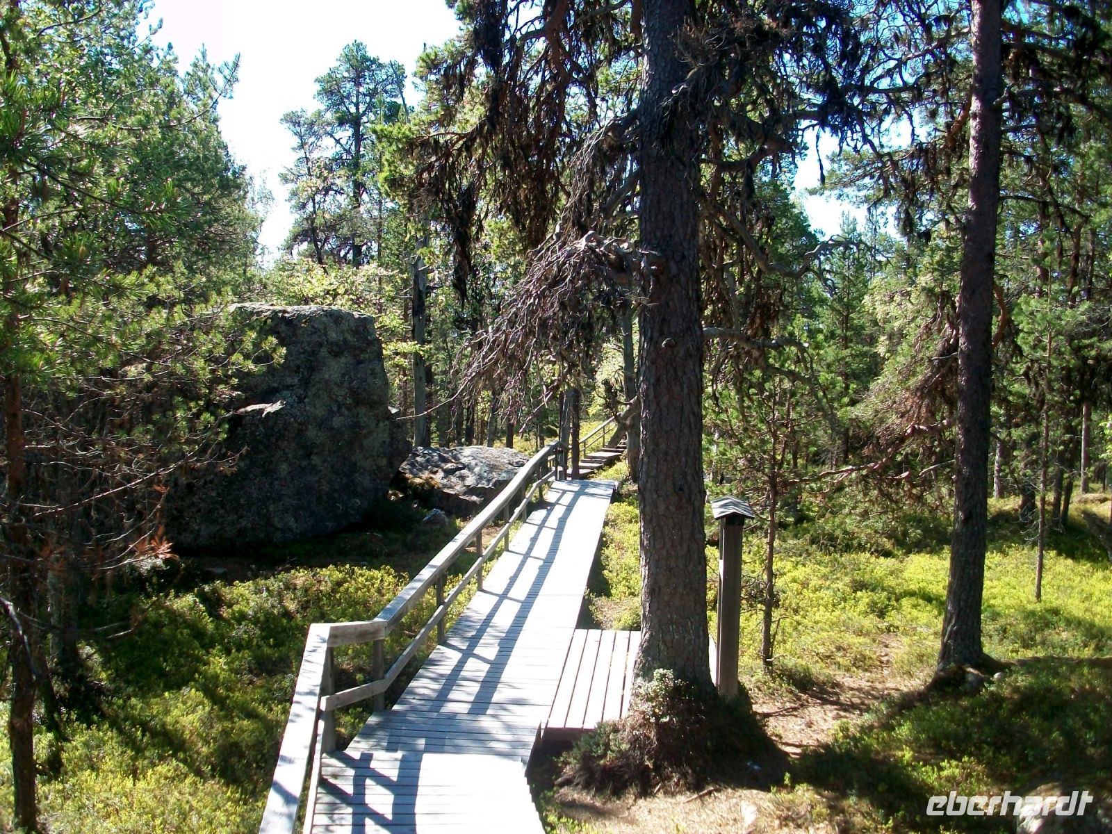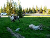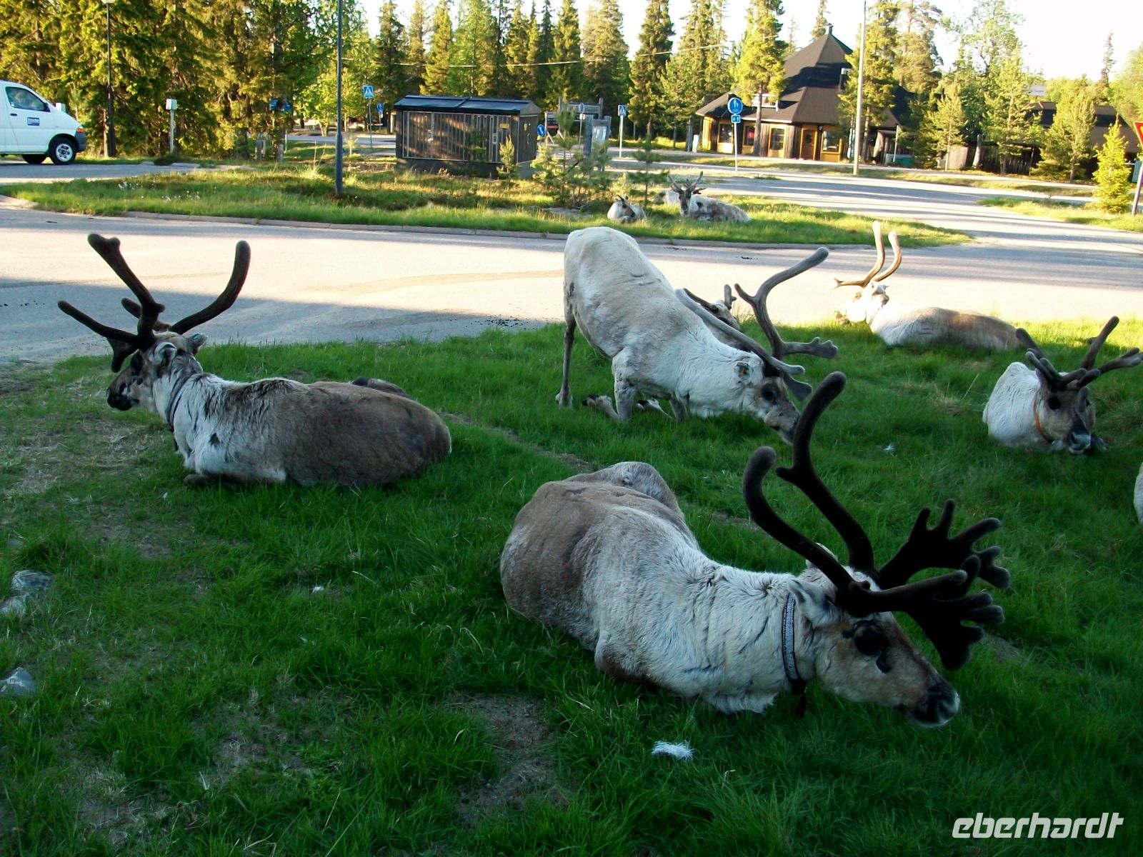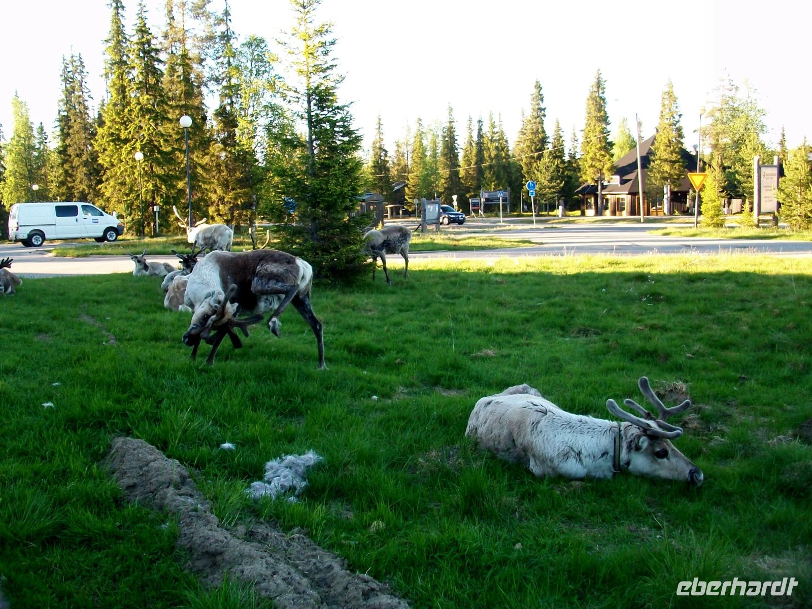 Doch nun müssen wir uns aufmachen, uns steht noch ein Stück Weg bevor. Aber auch das schaffen wir und bei strahlendem Sonnenschein gelangen wir in den Luosto - Nationalpark und zu unserem Hotel inmitten von Natur. Weit und breit ist nichts von Zivilisation zu sehen nur Mücken und nach dem Abendessen eine Herde Rentiere welche uns besuchen kommt.