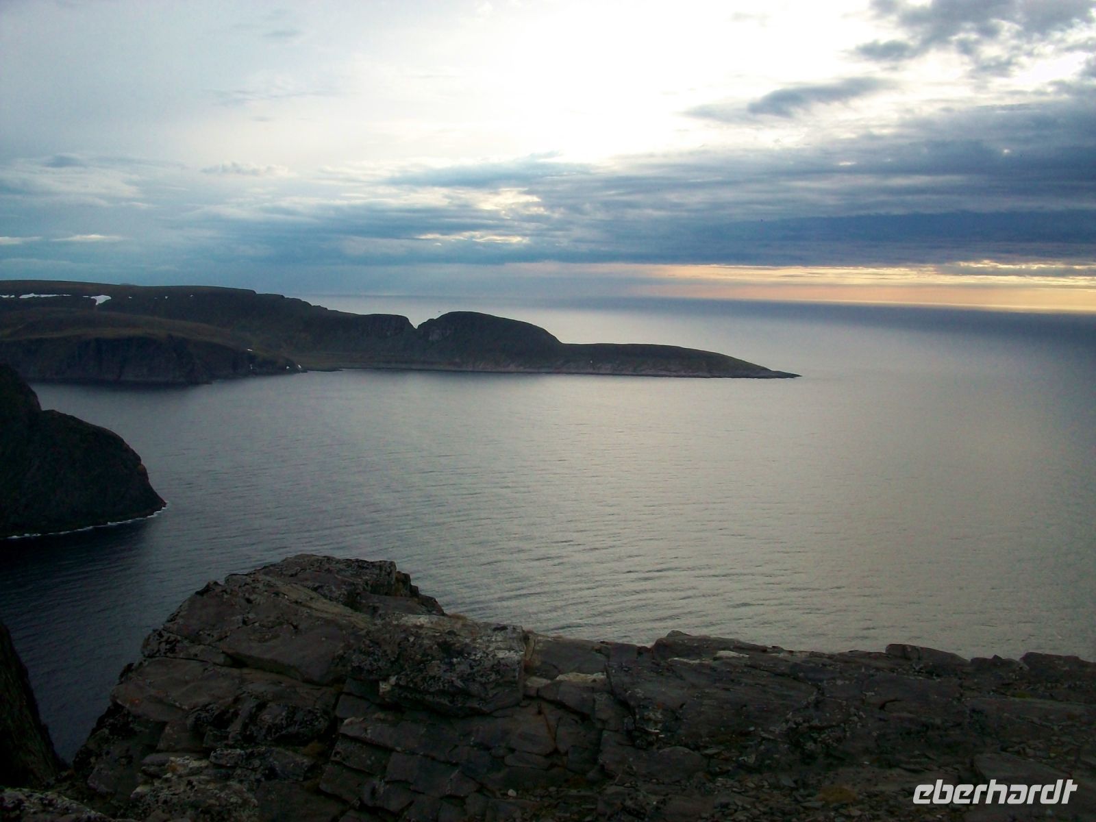 Noch ist die Vegetation üppig, auch als wir am Inari - See eine Bärenhöhle besuchen. Bald schwenken wir aber links ab um einem weiteren Land entgegen zu fahren: Norwegen. Nun wird es karg; der hohe Baumbewuchs verschwindet mehr und mehr und macht der Tundra Platz. Nach der Grenze legen wir eine Mittagspause in Karasjok ein, es ist die heimliche Hauptstadt der Samen. Weiter und weiter geht es nun immer abwärts; wir gelangen zu den Fjorden, sehen die baumlose subarktische Landschaft und beenden vorerst in Honningsvåg zum Check Inn in unser Hotel unseren Drang in Richtung Norden. Doch eine halbe Stunde später haben wir in einem örtlichen Bus Platz genommen und voller Erwartung legen wir die letzte Etappe bis zum Nordkap zurück. Leider hat sich nun die Sonne doch rar gemacht. Zunächst lassen wir uns aber im schönen Restaurant der Nordkaphalle das Abendessen gut schmecken. Immer wieder geht der Blick zum Firmament; die Sonne bleibt versteckt und wirft nur einen diffusen Schein auf das unendliche Nordmeer, schade. Schade auch, dass immer mehr Wolken aufziehen, Wind heult, Regen peitscht über den Platz - nein, mit Petrus ist heute kein Geschäft mehr zu machen…