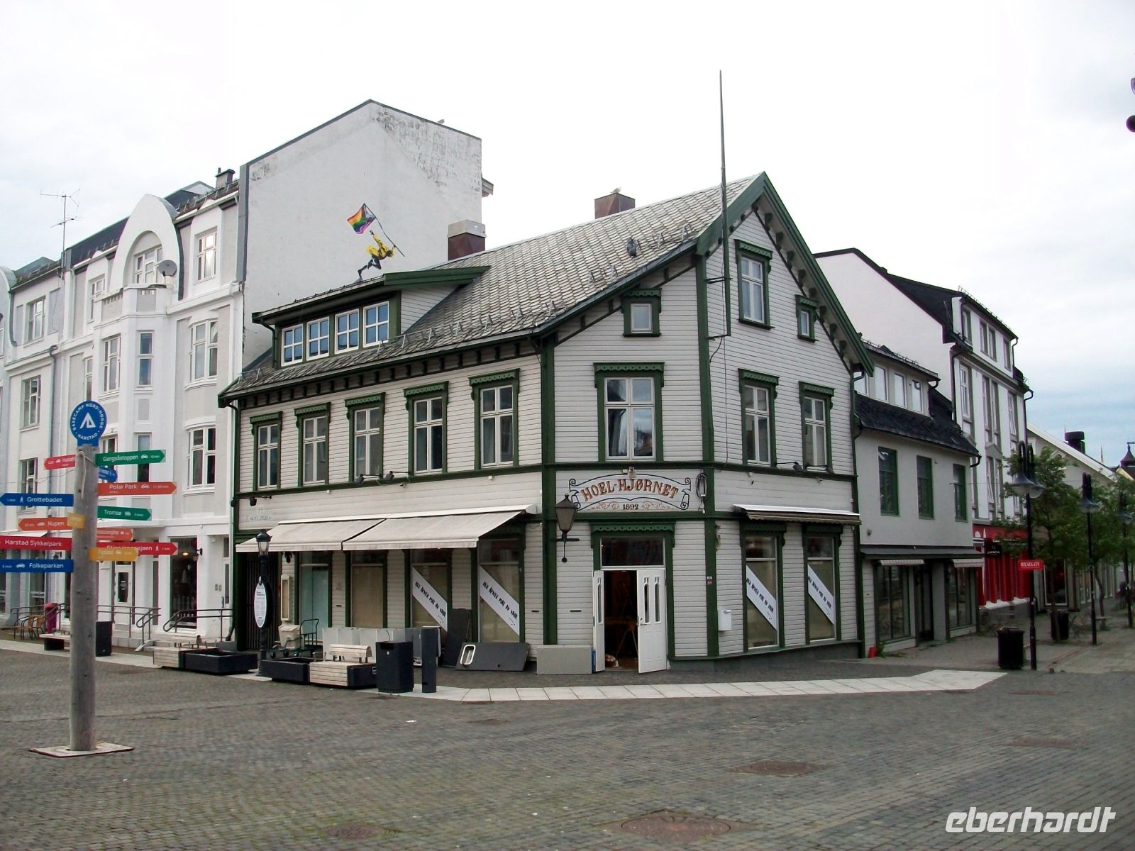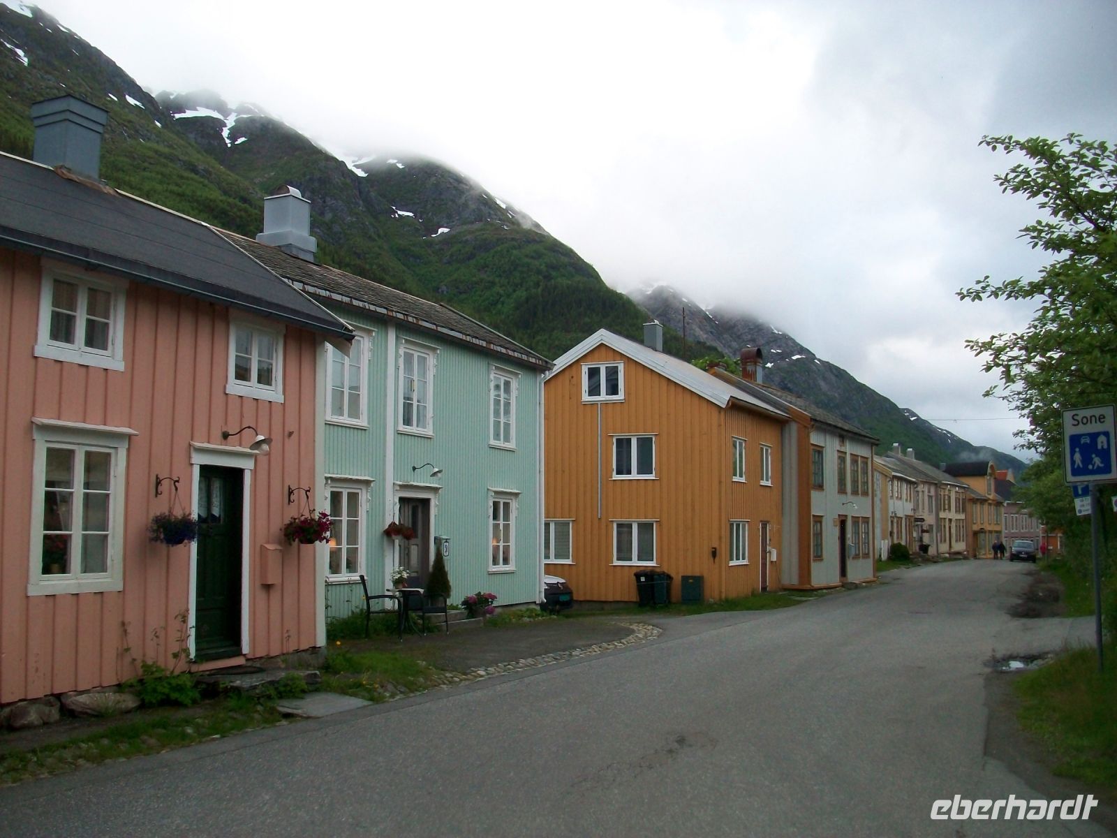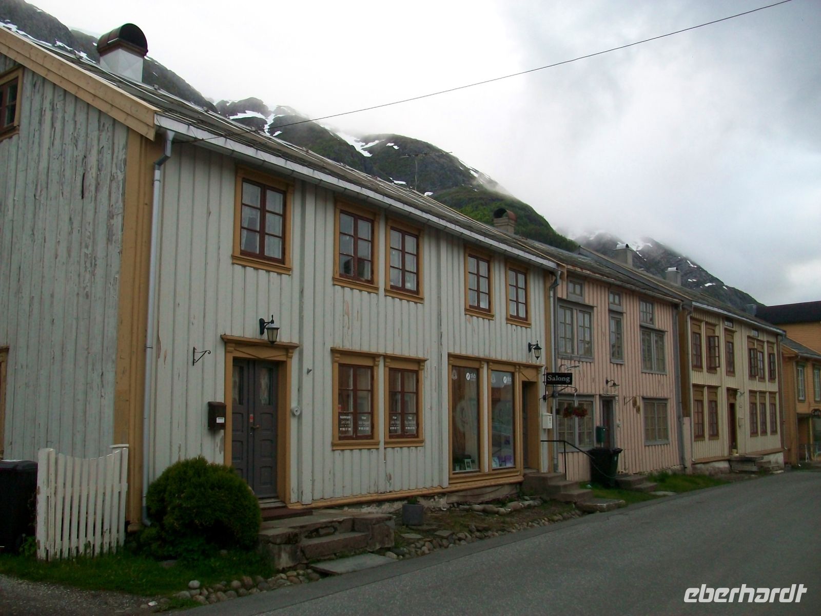 Noch ein wenig Geduld, etliche Kilometer liegen nun noch vor uns, aber rechtzeitig vor dem Abendessen gelangen wir zu unserem Ziel: Mosjøen. Eigentlich auch ein Industrieort zeigt er sich aber in der Nähe unseres Hotels mit seinen pittoresk - bunten Holzhäusern durchaus romantisch; nach dem Essen können wir diese besonderen Impressionen genießen.