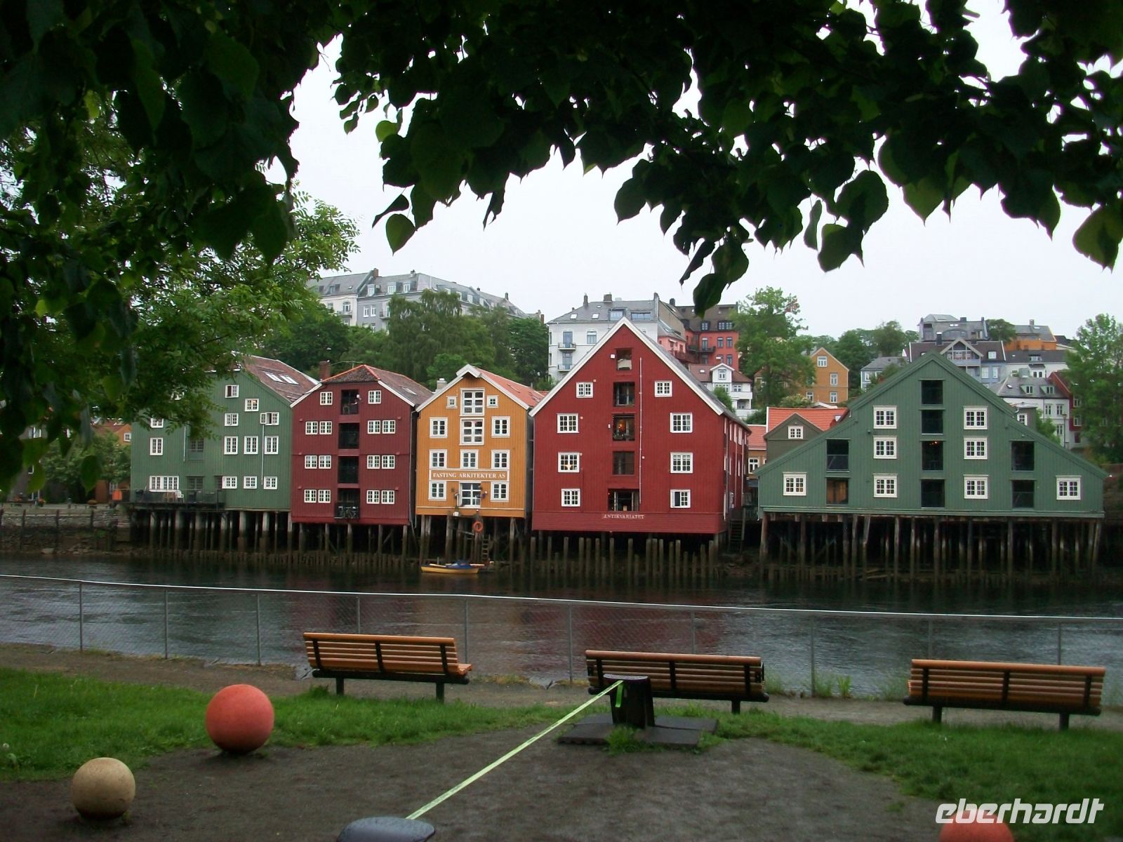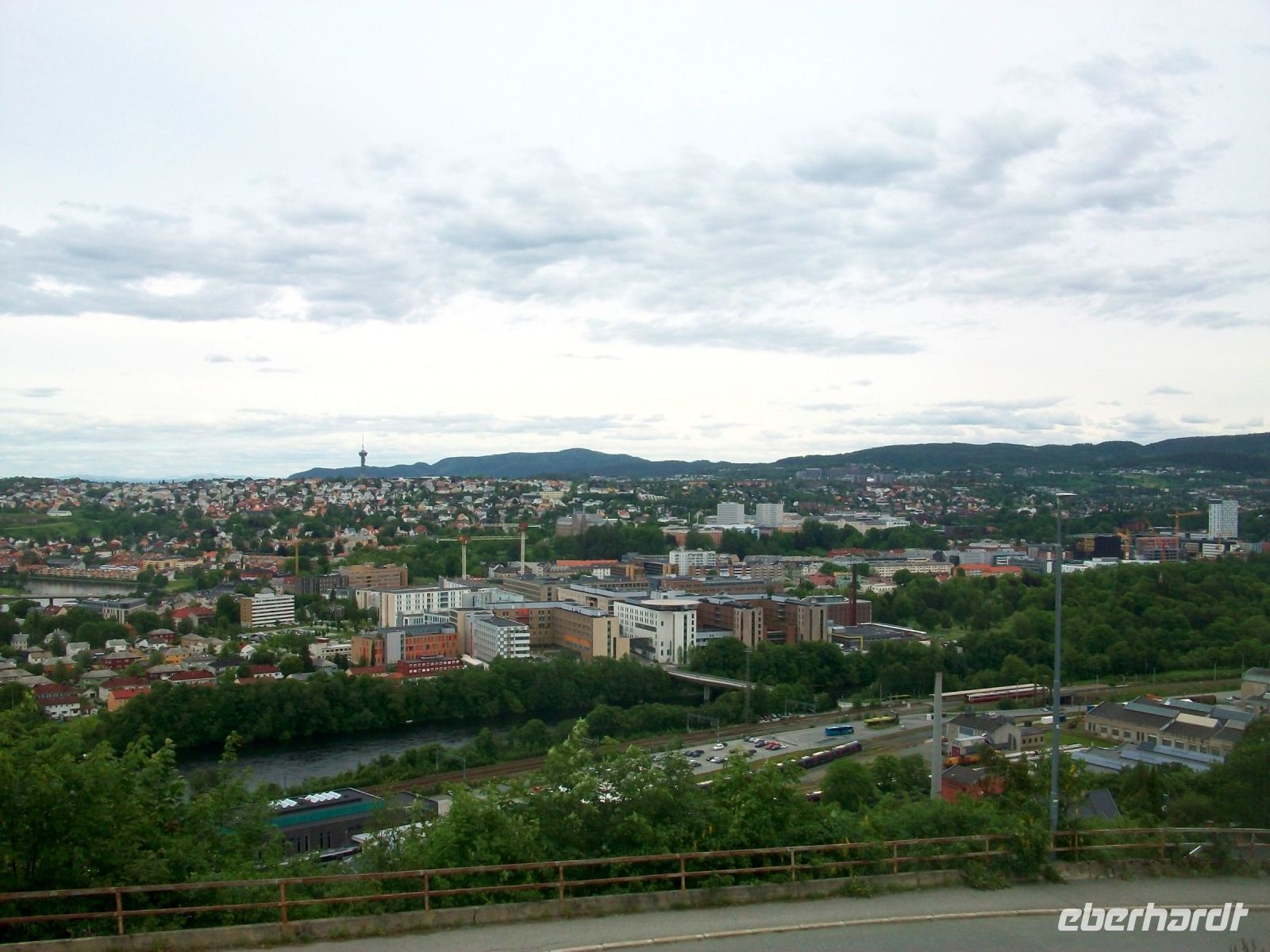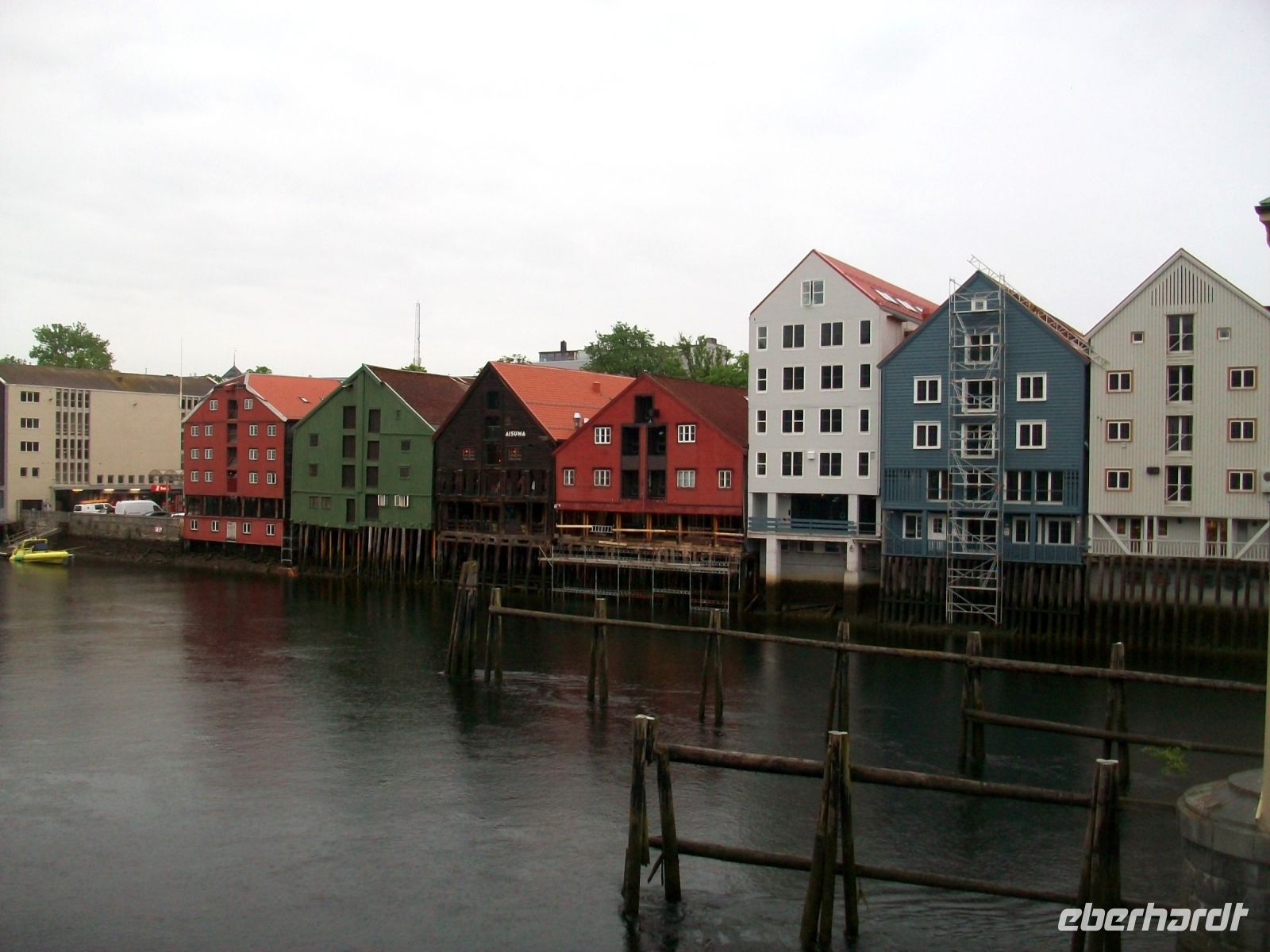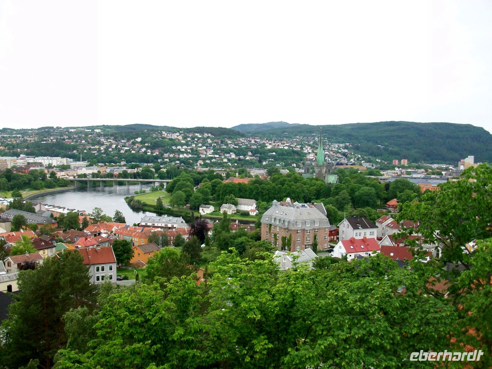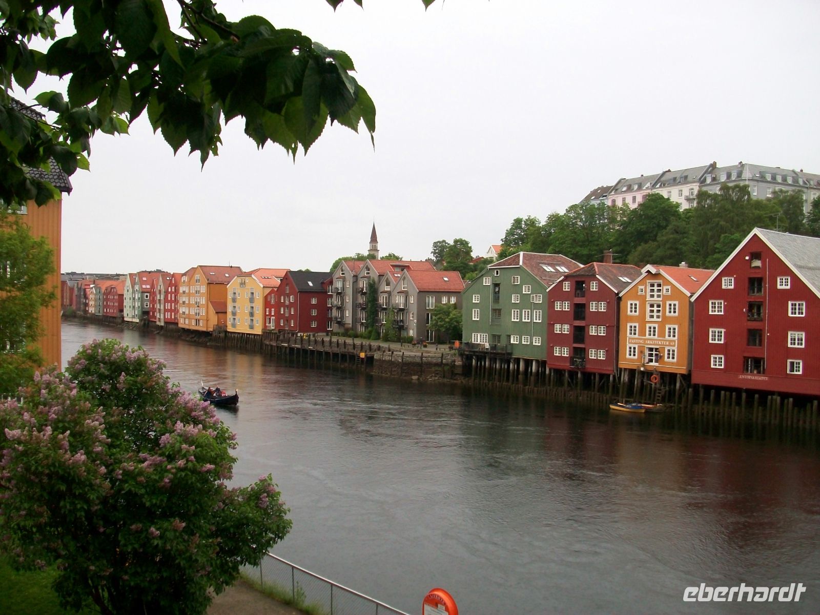 17.6.2022. Auch heute müssen wir früh starten; bis zu unserem Ziel gilt es erneut einige Kilometer zurückzulegen. Nachdem wir vom reizvollen Ort gestartet sind, zeigt sich uns das nun schon gewohnte Bild der Natur Norwegens. Da wir nun aus dem nördlichen Teil hinausgelangt sind, nimmt auch die Vegetation zu und zeigt sich fast wie in den gemäßigten Zonen; kein Wunder, nimmt doch hier der Einfluss des Golfstromes zu. Bald öffnet sich auf der rechten Seite der Blick auf die Wasserfläche eines weiteren Fjords. Er ist nach der Stadt die wir nun besuchen möchten benannt: Trondheim. Nun wird auch der Verkehr dichter, aber wir gelangen dennoch pünktlich zum vereinbarten Treffpunkt. Bald lässt sich unsere Stadtführerin sehen und mit ihr erkunden wir nun diese einmalige Stadt. Trondheim ist bekannt für die am Wasser und auf Holzpfählen stehenden bunten Holzhäuser. Malerischer kann sich ein Stadtbild kaum zeigen; bald tauchen wir ab in die Moderne und steigen an zur Höhe über der Stadt mit ihrem Aussichtspunkt. Von hier oben haben wir einen grandiosen Blick hinunter zur Stadt und zum Fjord. Weit kann das Auge schweifen, bis zum Horizont wo sich Himmel und Wasser scheinbar treffen.