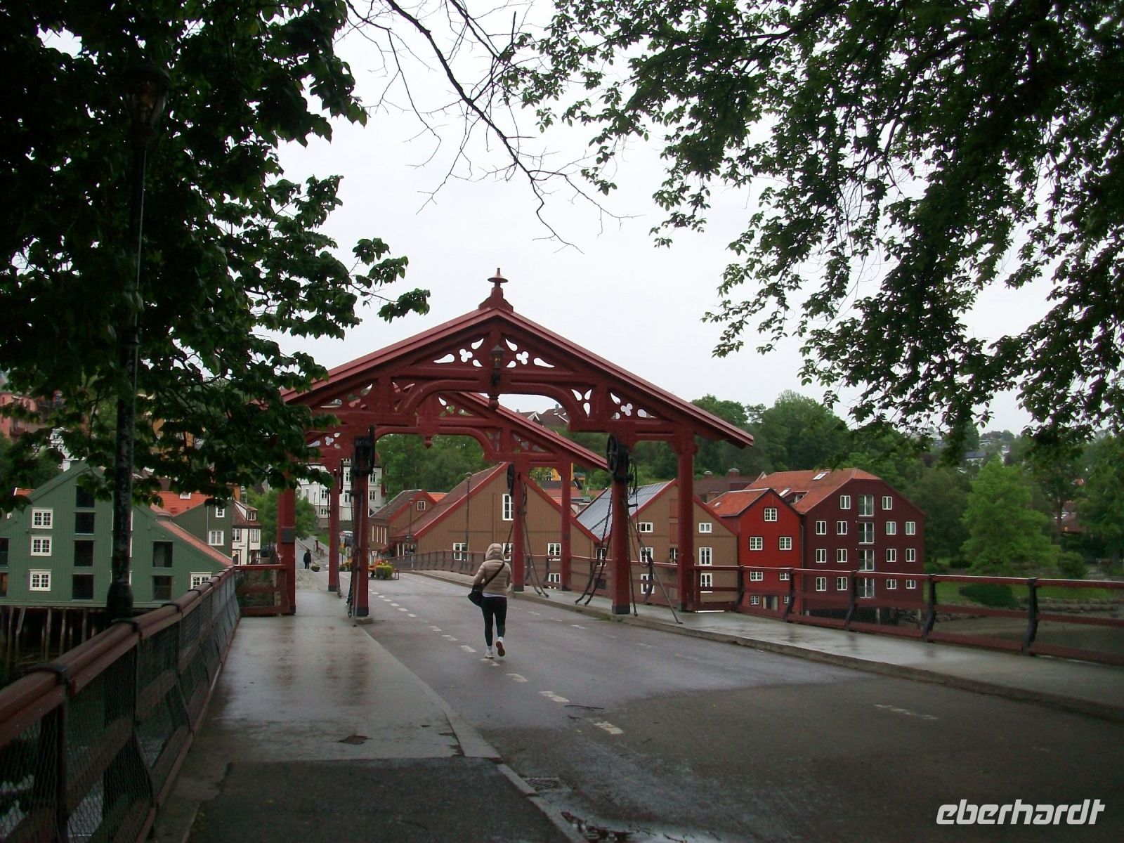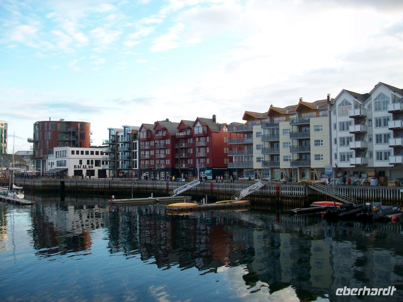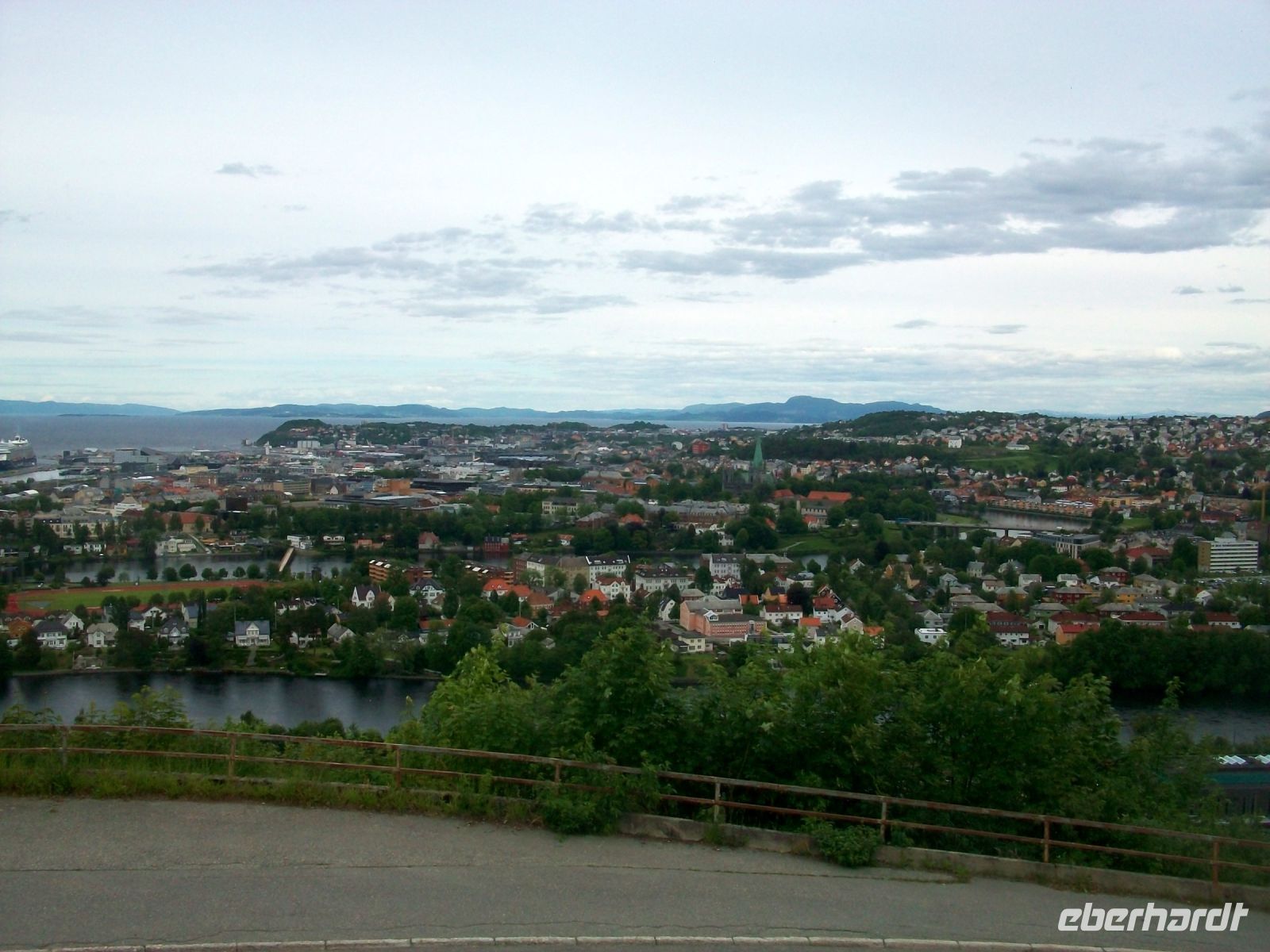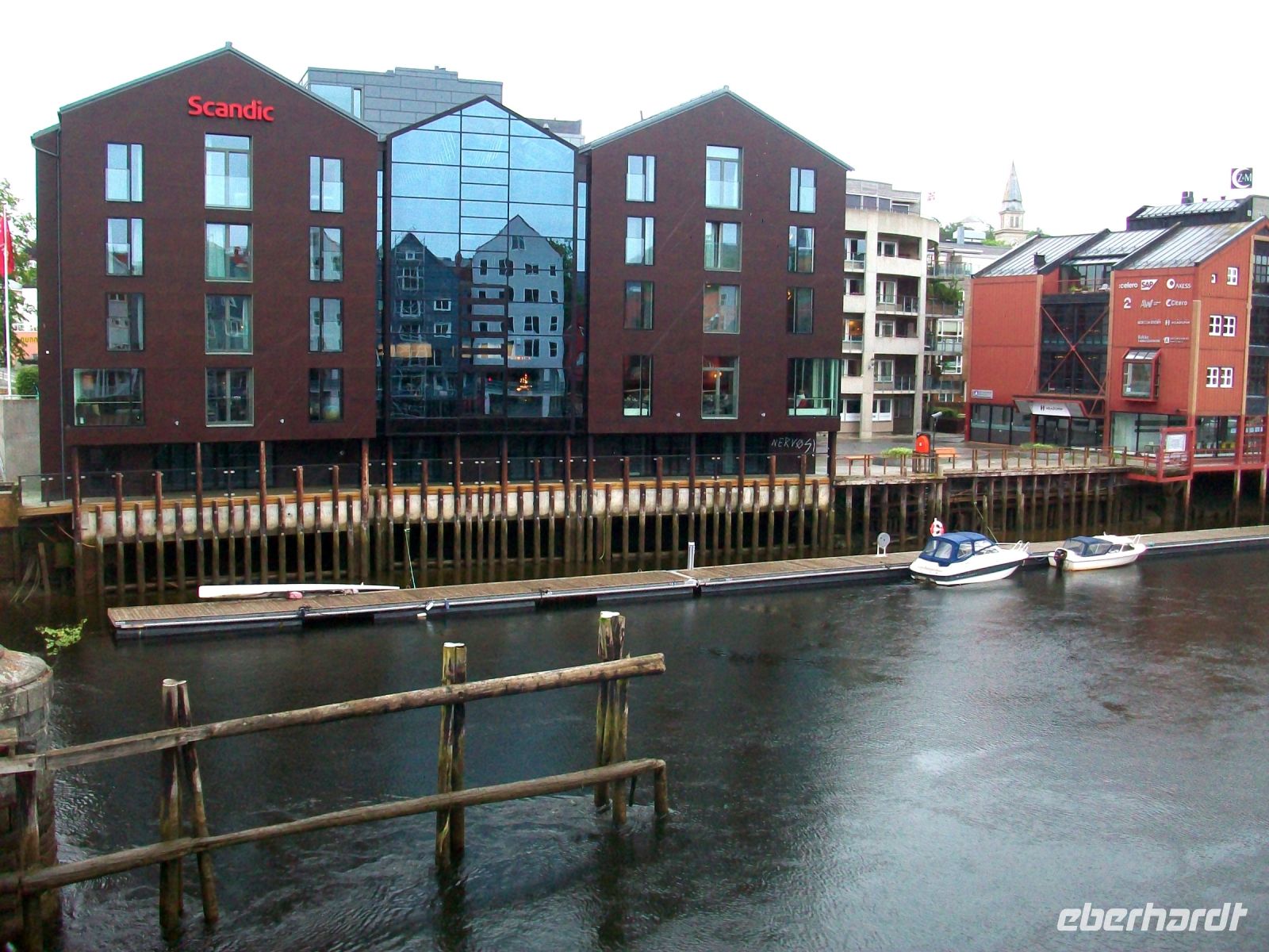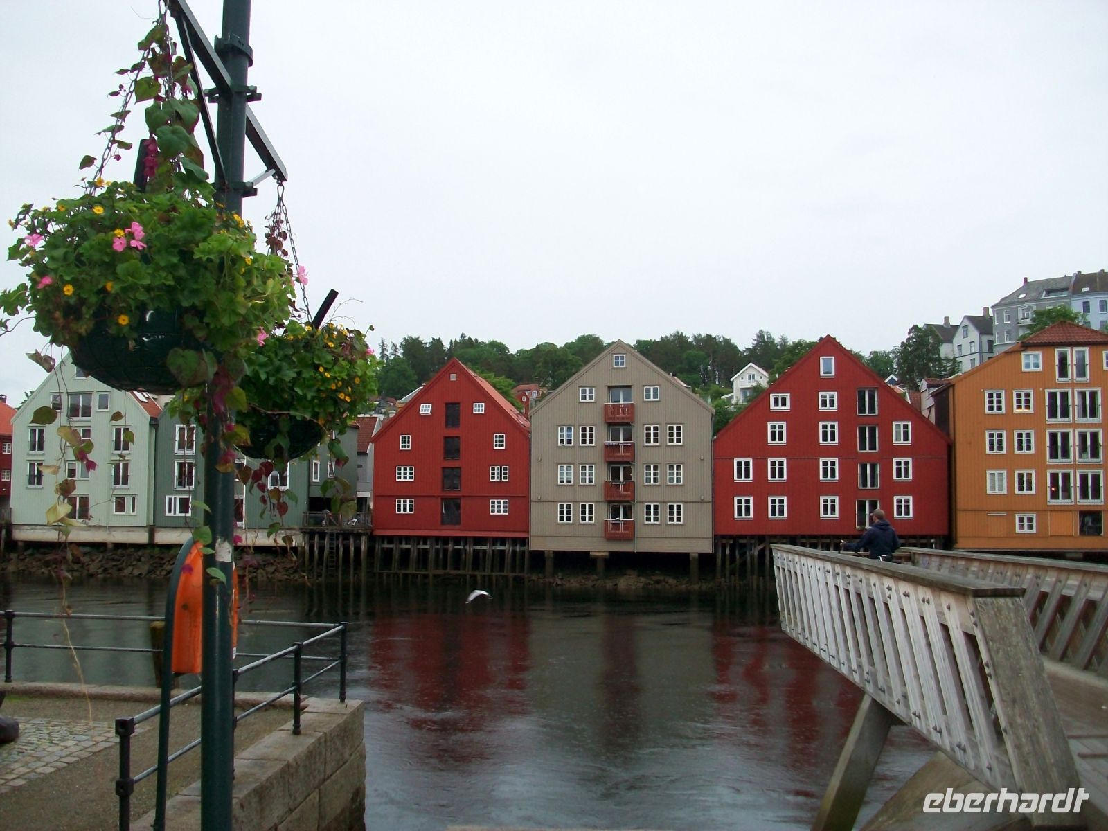17.6.2022. Auch heute müssen wir früh starten; bis zu unserem Ziel gilt es erneut einige Kilometer zurückzulegen. Nachdem wir vom reizvollen Ort gestartet sind, zeigt sich uns das nun schon gewohnte Bild der Natur Norwegens. Da wir nun aus dem nördlichen Teil hinausgelangt sind, nimmt auch die Vegetation zu und zeigt sich fast wie in den gemäßigten Zonen; kein Wunder, nimmt doch hier der Einfluss des Golfstromes zu. Bald öffnet sich auf der rechten Seite der Blick auf die Wasserfläche eines weiteren Fjords. Er ist nach der Stadt die wir nun besuchen möchten benannt: Trondheim. Nun wird auch der Verkehr dichter, aber wir gelangen dennoch pünktlich zum vereinbarten Treffpunkt. Bald lässt sich unsere Stadtführerin sehen und mit ihr erkunden wir nun diese einmalige Stadt. Trondheim ist bekannt für die am Wasser und auf Holzpfählen stehenden bunten Holzhäuser. Malerischer kann sich ein Stadtbild kaum zeigen; bald tauchen wir ab in die Moderne und steigen an zur Höhe über der Stadt mit ihrem Aussichtspunkt. Von hier oben haben wir einen grandiosen Blick hinunter zur Stadt und zum Fjord. Weit kann das Auge schweifen, bis zum Horizont wo sich Himmel und Wasser scheinbar treffen.