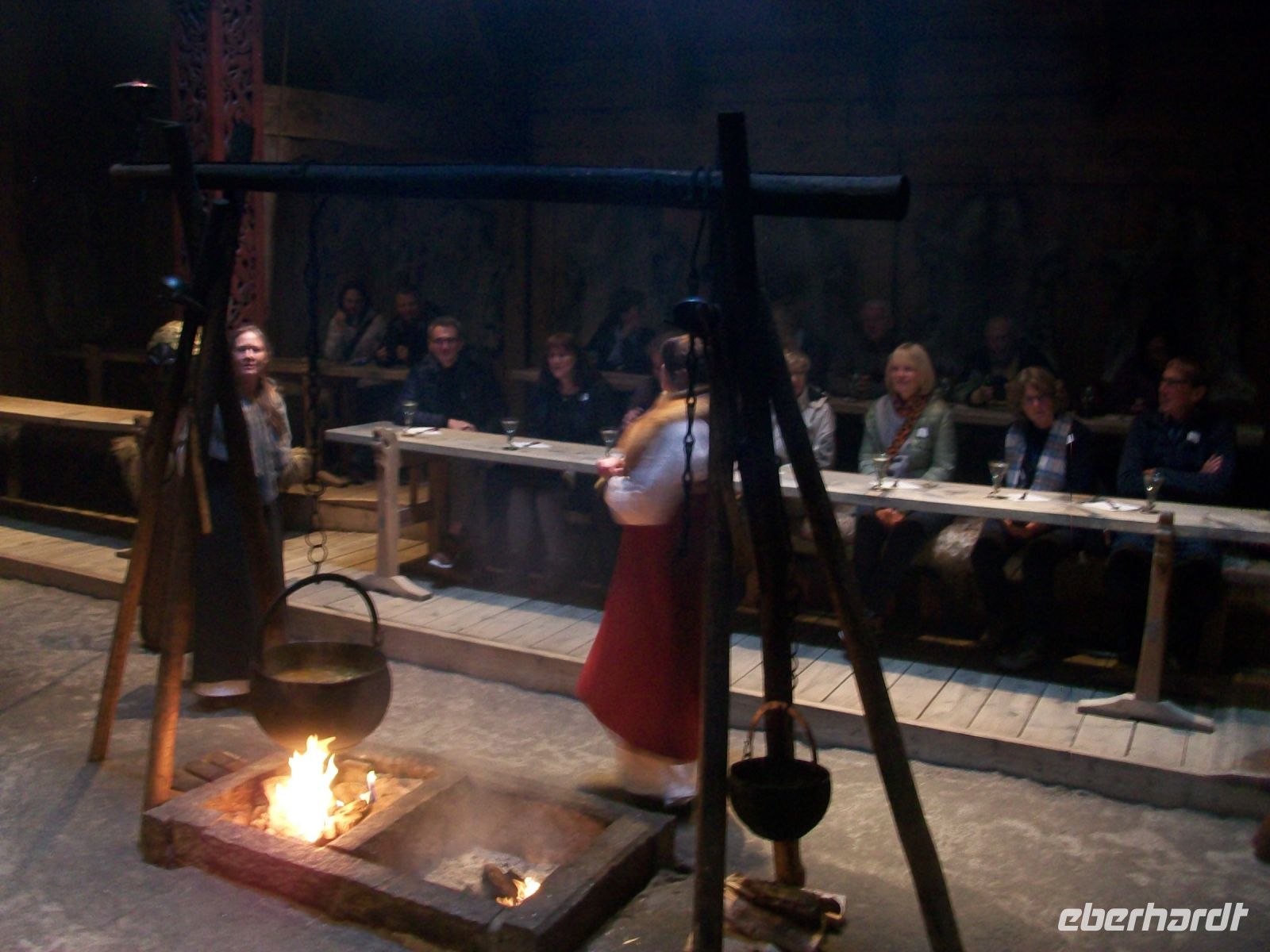 Die Mittagszeit ist schon fast heran als wir vor das Wikingermuseum vorfahren. Hier werden wir, im originalrekonstruierten Wikingerhaus schon erwartet. Über einem offenem Feuer dampft in einem Kessel eine nahrhafte Suppe wie sie einst schon die alten Wikinger gegessen haben mochten – lecker. In der Freizeit schauen wir uns all die Exponate an, betrachten im Kino den sehenswerten Film und setzen am Nachmittag unsere Erkundung der Lofoten fort.