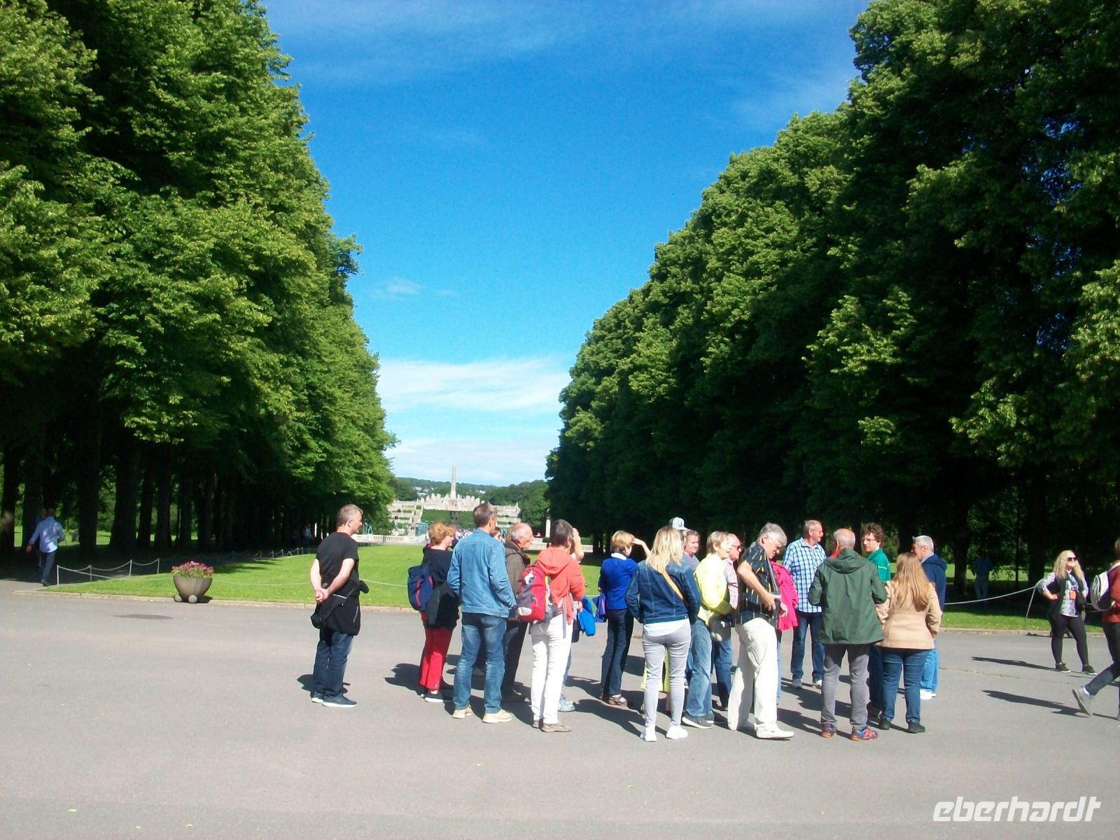 19.6.2022. Nun wollen wir der dritten und letzten Hauptstadt auf unserer Reise eine Besuch abstatten. Am Vormittag, kurz vor neun, verlassen wir den Holmenkollen und können bei der Fahrt zu Tal noch jenen grandiosen Blick hinunter zur Stadt Oslo genießen welche direkt am Fjord liegt. Es ist Sonntag und die Einwohner genießen ihre Ruhe zu Hause, wir hingegen gelangen ohne Verzögerung zur Festung Akershus. Hier werden wir von unserer Stadtführerin erwartet, sie wird uns bis zur Mittagszeit diese Metropole näher bringen. Entlang der Architektur des ausgehenden 19. Jahrhunderts gelangen wir bald zum berühmten Skulpturenpark des Künstlers Gustav Vigeland. Bei einem Bummel durch diese grüne Oase der Stadt staunen wir über die lebensechte Darstellung der Menschen in Bronze und Granit und erfahren einiges über die Symbolik, das andere müssen wir unserer eigenen Phantasie überlassen. Danach gelangen wir wieder zurück in das Zentrum; noch ein Bummel zur Oper in Marmor dann sind die Zeiger der Uhr auf zwölf gerückt und das heißt: Aufbruch nach Göteborg. Nun liegen noch runde 300 Kilometer vor uns und wir sind an die Zeit gebunden welche vom Fahrplan der Fähre vorgeben wird.
