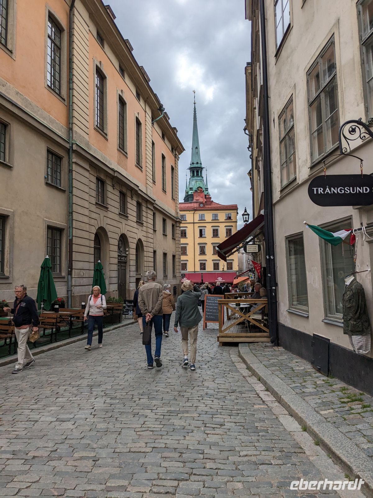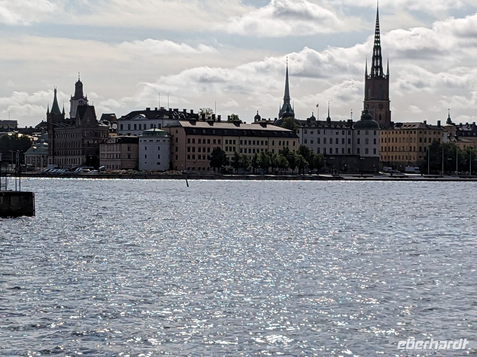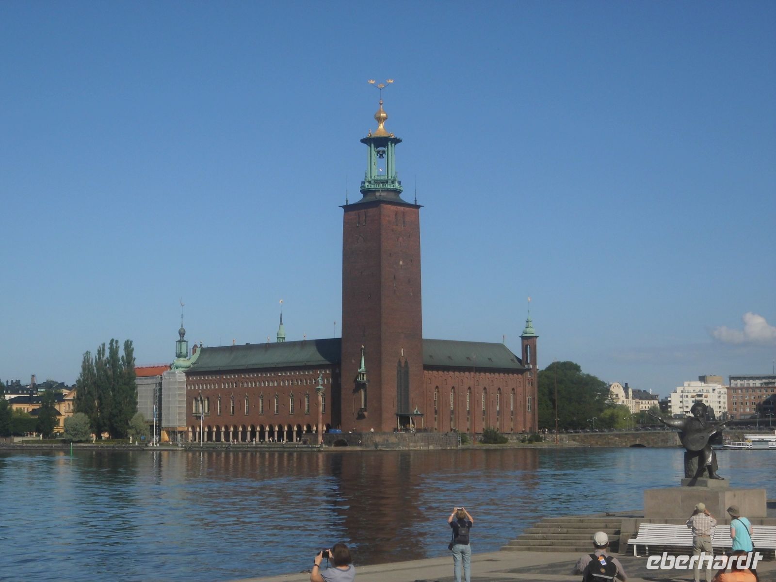 Heute früh trafen wir unsere Stadtführerin Alexa am üblichen Treffpunkt mit den Ortsführern, dem schwedischen Rathaus, das Anfang des 20. Jh. aus Backstein im Stil der schwedischen Nationalromantik erbaut wurde. Vorbei an verschiedenem Sehenswertem und dem belebten Verkehrsknotenpunkt „Slussen“, bei dem neben Dutzenden Fahrbahnen ein unter den über Brücken geführten Straßen raffiniertes Schleusensystem den Höhenunterschied zwischen dem Mälarsee, an dem Stockholm liegt und der Ostsee ausgleicht, ging es unter anderem zum schönsten Aussichtspunkt über die skandinavische Metropole im Ortsteil Södermalm. Von hier kann man hinübersehen zur Stockholmer Altstadt, zum Schloss, der Neustadt und verschiedene Seefahrts-Einrichtungen aber auch zur „Museumsinsel“ mit Nordischem und Vasa-Museum und dem Vergnügungsviertel Gröna Lund. Später ging es an königlicher Oper und Reichstagsgebäude vorbei bis zum am Rande der Altstadt gelegenen Schloss und der davor liergenden evangelischen Domkirche. Hier und auch in der anschließenden Freizeit bummelten wir über den Alten Markt, an dem nicht nur Schwedische Akademie steht, die jährlich über die Nobelpreisvergabe entscheidet, sondern auch der zentrale Brunnen, von dem aus alle Entfernungen Schwedens gemessen werden. In der Freizeit gab es die Möglichkeit, noch durch die Altstadtgassen mit ihren Souvenirladen und Cafés zu bummeln oder sich die tägliche Wachablösung im Hof des Königsschlosses anzuschauen.