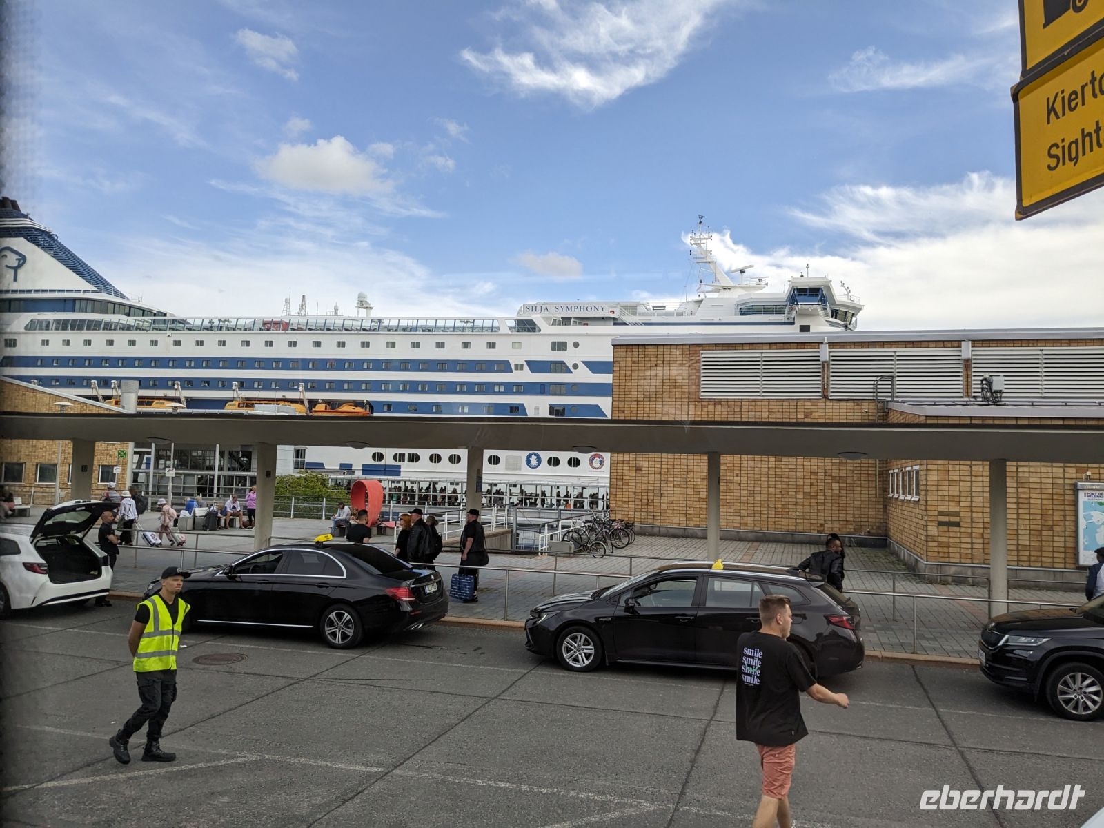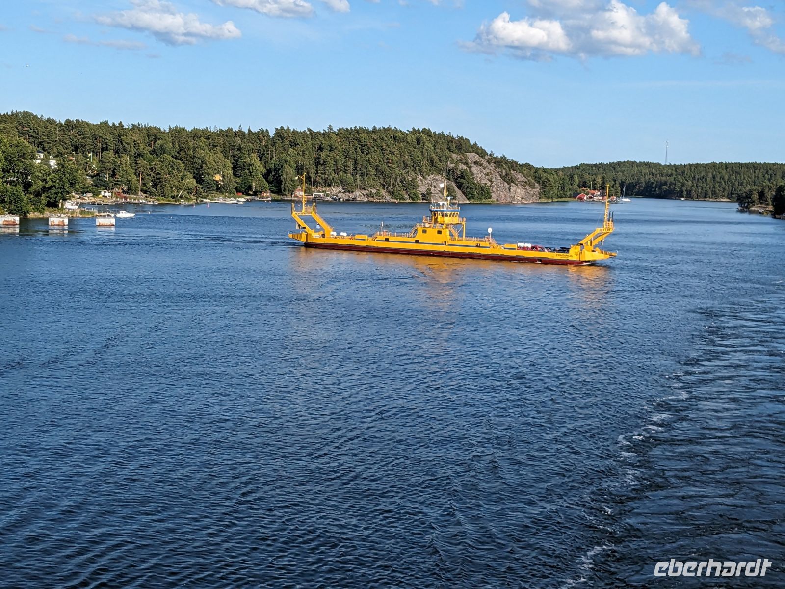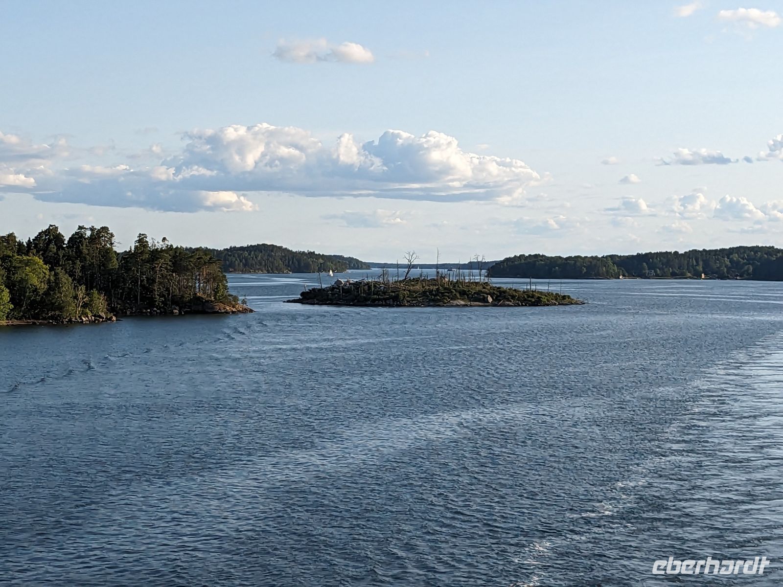 Am Nachmittag folgte dann die nächste Etappe unseres Weges zum Nordkap: am Stockholmer Fährhafen checkten wir ein auf die „Silja Symphony“, eines der modernsten europäischen Fährschiffe, das die Metropolen Schwedens und Finnlands verbindet. Ausgestattet mit dem Komfort eines Kreuzfahrtschiffes fuhr die Fähre stundenlang durch den vor Stockholm liegenden Schärengarten, ein Gewirr kleiner und größerer Felseneilande, das immer neue An- und Ausblicke bietet und uns lange an Deck festhielt. Nach Schlemmerbuffet – auch wieder inklusive Getränke – und Genuss des Bordlebens übernachteten wir in der bequemen Kabine.