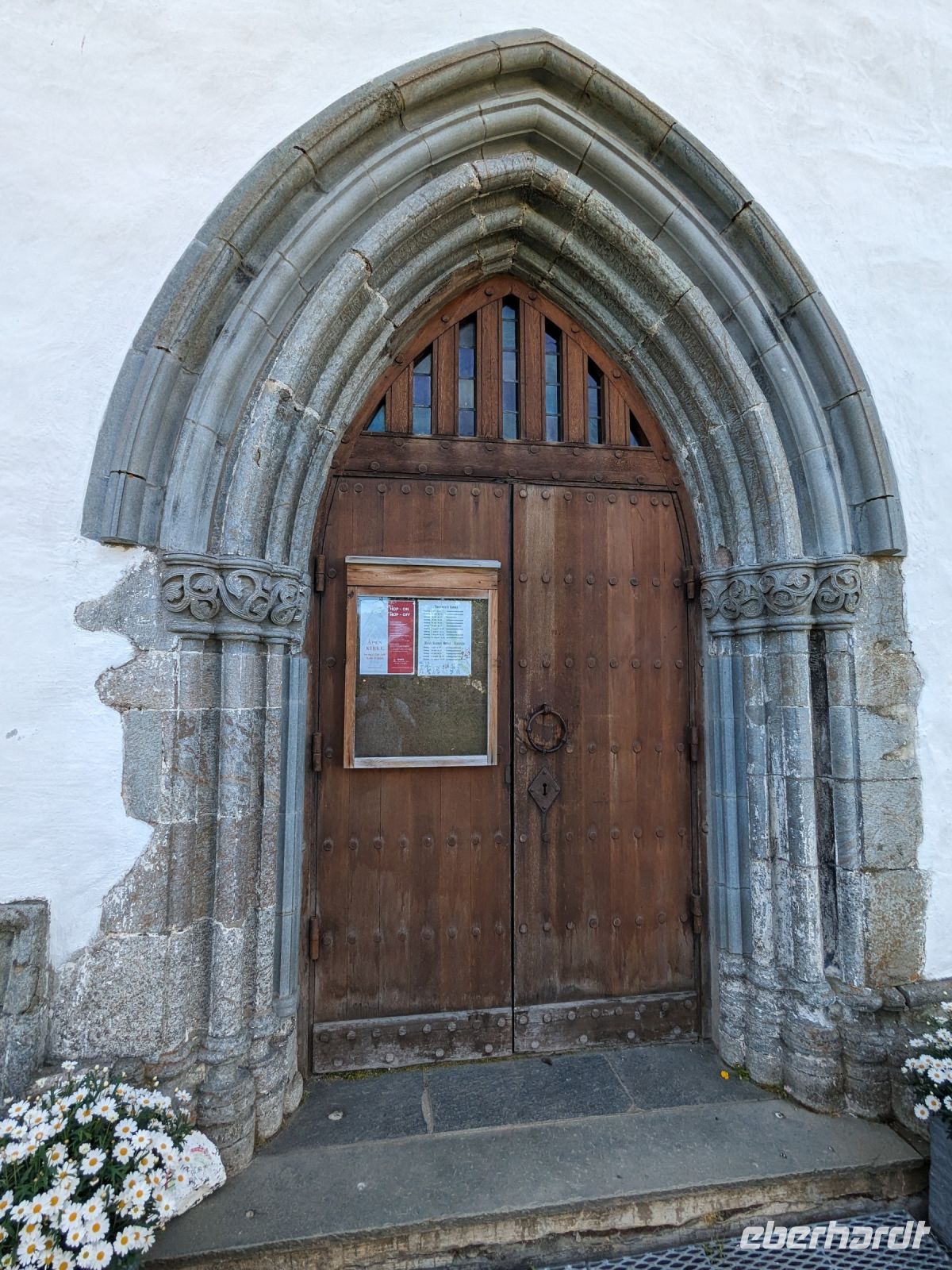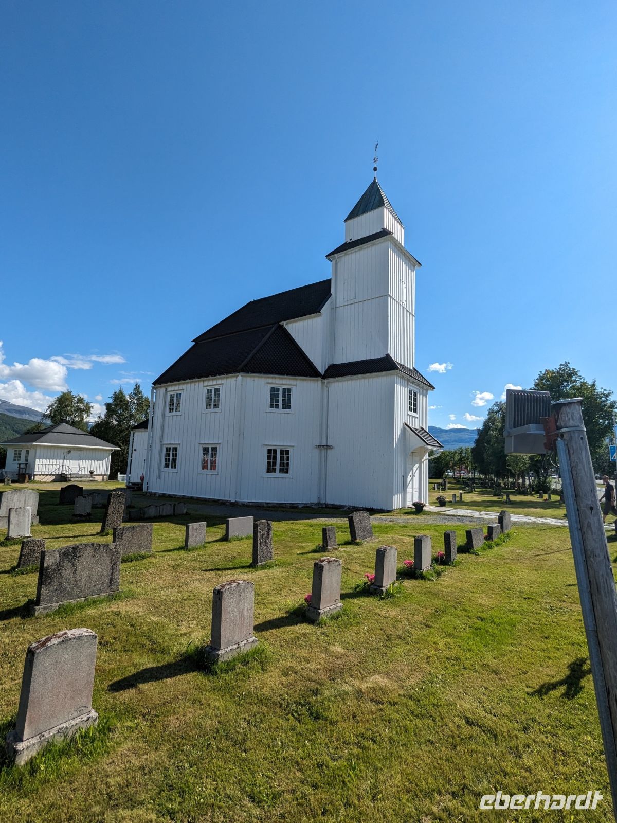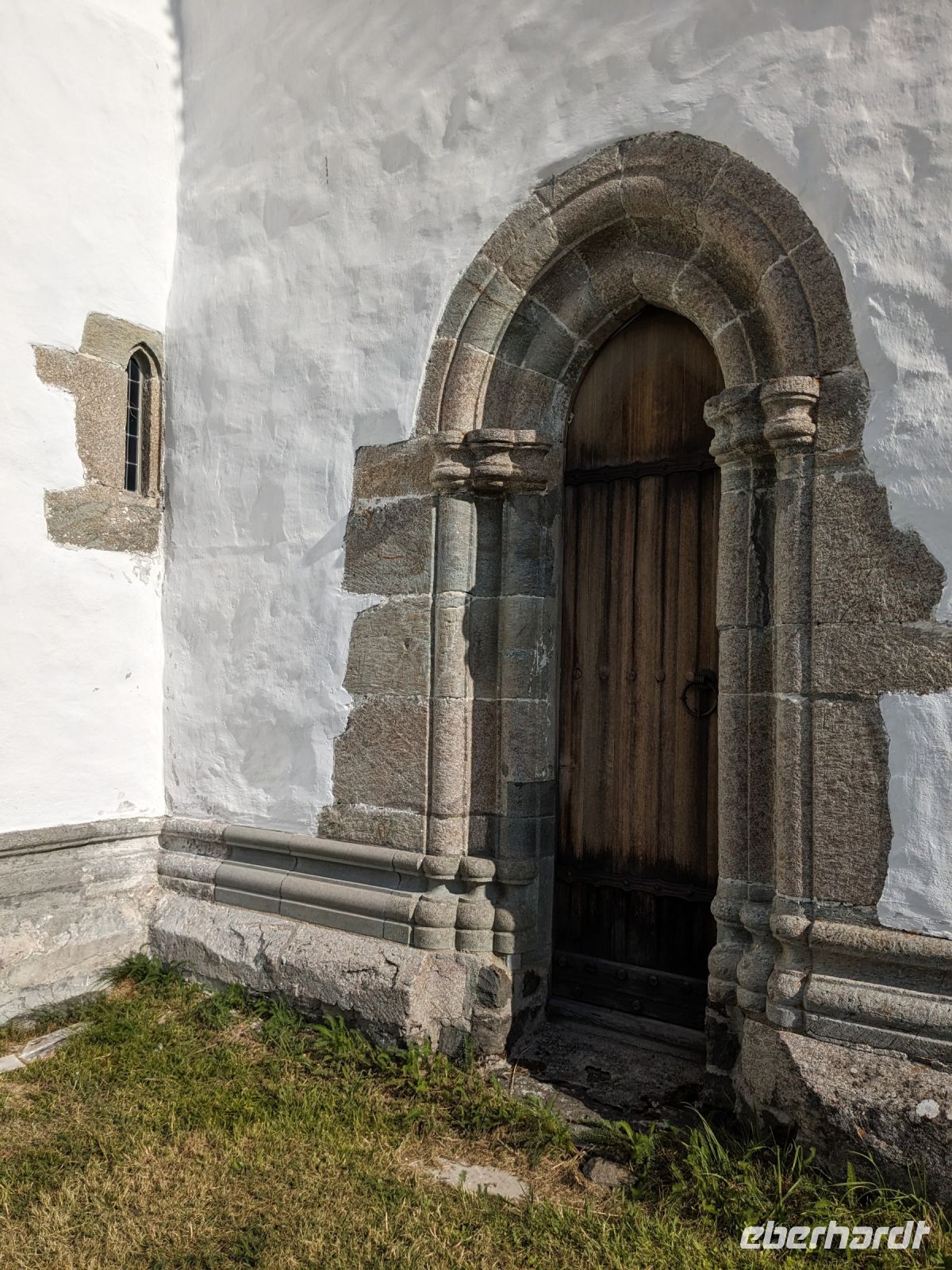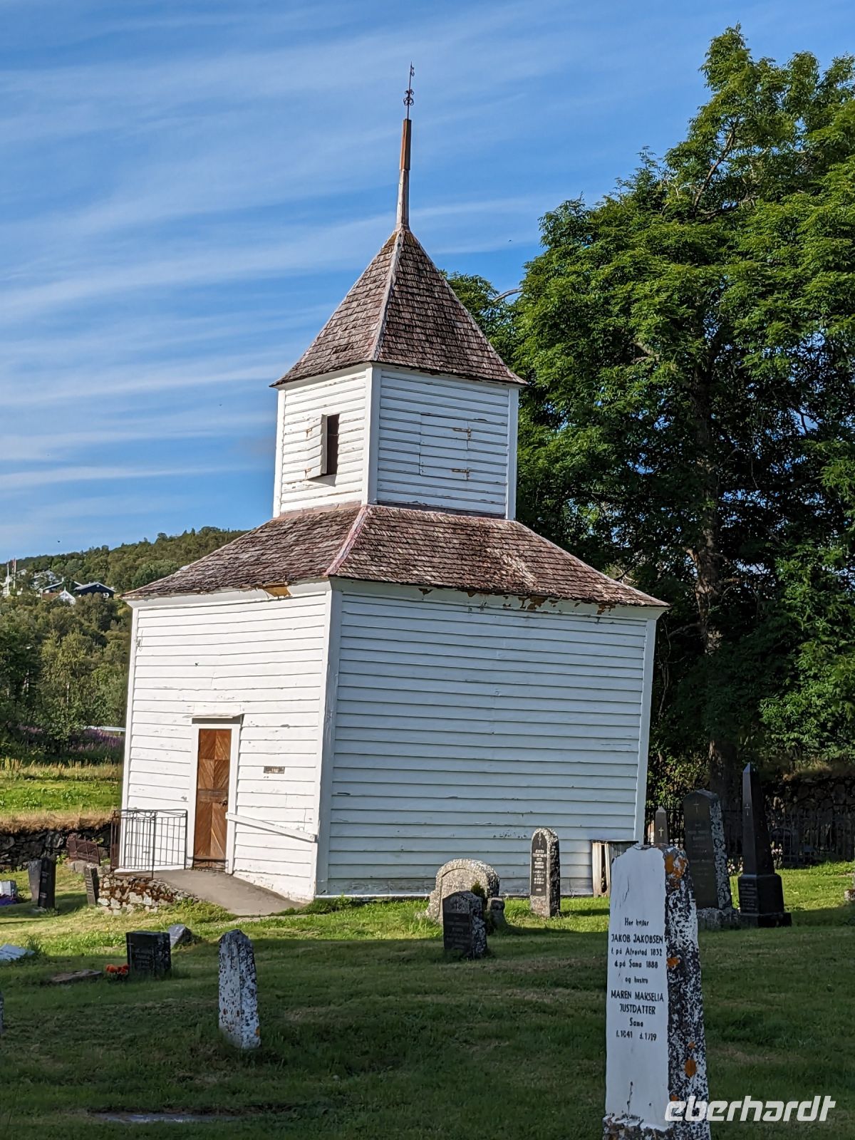 Heute Vormittag besahen wir uns zunächst die etwas nördlich von Harstad gelegene Pfarrkirche von Trondenes, die als älteste original erhaltene Steinkirche Norwegens gilt. Sie wurde Anfang des 12. Jh. errichtet, zu einer Zeit, in der sich das Christentum noch keineswegs überall in Nordeuropa endgültig durchgesetzt hatte. Daher ist sie von Festungsmauern umgeben, von denen sich Reste erhalten haben.