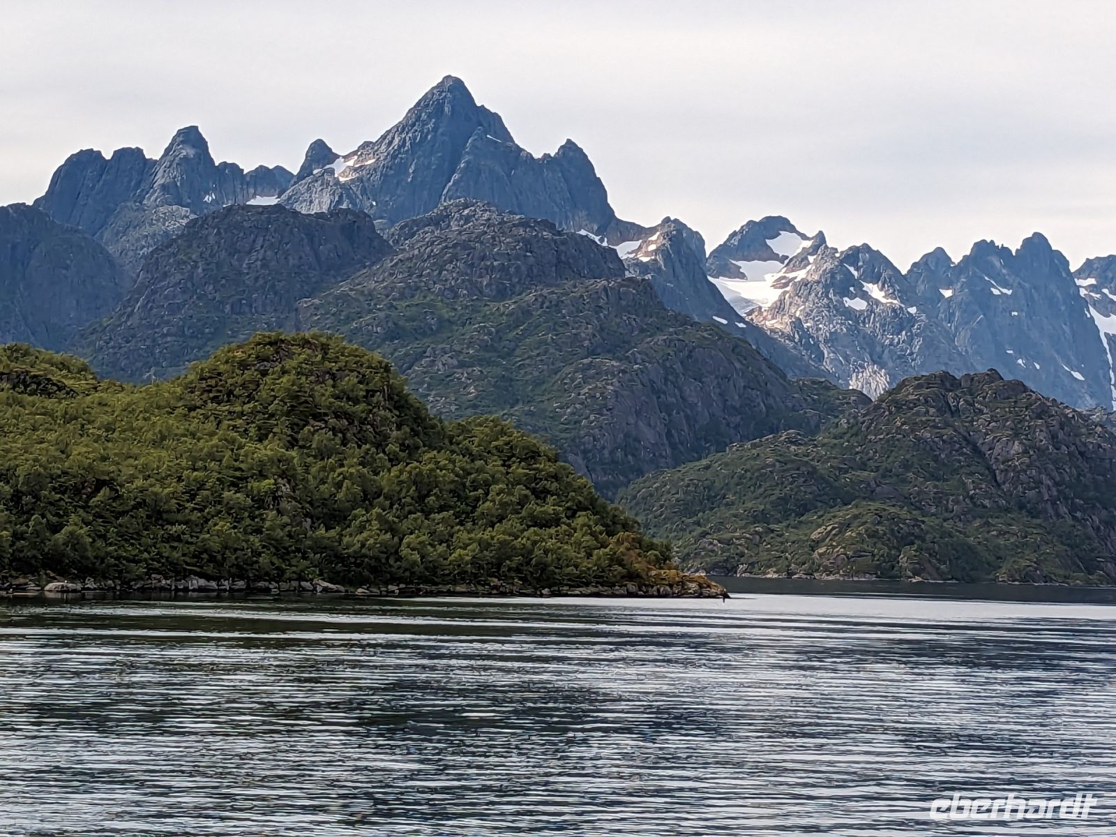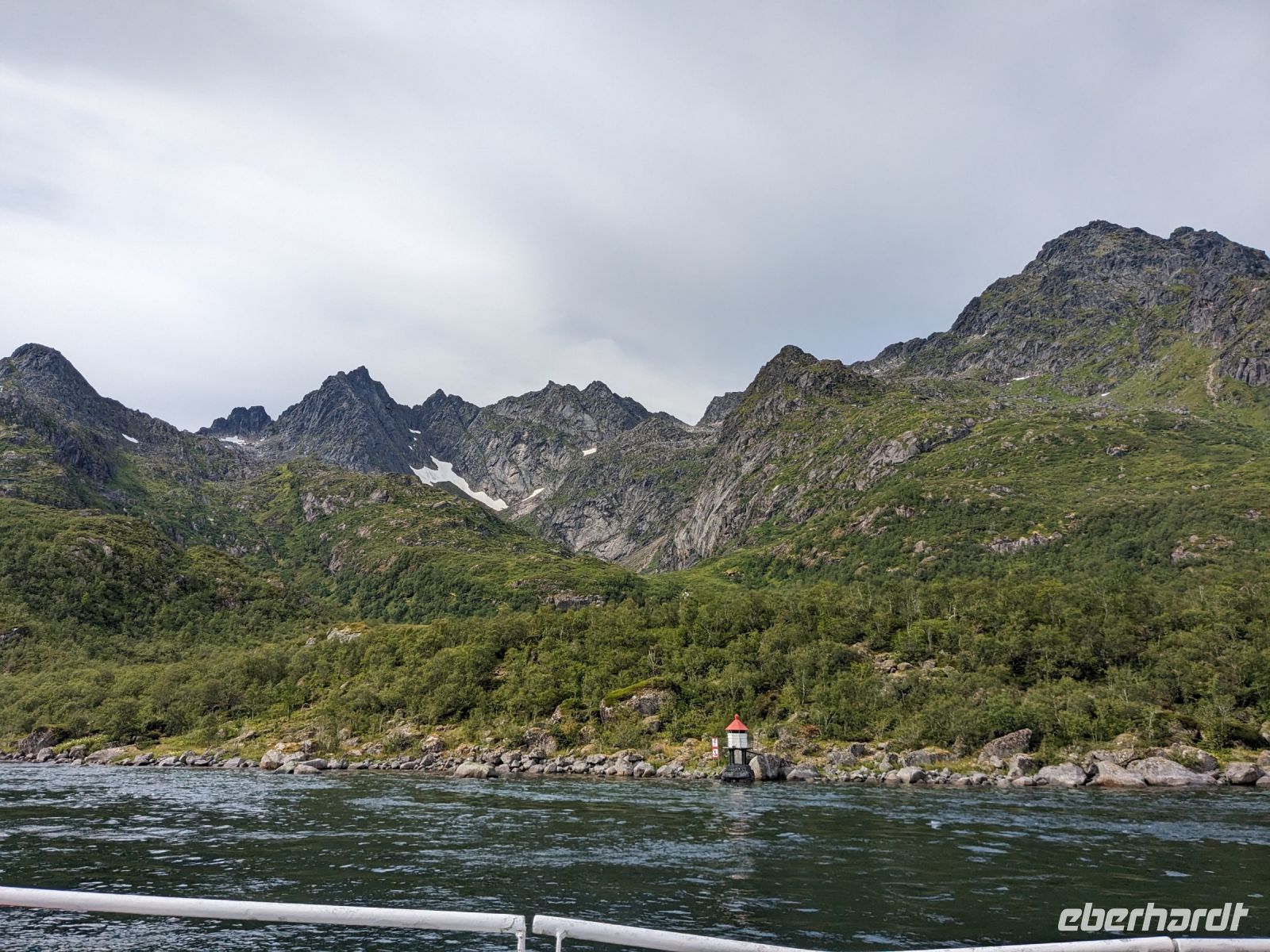 Ein Stück ging es heute auf der alten Strecke zurück – auf der E 10 nordöstlich, an Hanøy vorbei und zum Ort Lødingen auf den Vesterålen, von dem die Festlandsfähre nach Bognes startete.