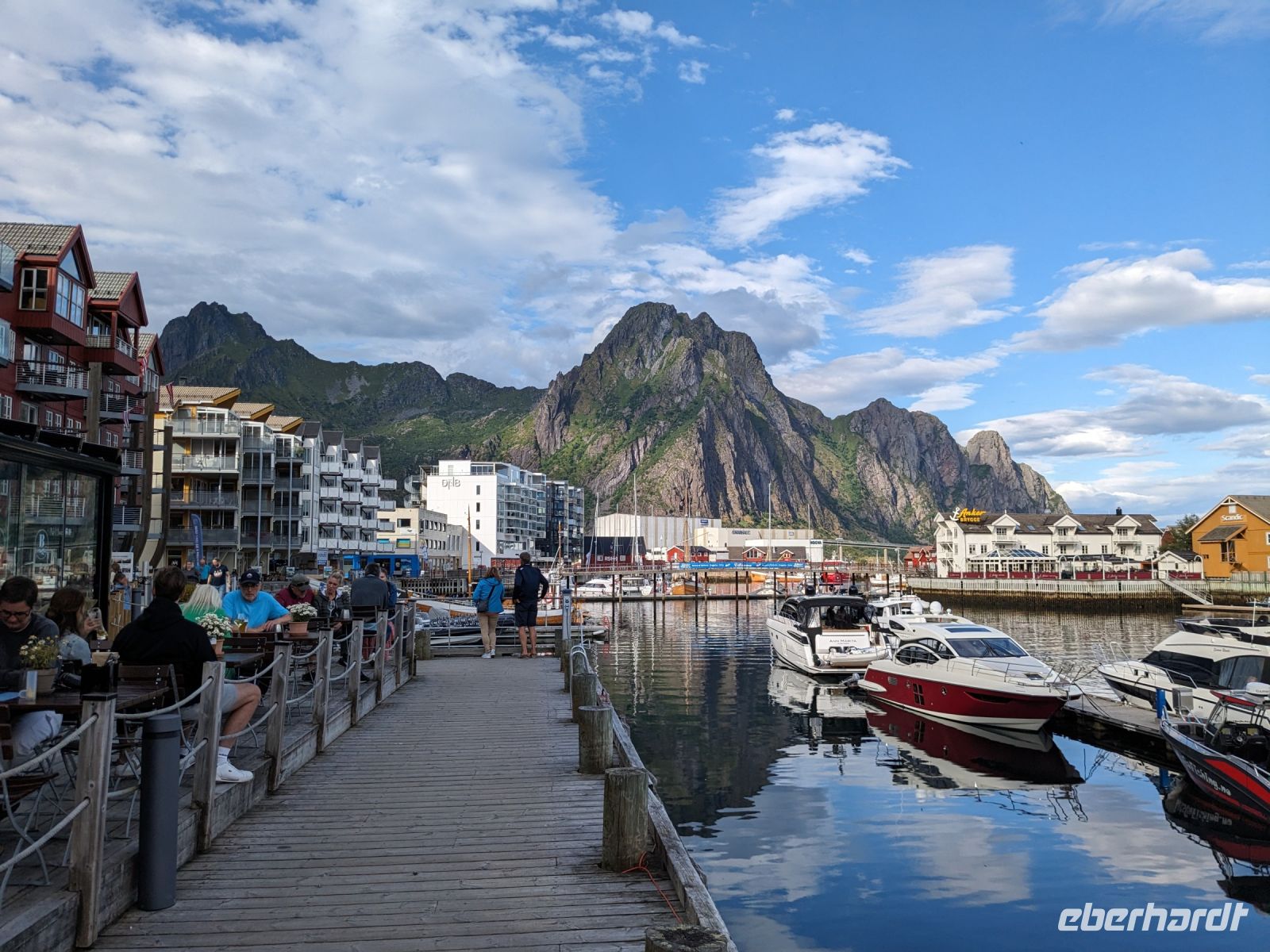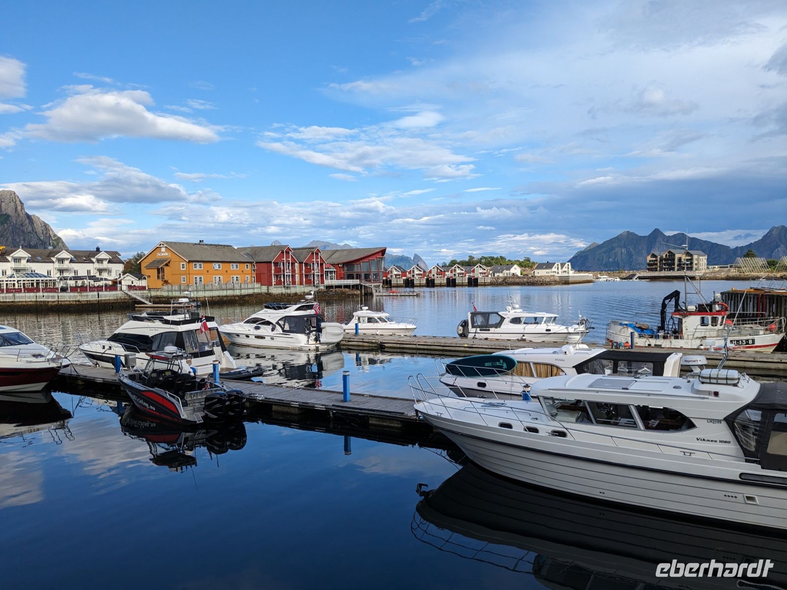 Den Abschluss unserer Lofoten-Rundfahrt bildete das auf zwei Inseln liegende und bei Touristen beliebte Dörfchen Henningsvær. Auch hier konnte man wieder die auf Pfählen stehenden Rorbuer bewundern und typische Lofoten-Atmosphäre finden.