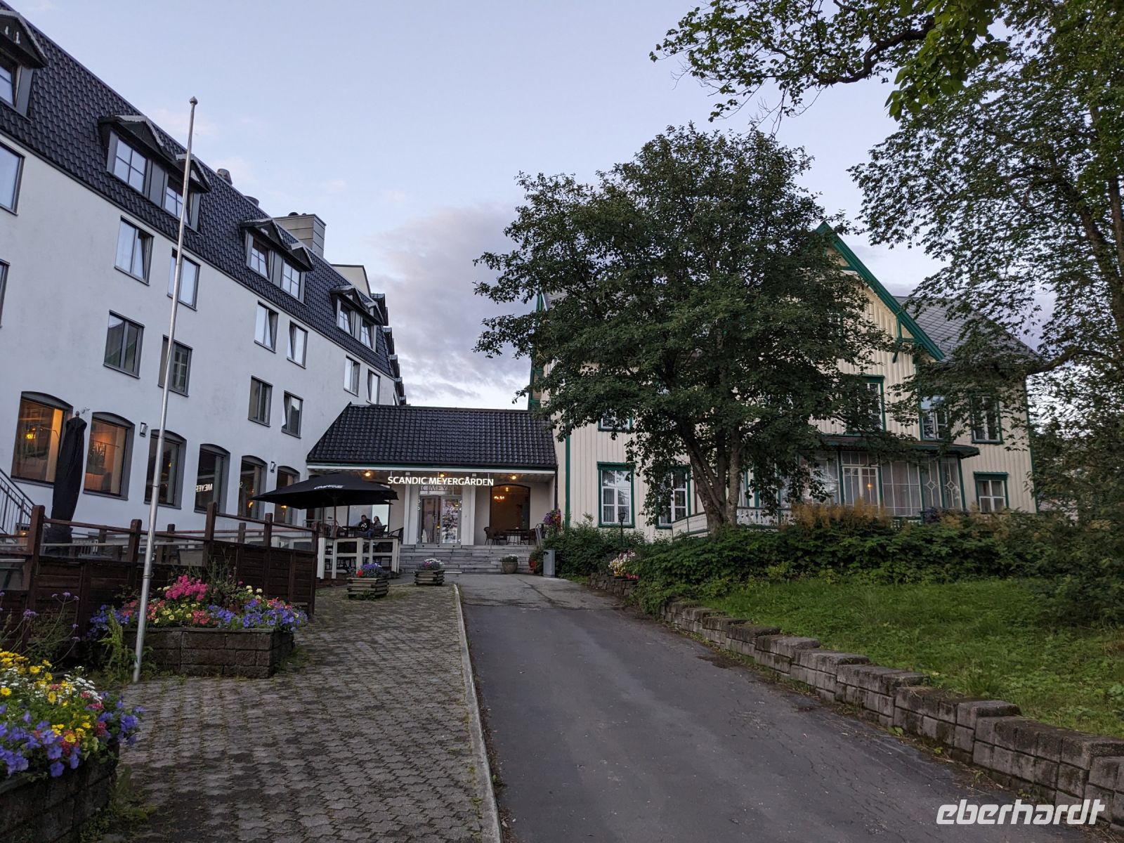 Da wir relativ früh eingetroffen waren, hatten wir noch Zeit für einen Bummel durch das Städtchen bis zum Abendessen. Nach diesem brachen wir gegen 21 Uhr auf zu unserer „Mitternachts-Sonnen-Tour“, wobei wie gewohnt bei diesem Anlass ein Kollege vom Nordkapp-Chauffeur-Service unseren Bus fuhr, um unserem Busfahrer Edgar Söllner seine notwendige und vorgeschriebene Ruhezeit zu lassen.