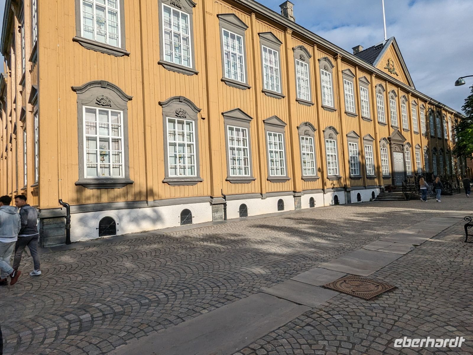 Dann ging es weiter durch die Innenstadt Nidaros bis zum Stiftsgården, dem größten profanen Holzbau Skandinaviens, der dem König gehört und ihm als Wohnsitz dient, wenn er in Trondheim weilt.