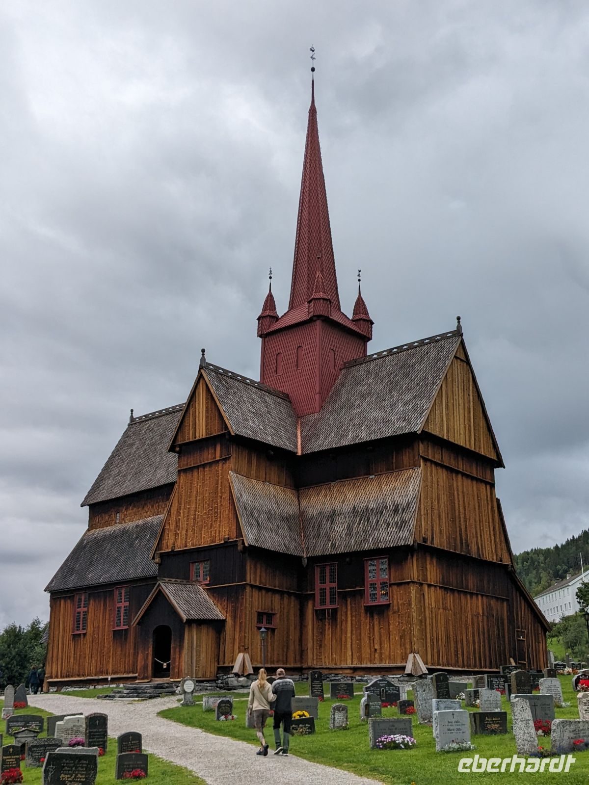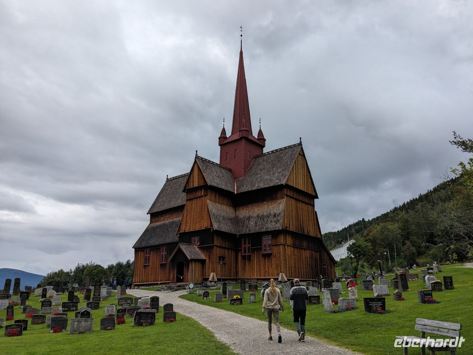Im Ort Ringebu gibt es noch eine der wenigen gut erhaltenen Stabkirchen, die man bis auf ganz wenige Ausnahmen nur in Norwegen findet. Diese Art von Holzkirchen, deren Bezeichnung „Stabkirche“ von ihrer Bauform und den verwendeten Materialien stammt, ist auf den Bau durch Schiffs-Zimmerleute zurückzuführen, die Teile alter Schiffe verwendeten und das Gewicht der Kirchen auf vier Masten (norwegisch „Staber“) verteilten. Früher verwendete man beim Bau keine Nägel – die Masten, Balken und Bohlen wurden in traditioneller Art mit Holzpflöcken zusammengehalten. Die Stabkirche Ringebu, um 1220 errichtet, weist noch immer viele Originalteile auf und wird bis heute für reguläre Gottesdienste genutzt.