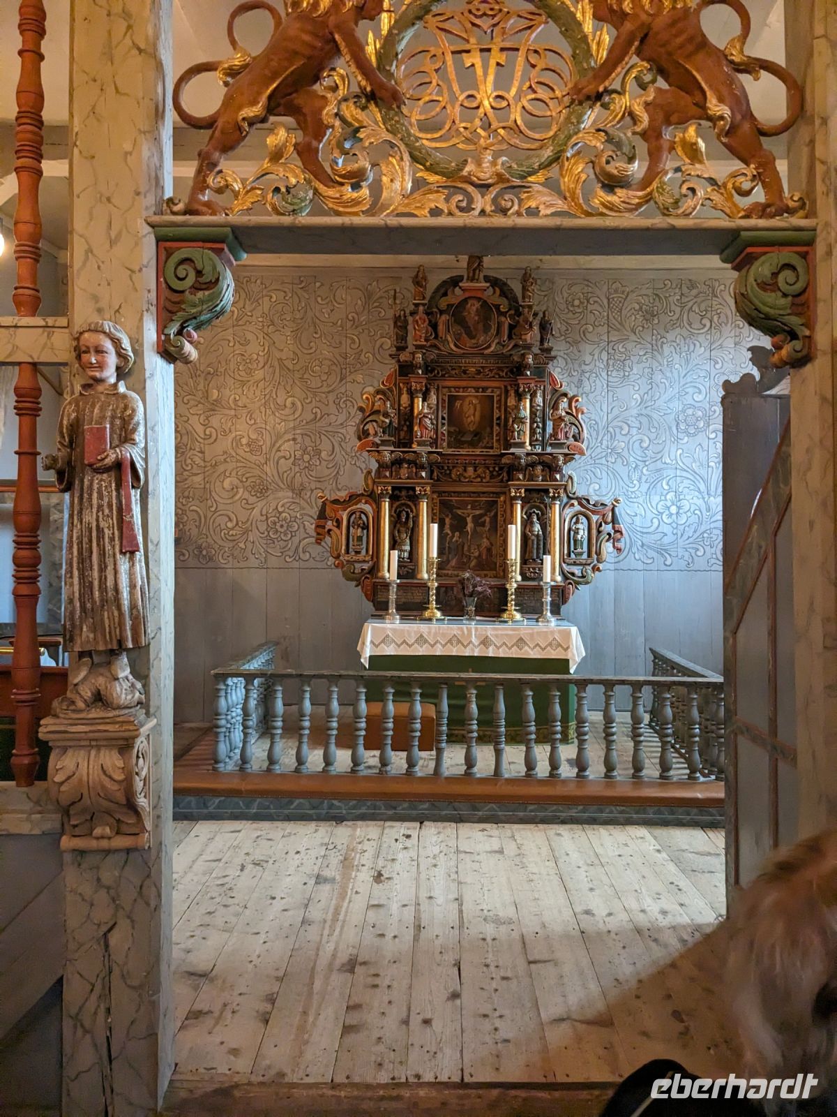 Danach besuchten wir das einst aus Treibholz errichtete originelle Kirchlein von Flakstad, dessen Inneres einen Einblick in die Schlichtheit christlich-bäuerlichen Lebens bot und das für die Lofotengeschichte wichtig ist, da die Kirche 1814 beim Entscheid über die Unabhängigkeit Norwegens von Dänemark als Wahllokal diente.